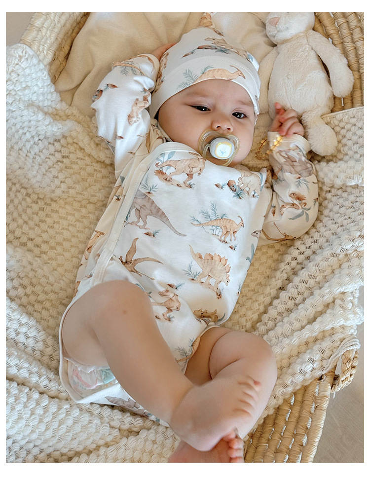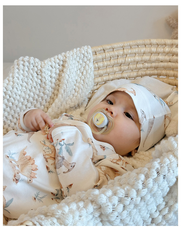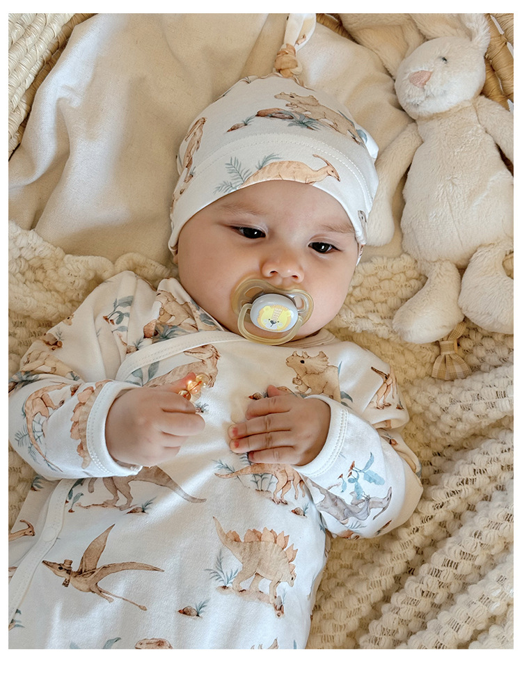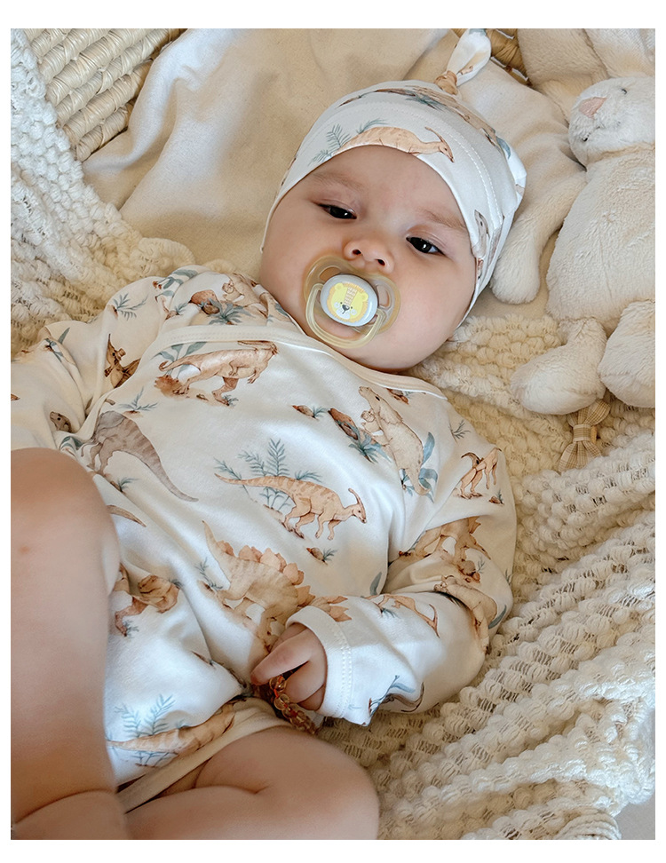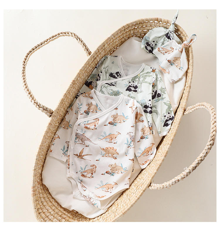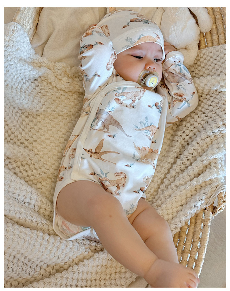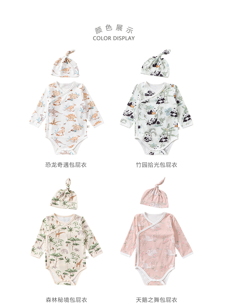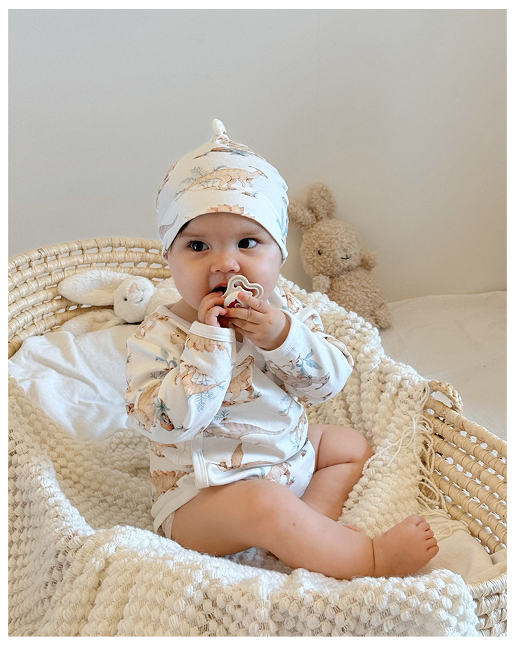 D24433LS-Autumn pure cotton long-sleeved triangle romper + hat