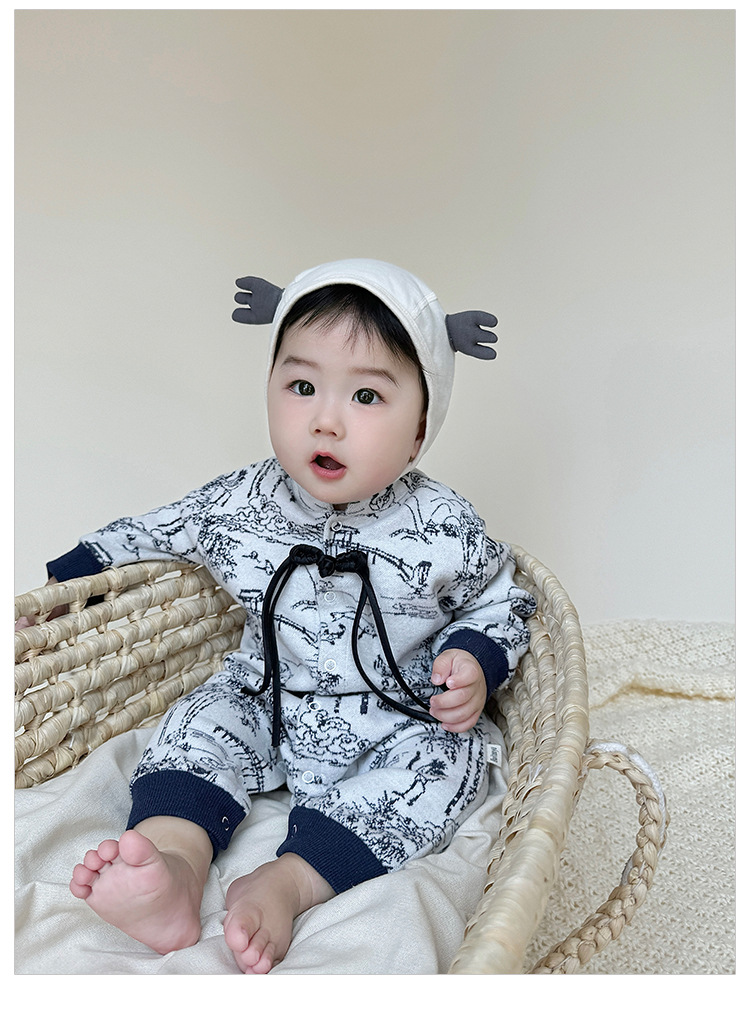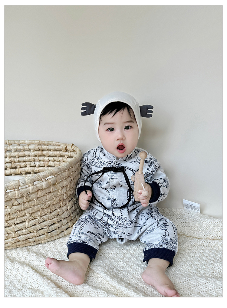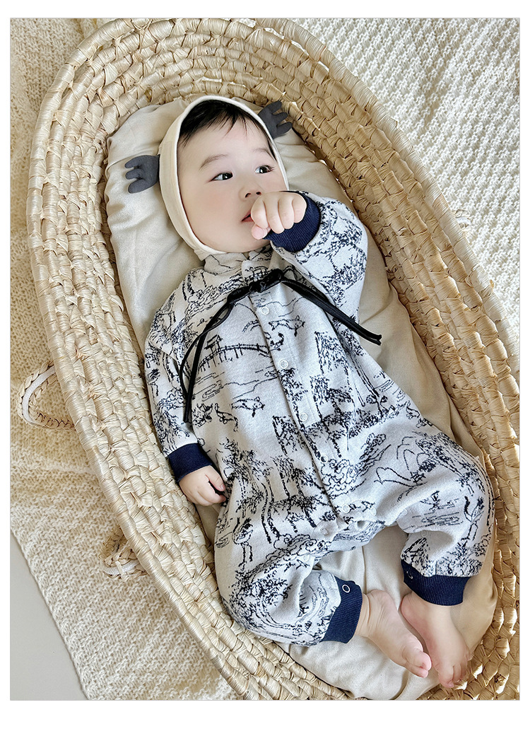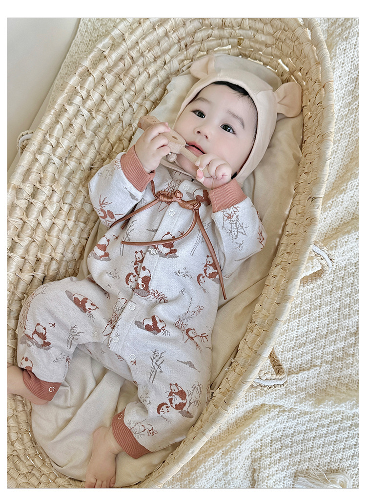 D24456LS-Autumn knitted ink-wash style romper (without hat)
