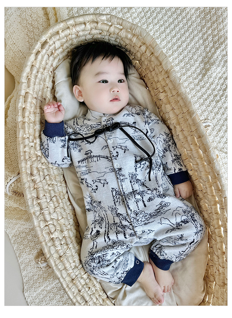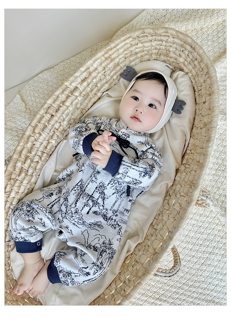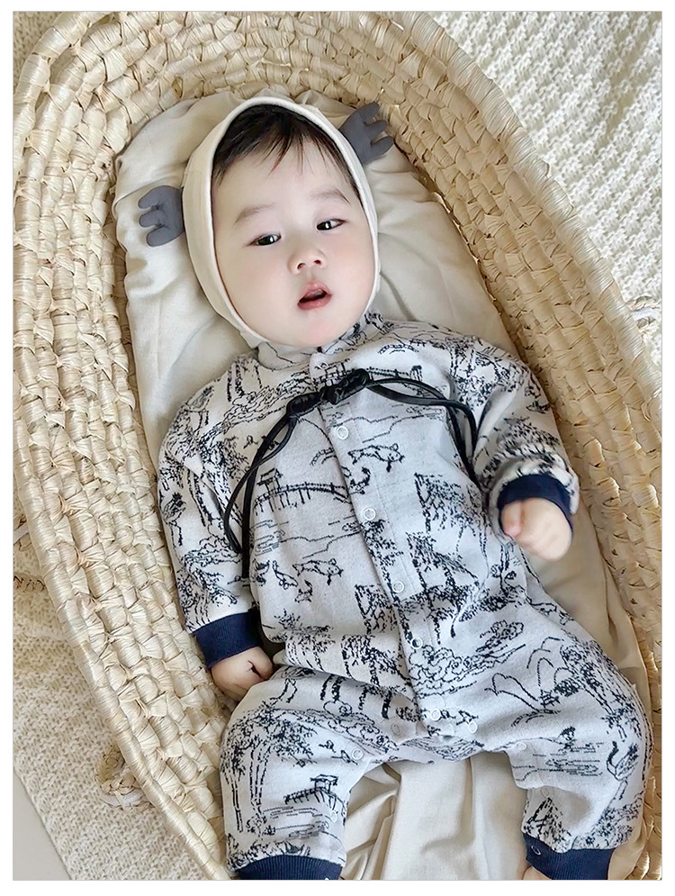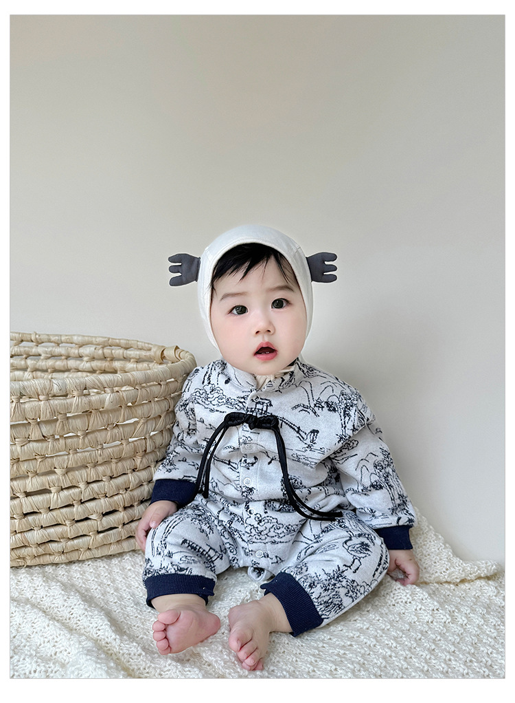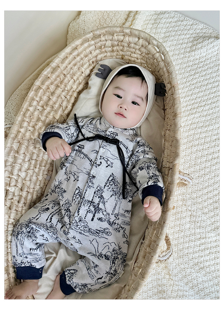 D24456LS-Autumn knitted ink-wash style romper (without hat)