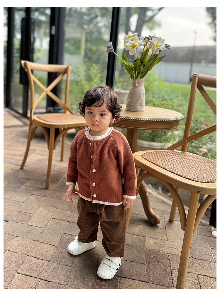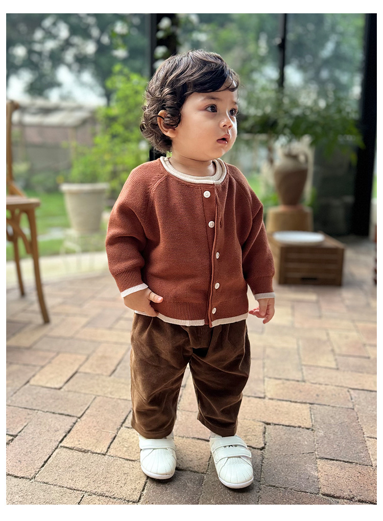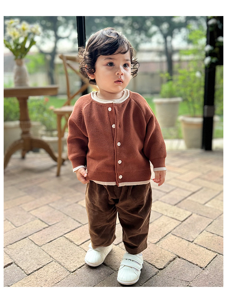 D24487SE-Autumn contrast retro knitted jacket