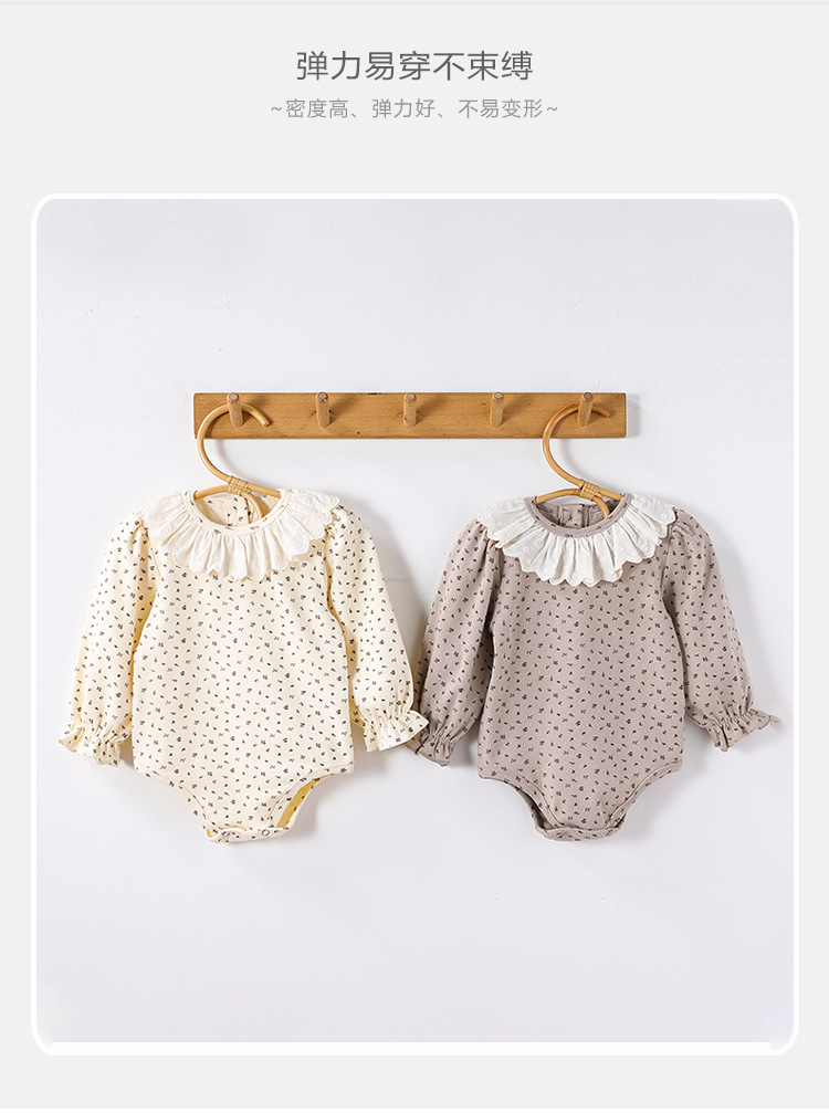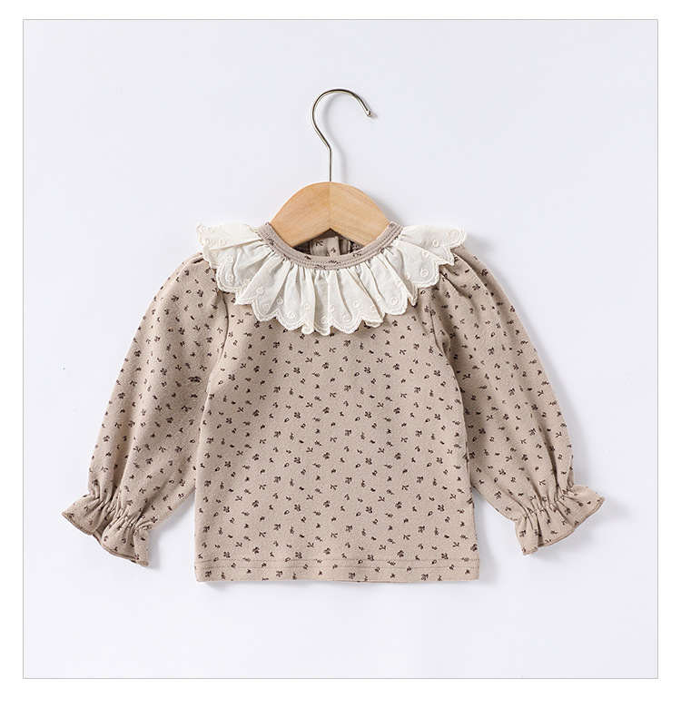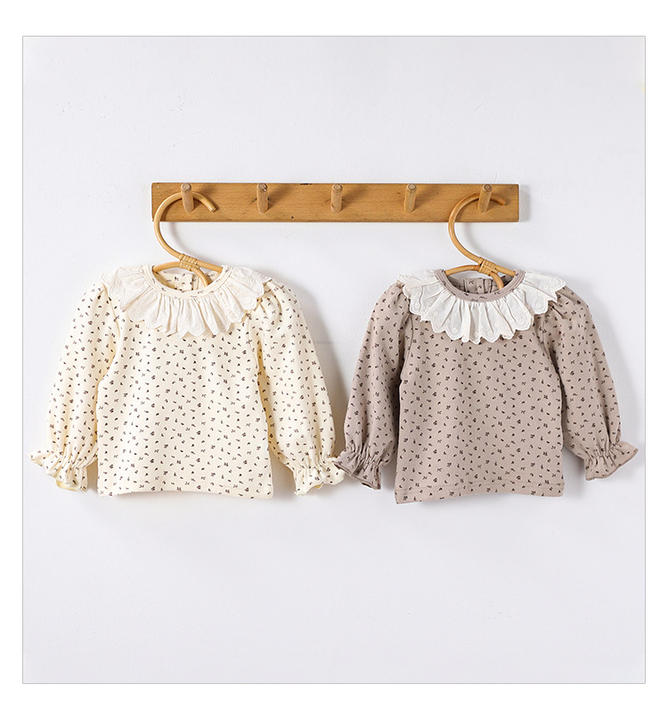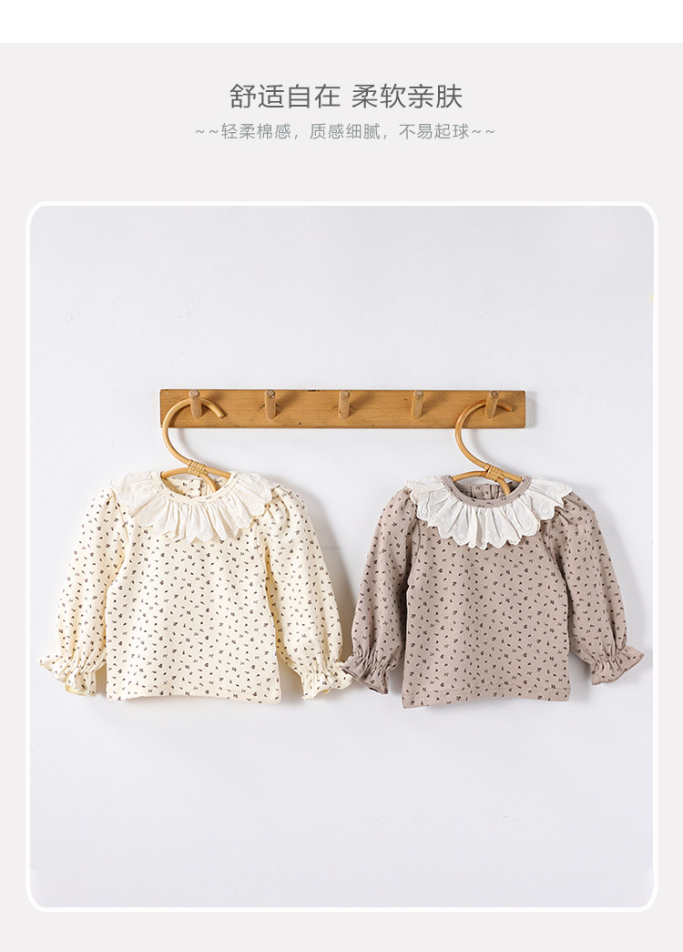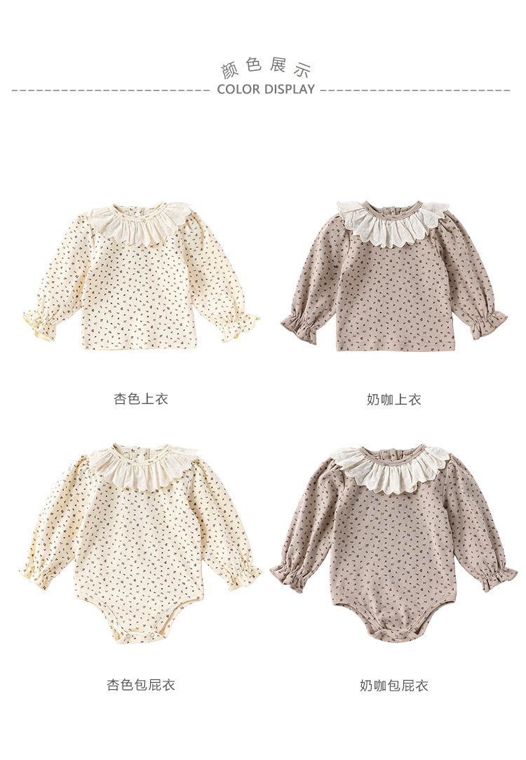 D24529LS-Autumn baby floral lotus leaf lace collar top & triangle bag