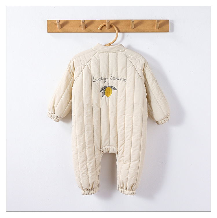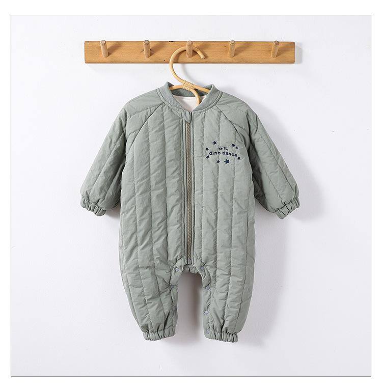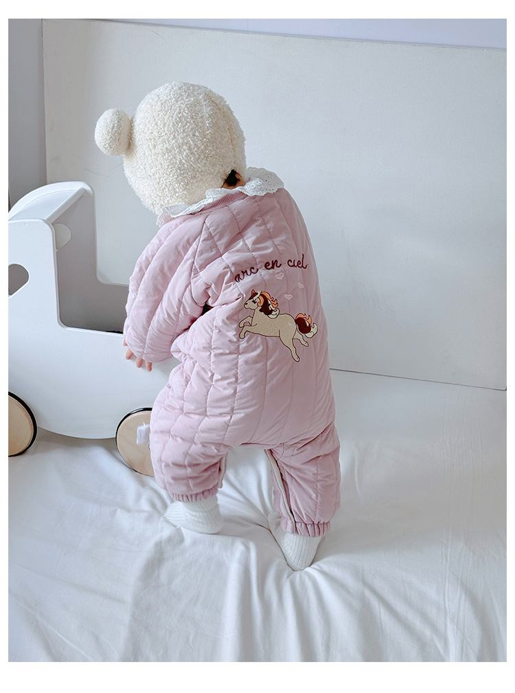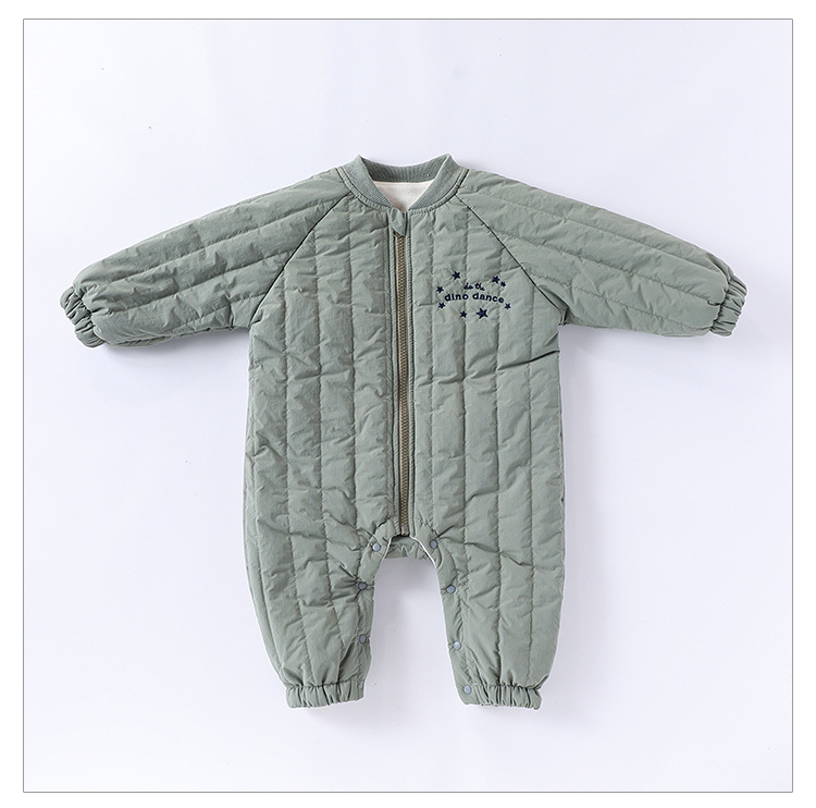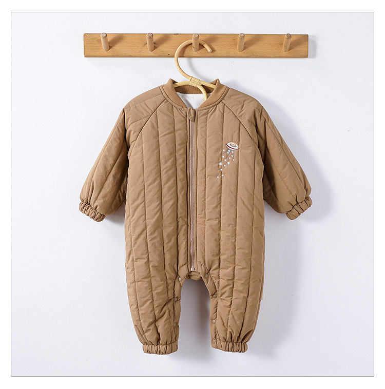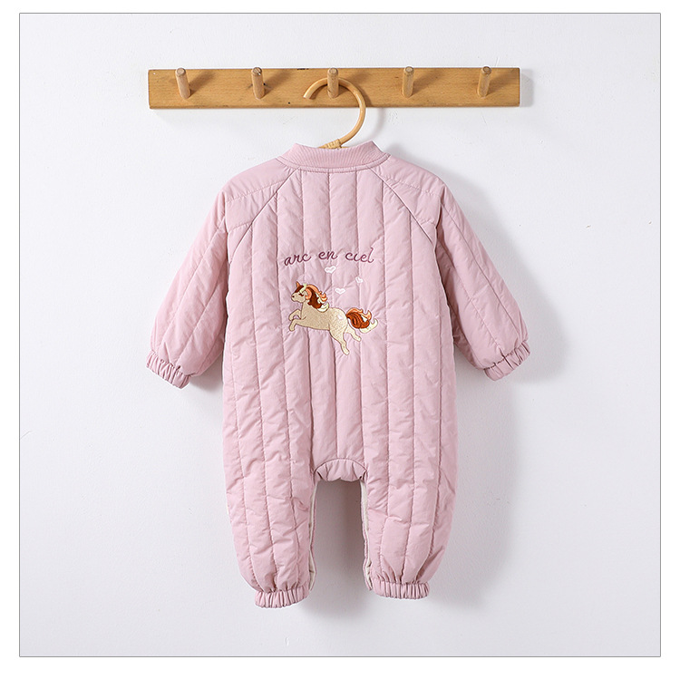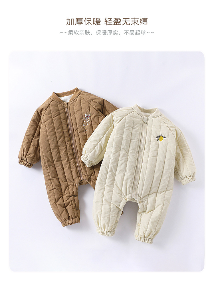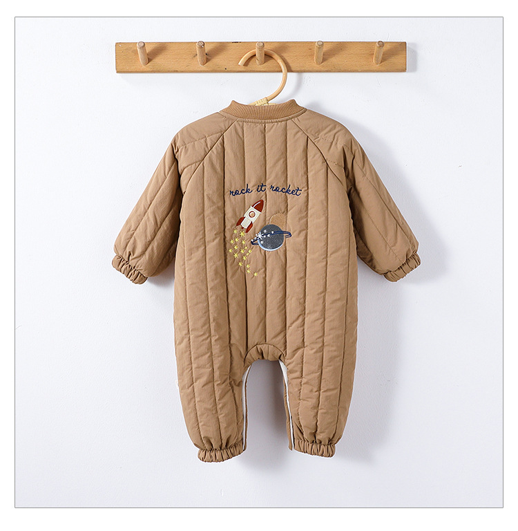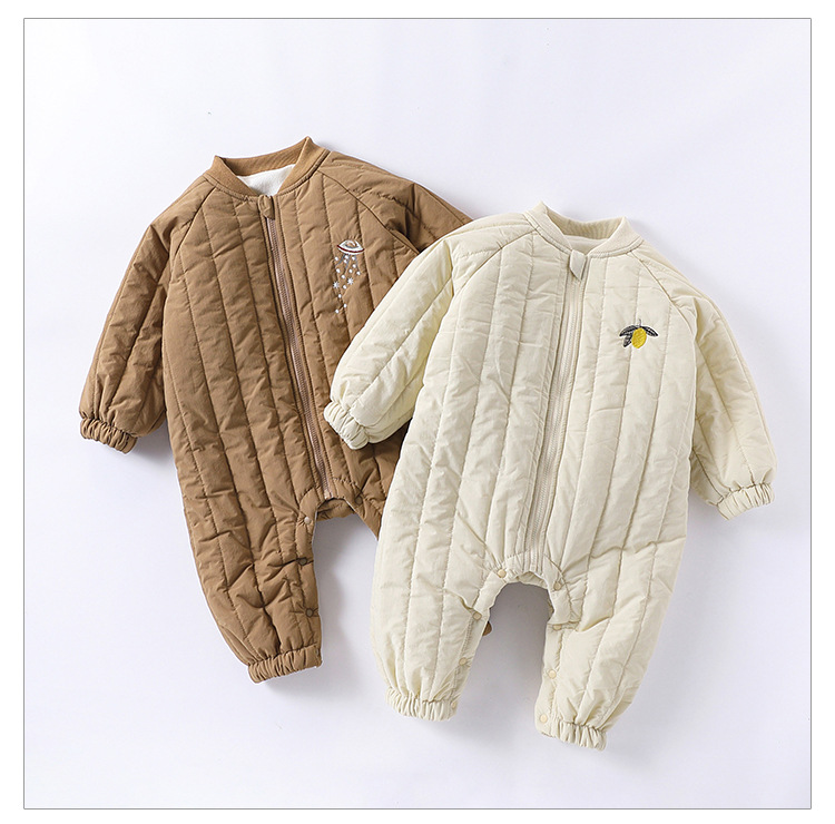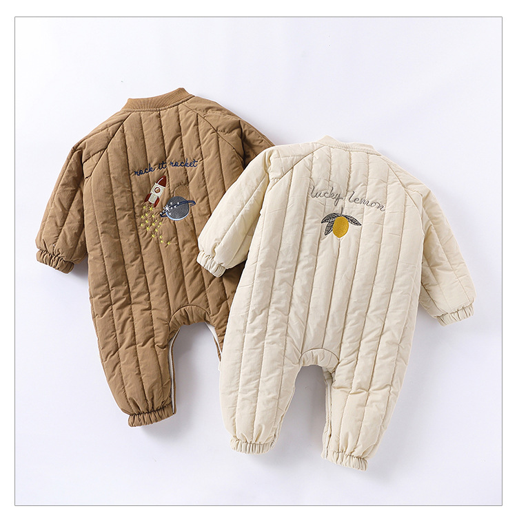 D24551LS-Autumn and winter baby embroidery quilted thick warm crawling clothes