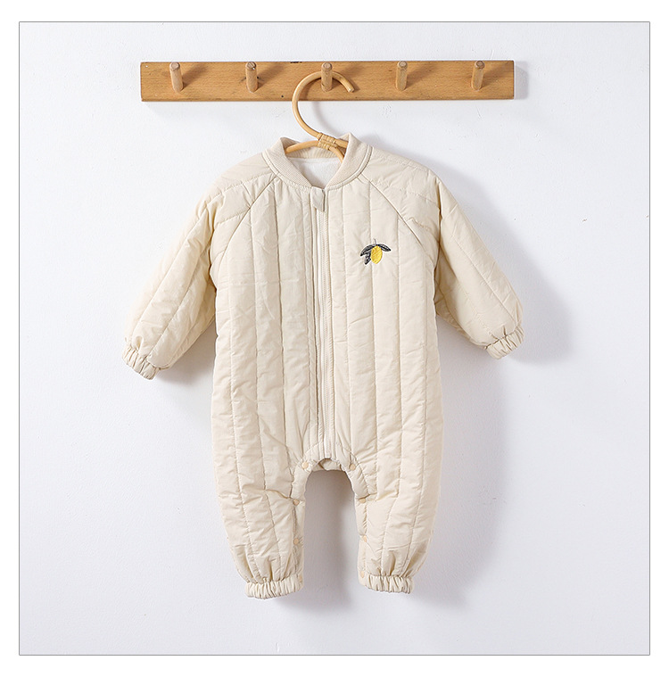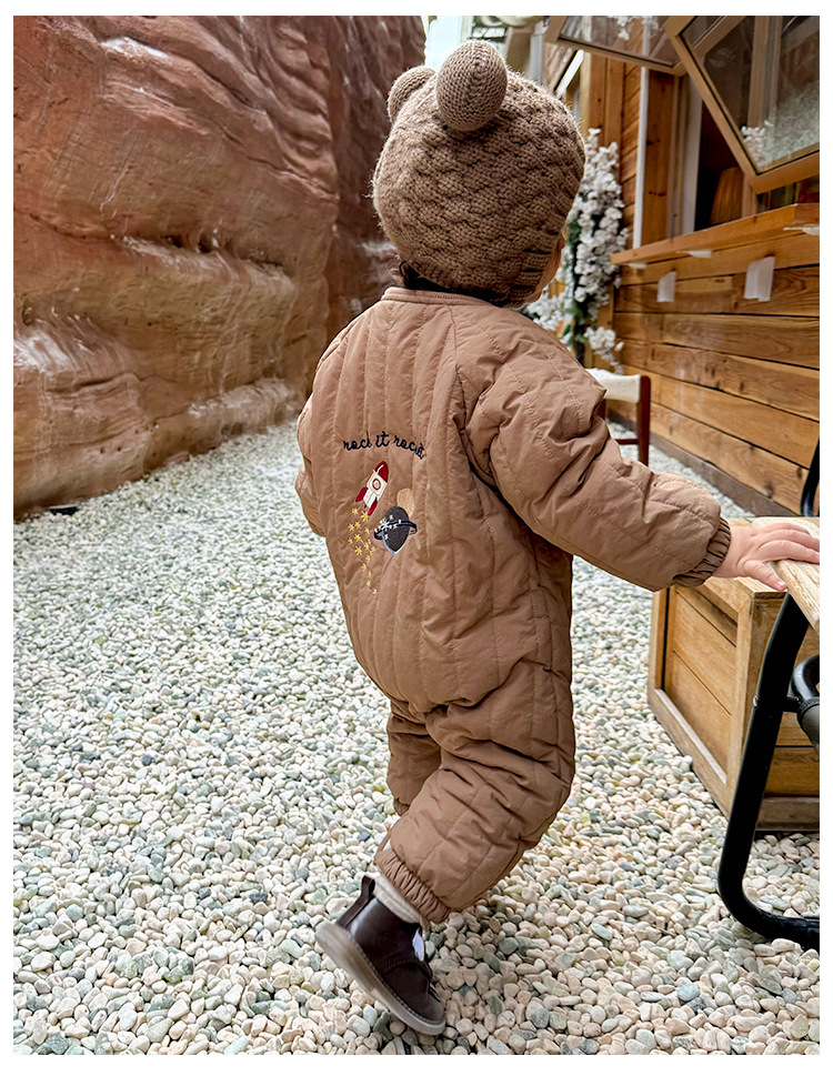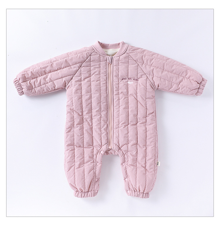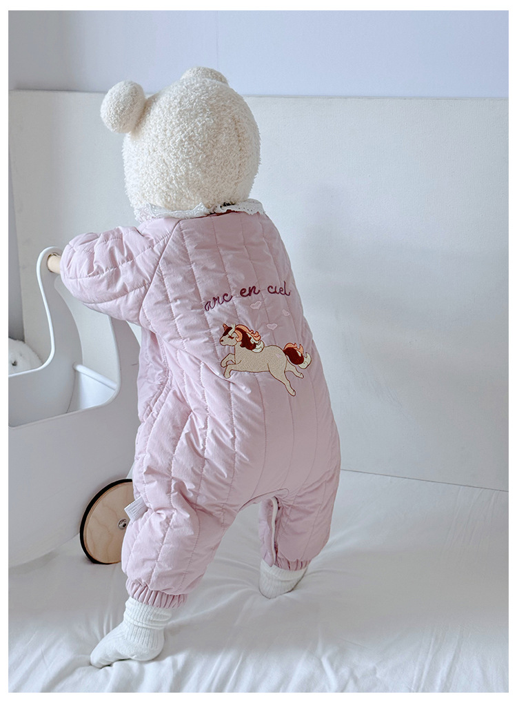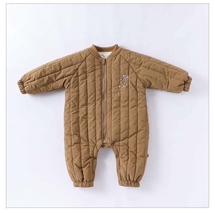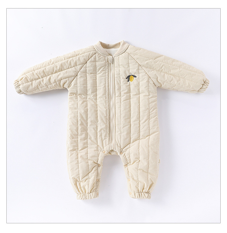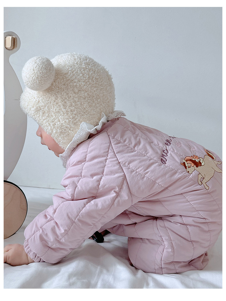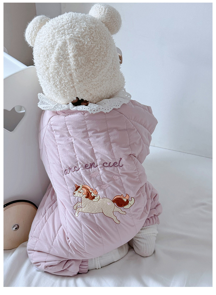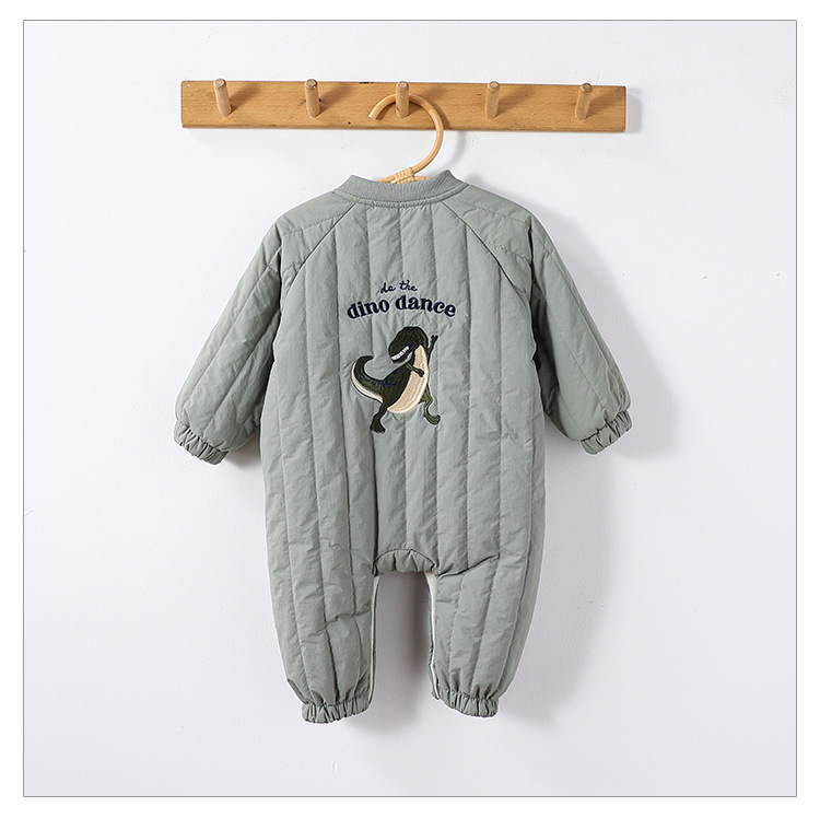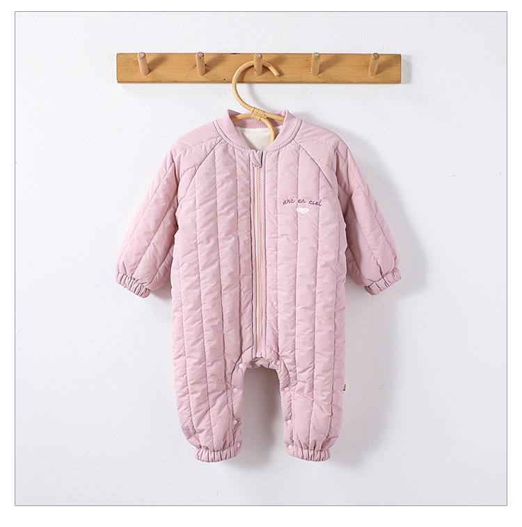 D24551LS-Autumn and winter baby embroidery quilted thick warm crawling clothes