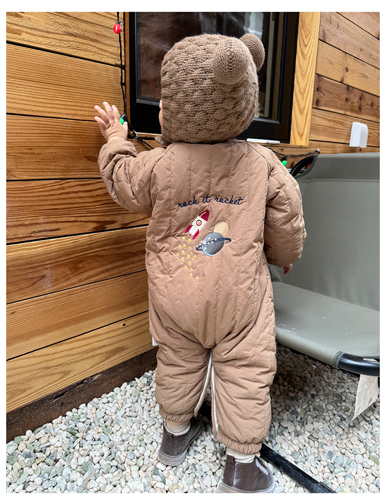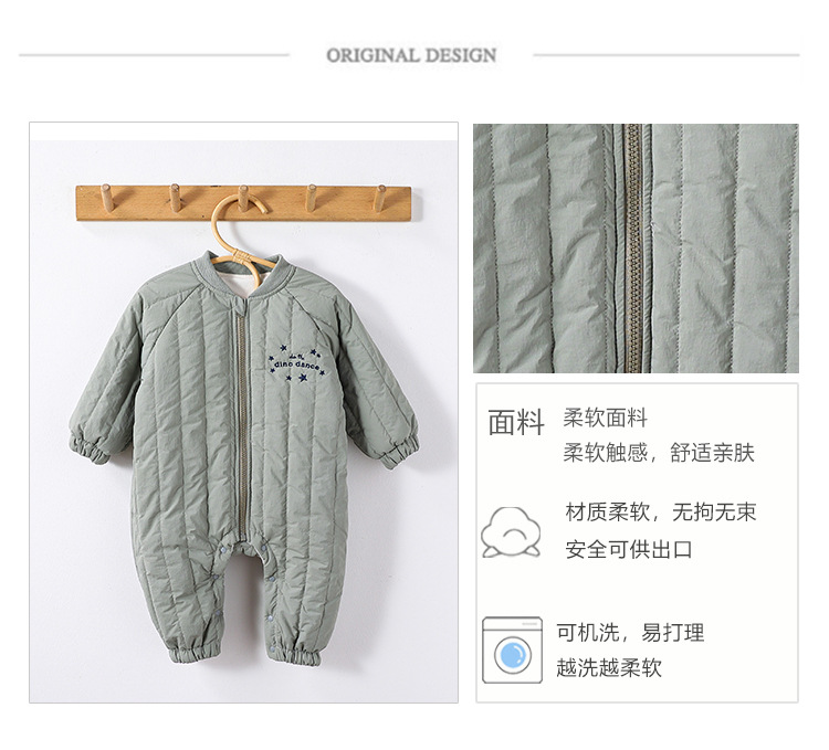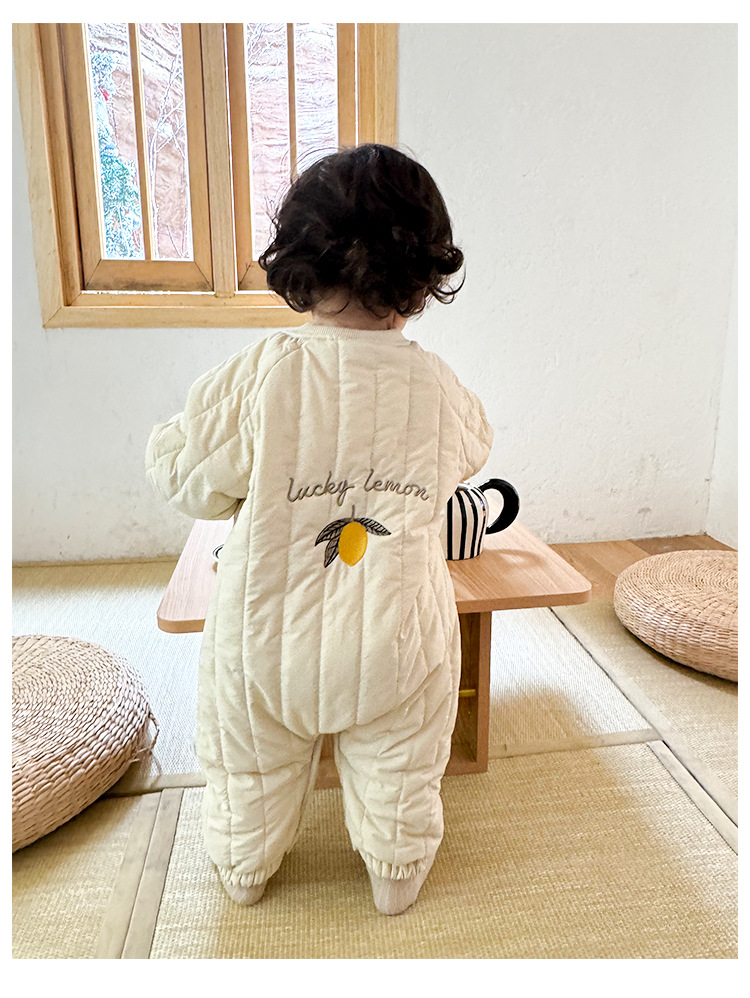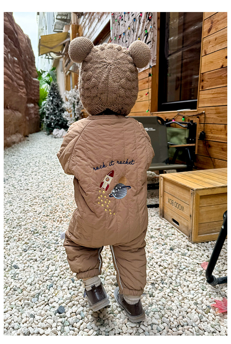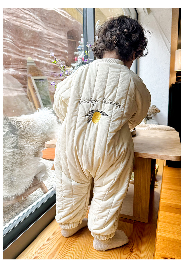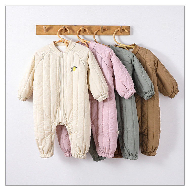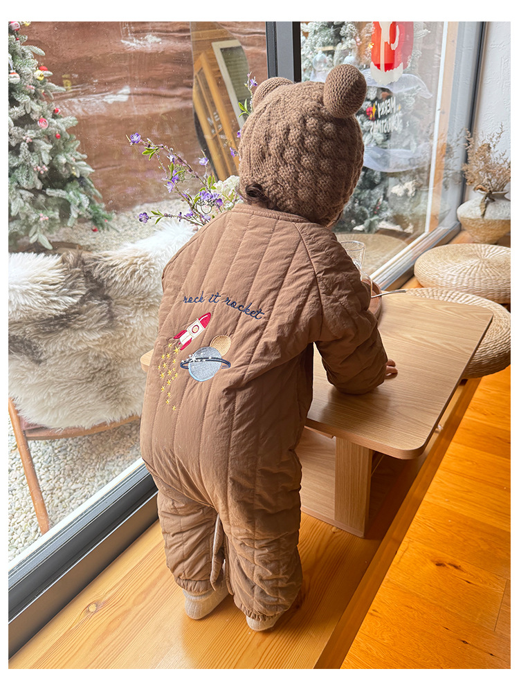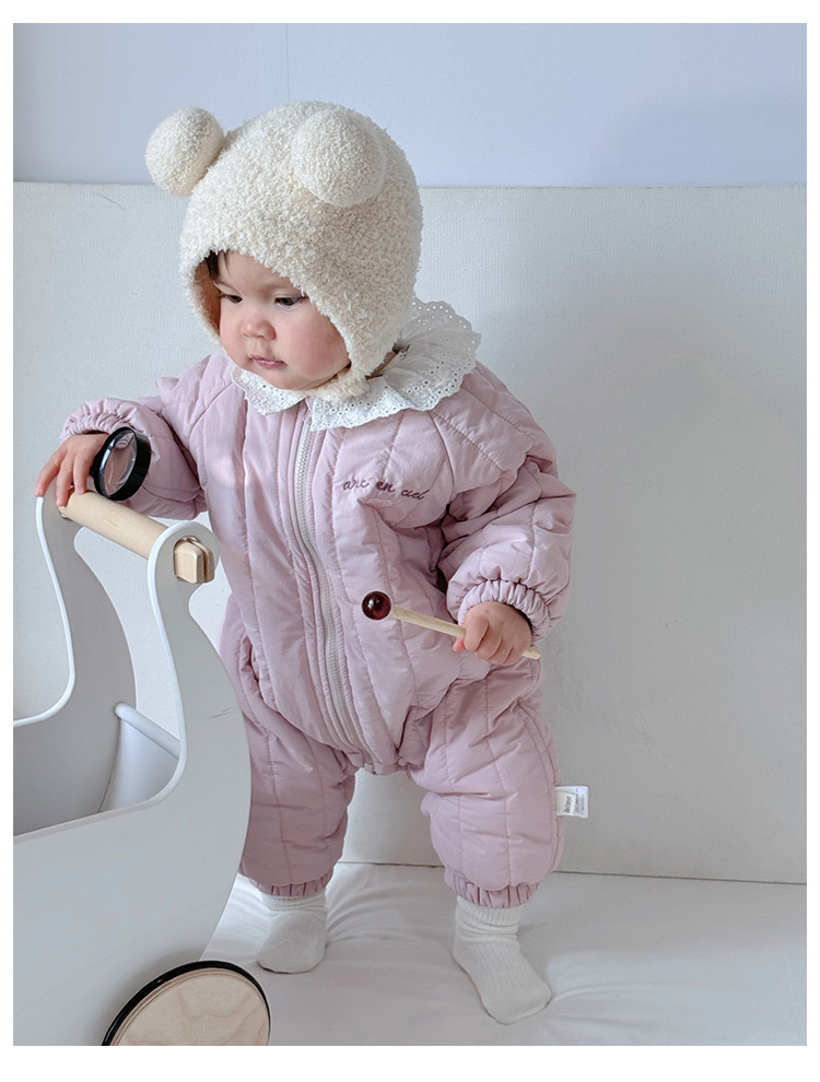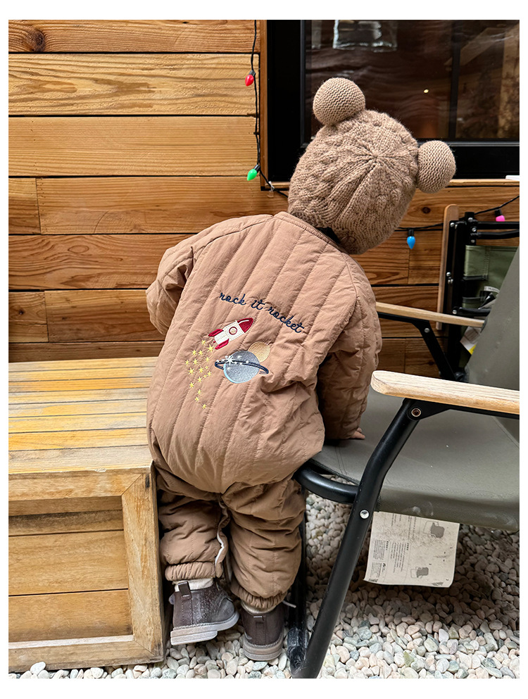 D24551LS-Autumn and winter baby embroidery quilted thick warm crawling clothes