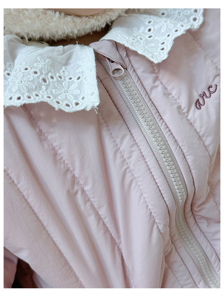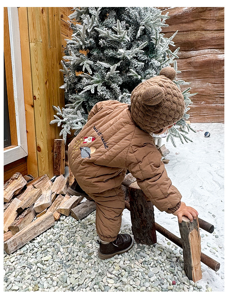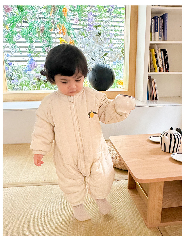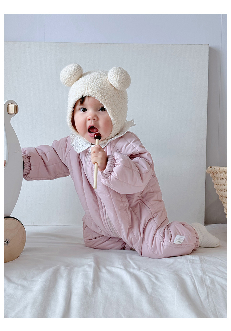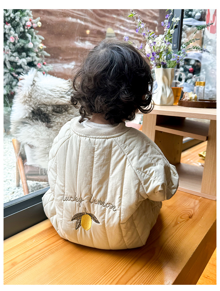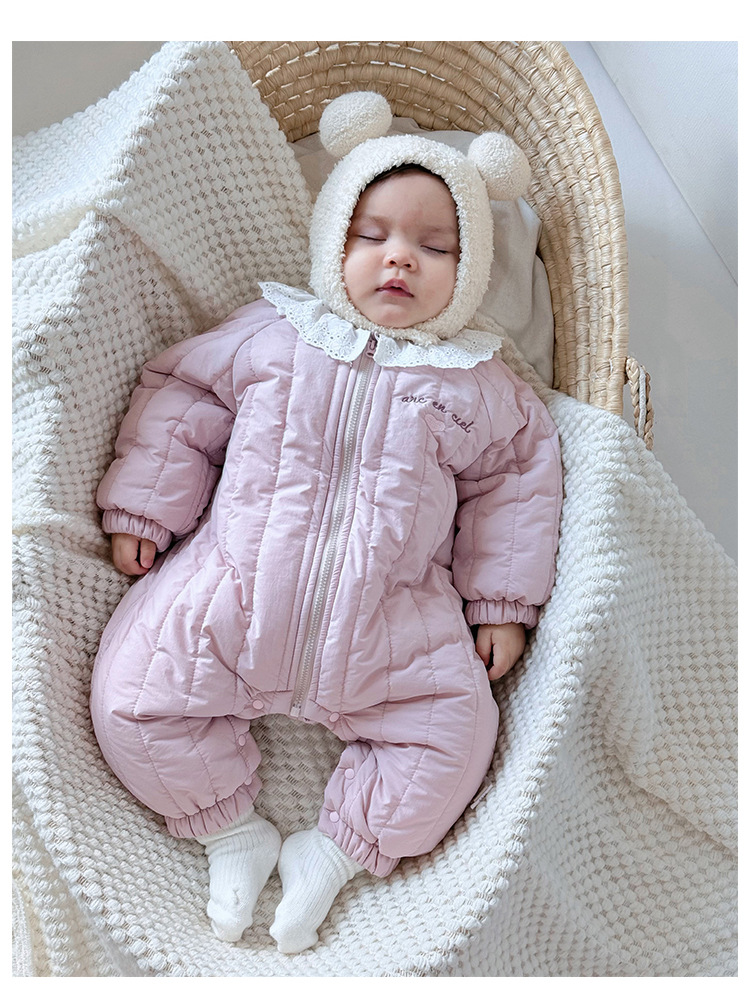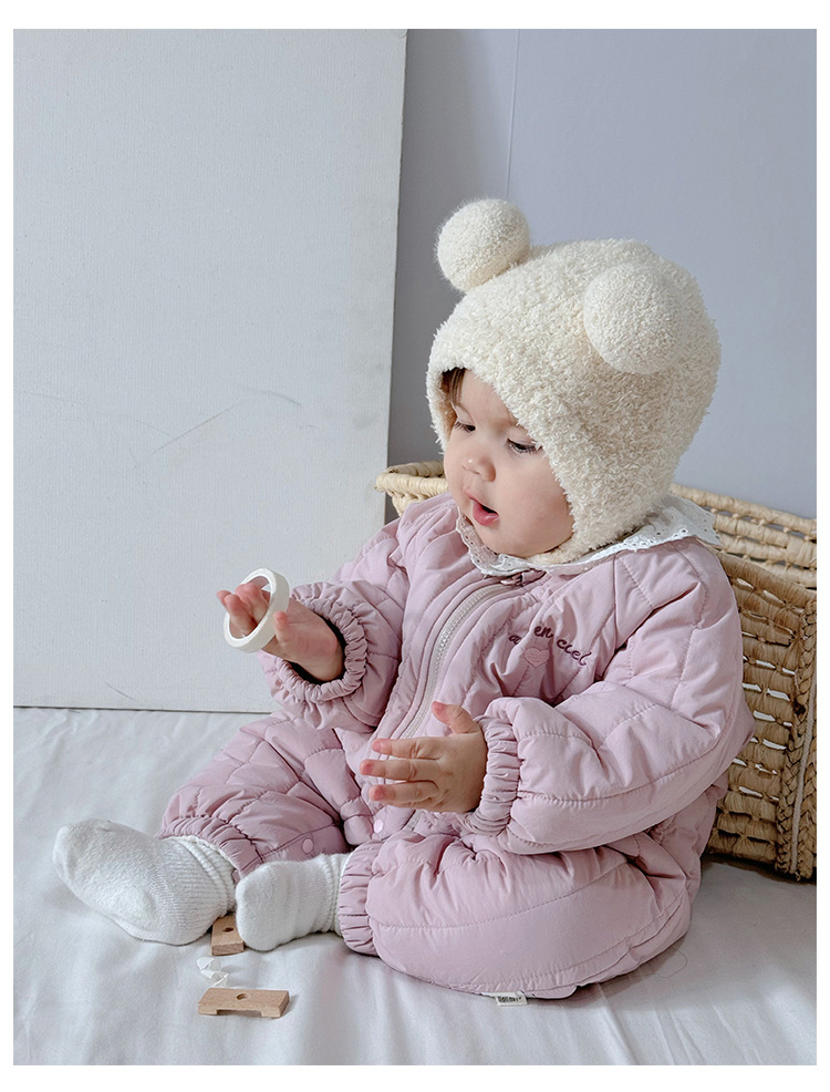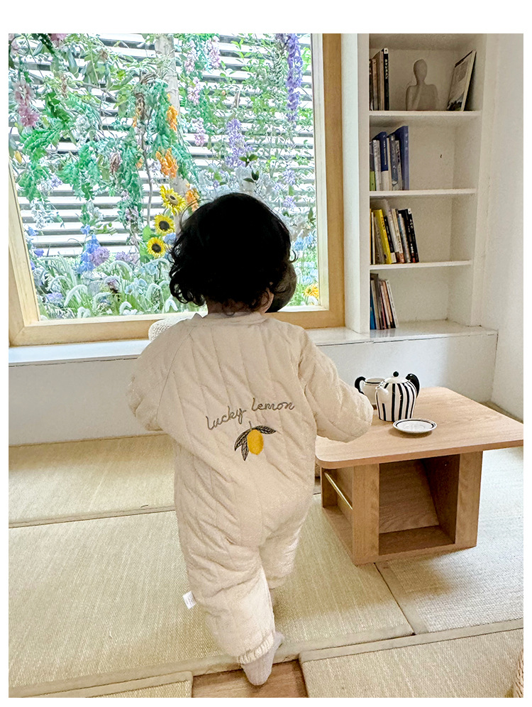 D24551LS-Autumn and winter baby embroidery quilted thick warm crawling clothes