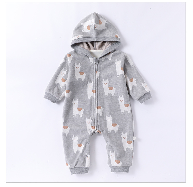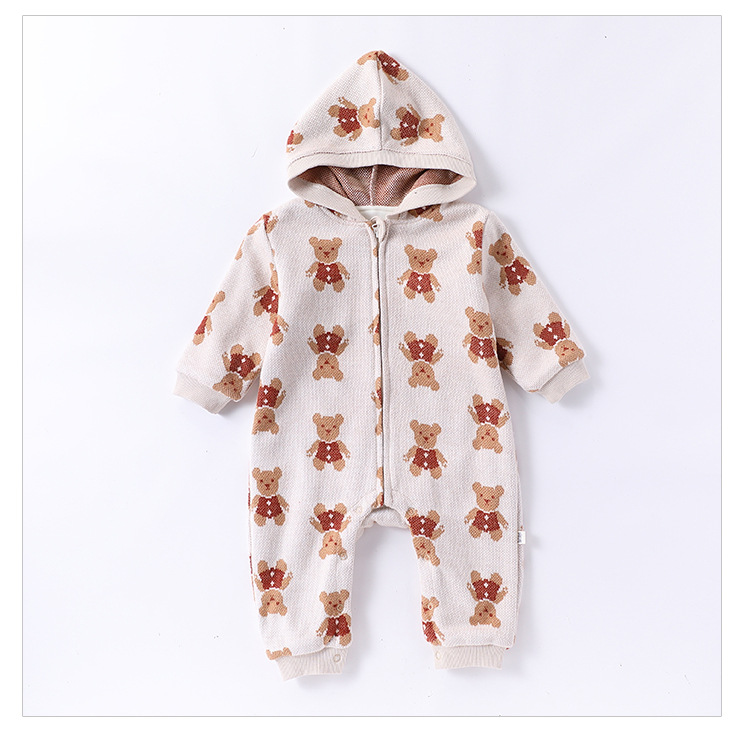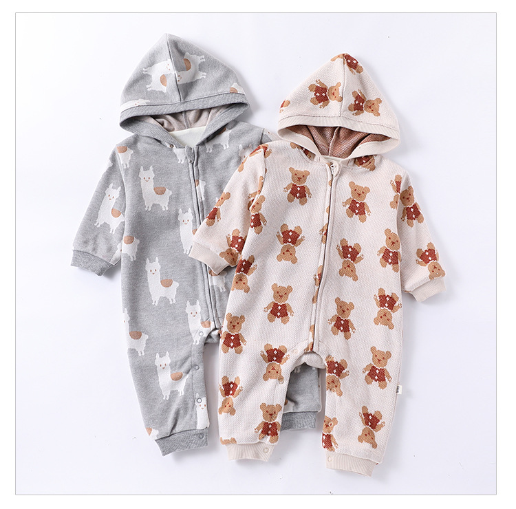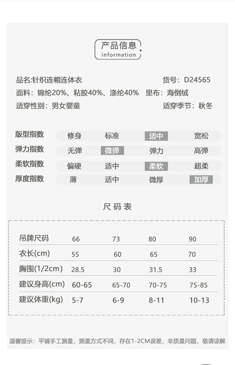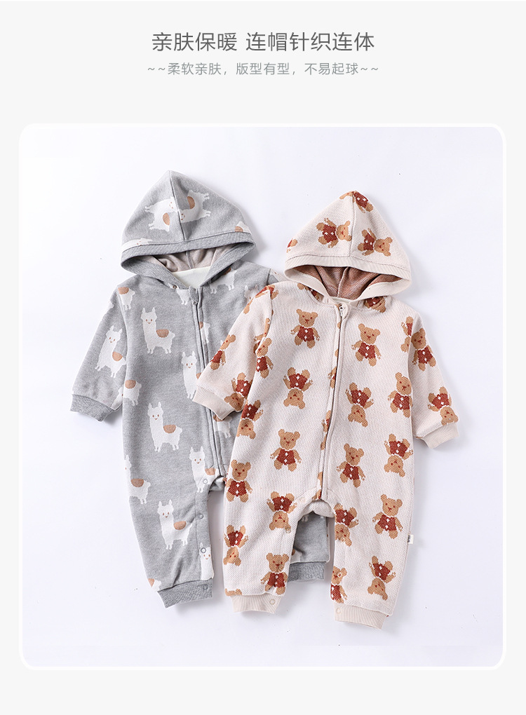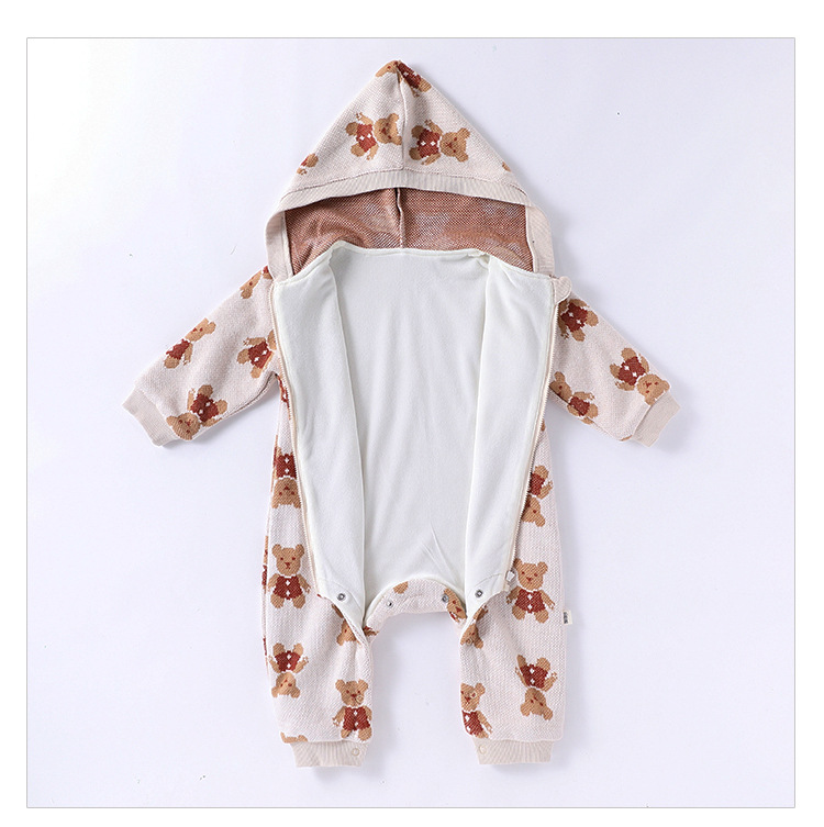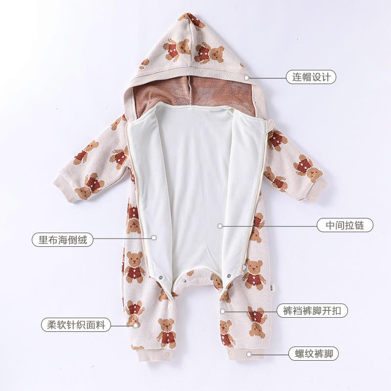 D24565LS-Autumn and winter plus velvet baby warm knitted hooded crawling clothes