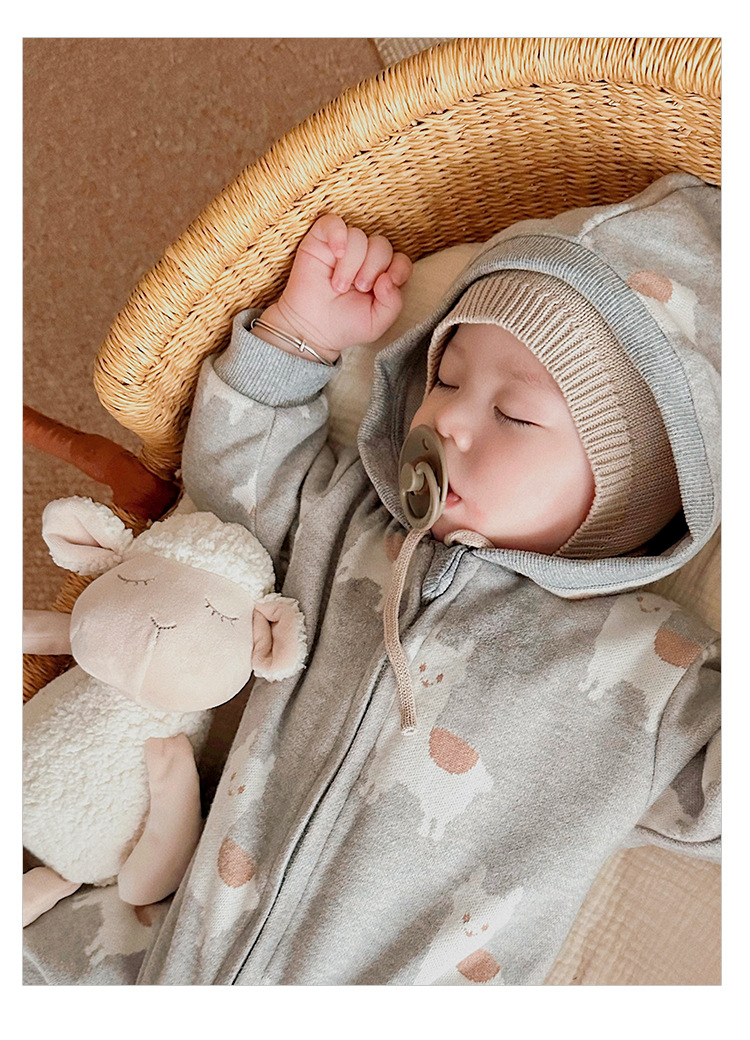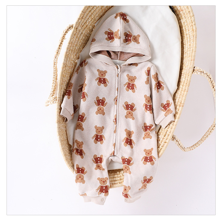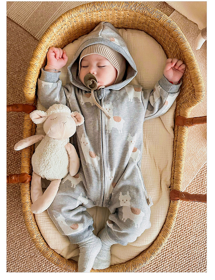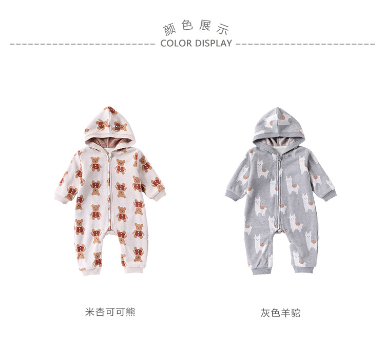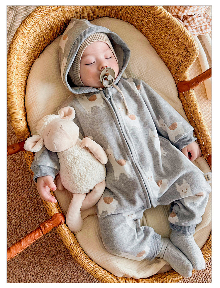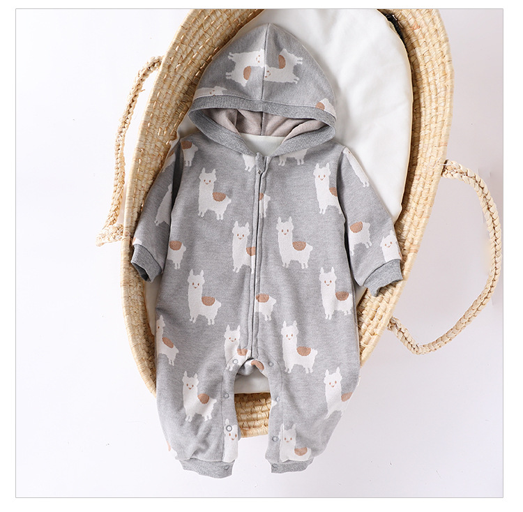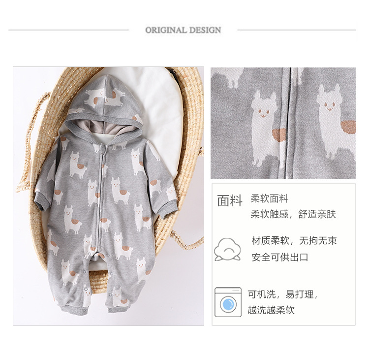 D24565LS-Autumn and winter plus velvet baby warm knitted hooded crawling clothes