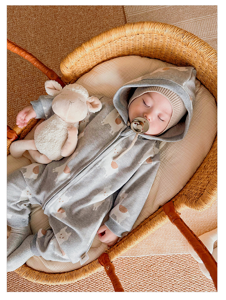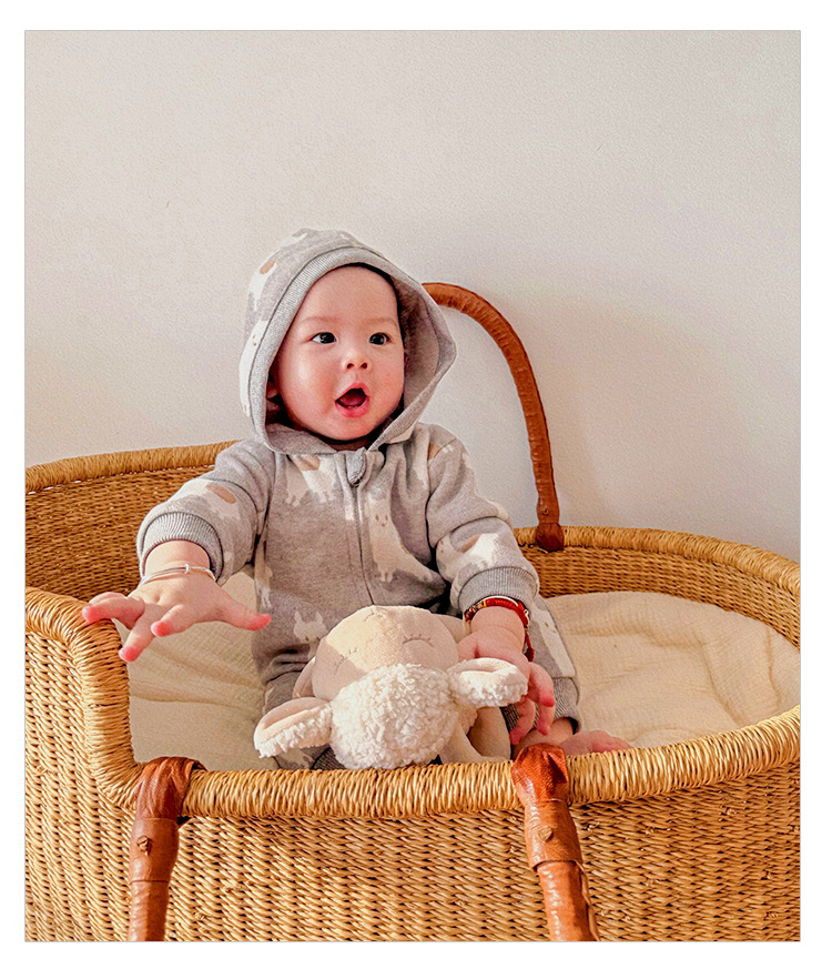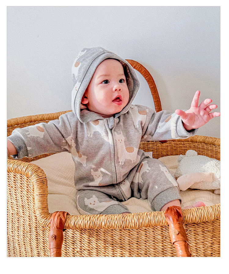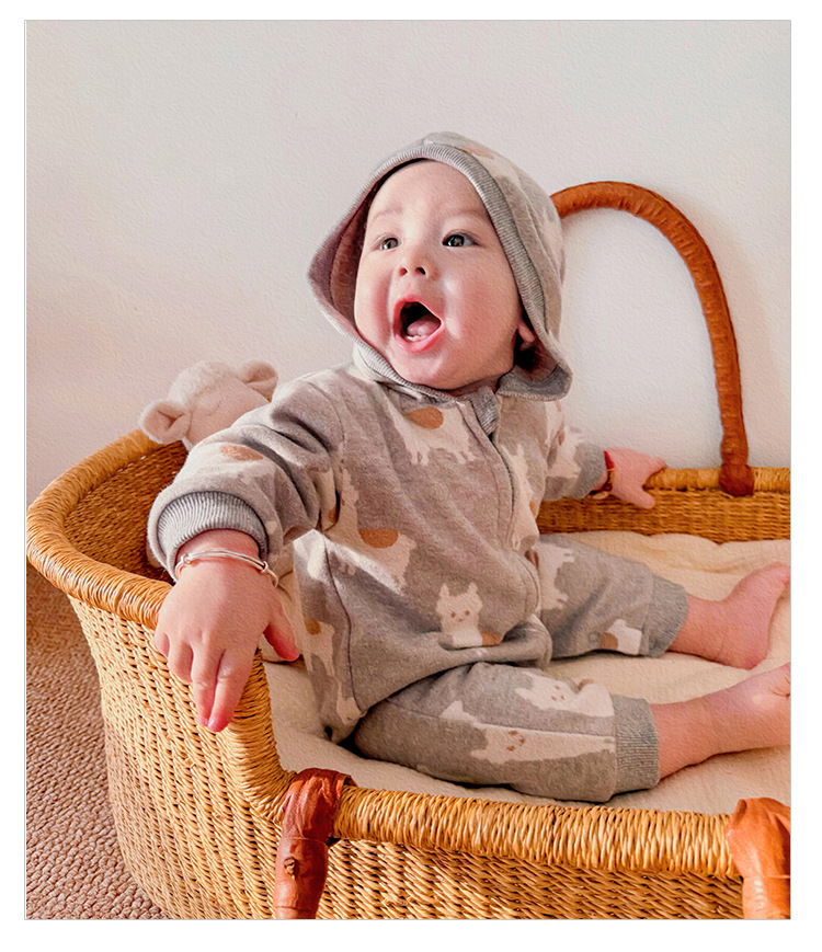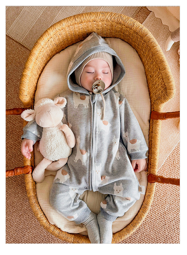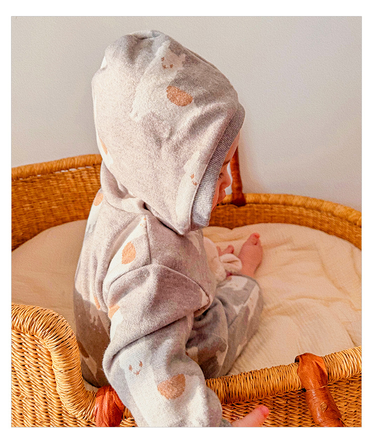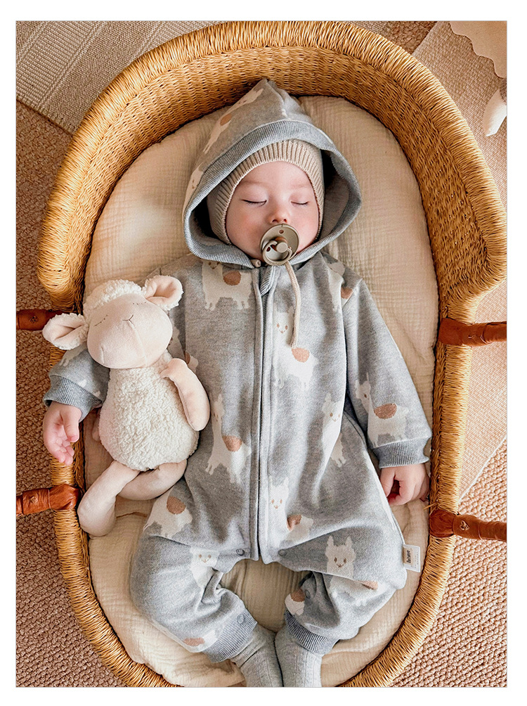 D24565LS-Autumn and winter plus velvet baby warm knitted hooded crawling clothes