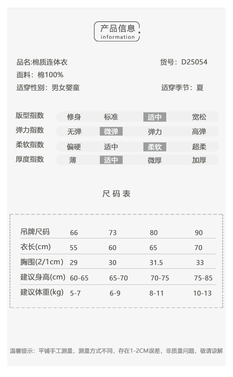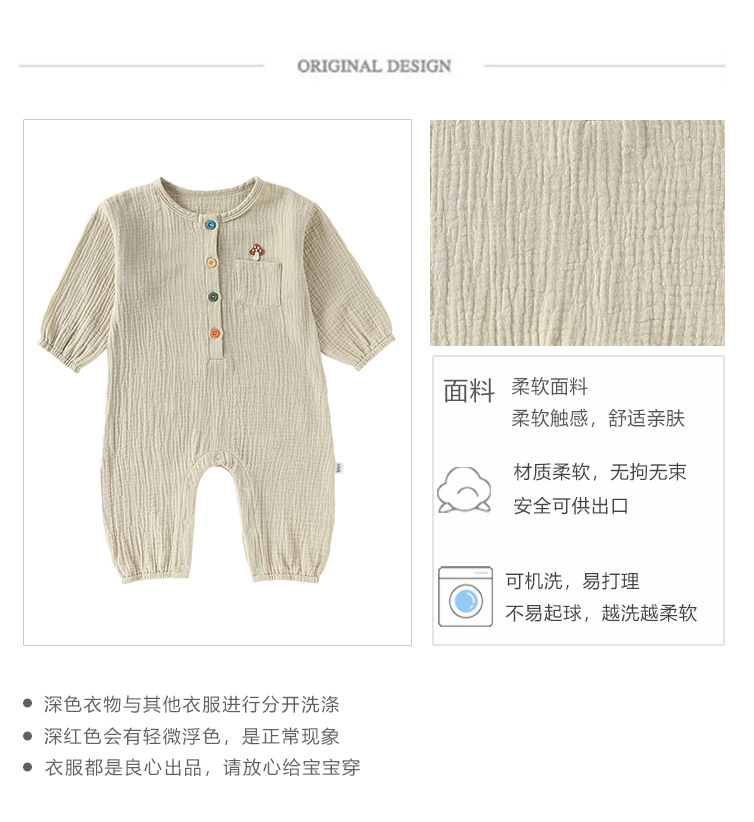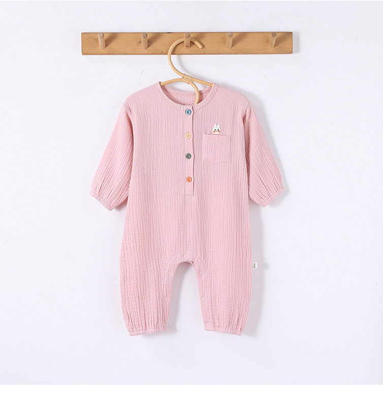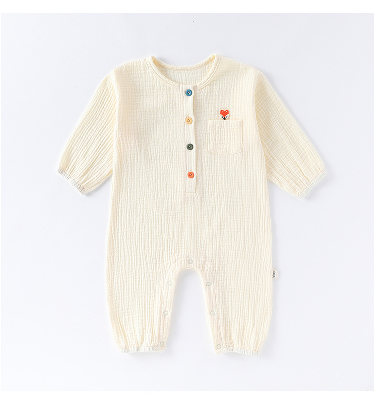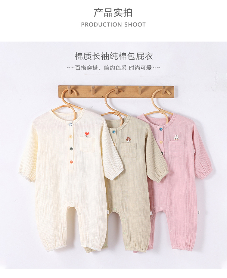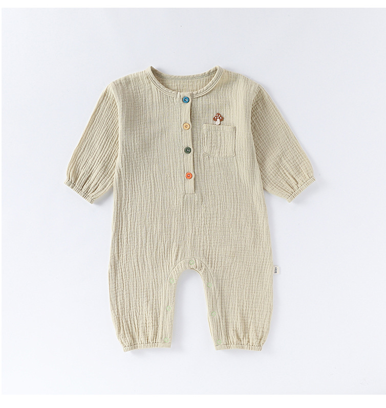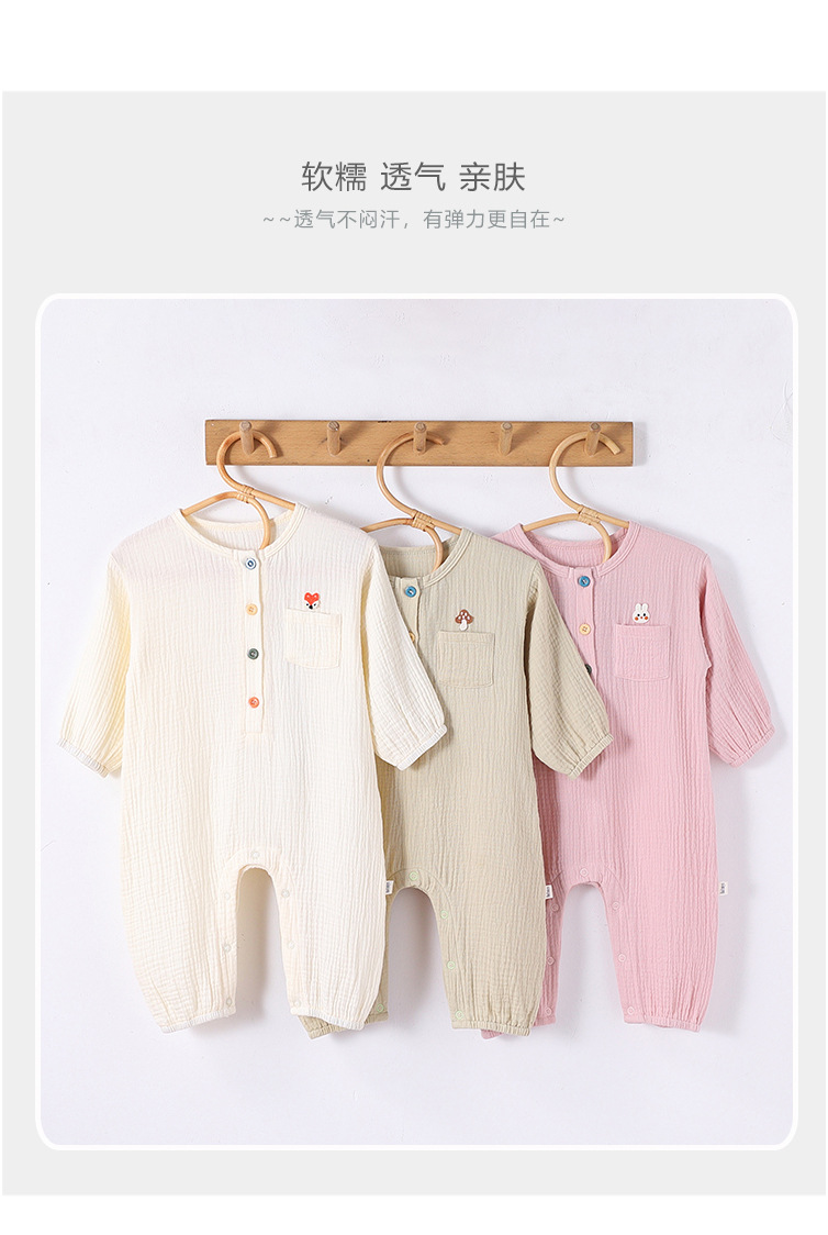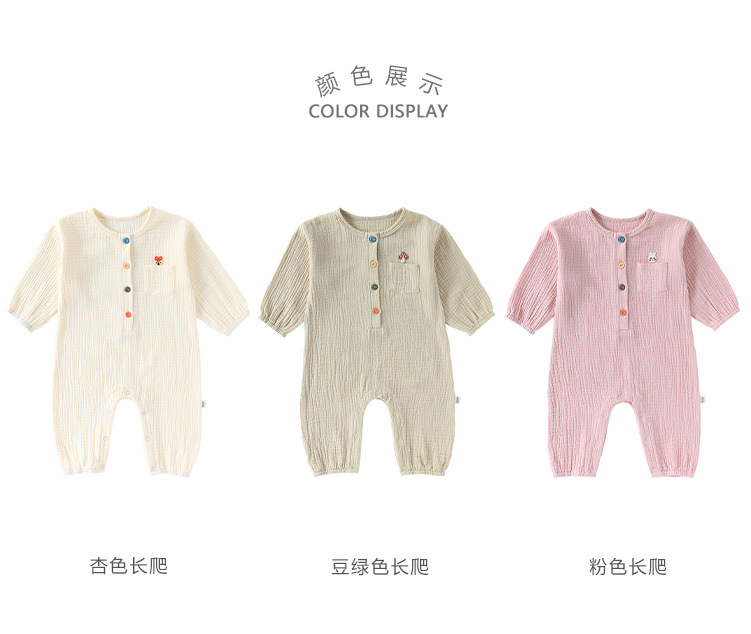 D25054LS-Spring and summer pure cotton men and women's embroidered thin crawling clothes