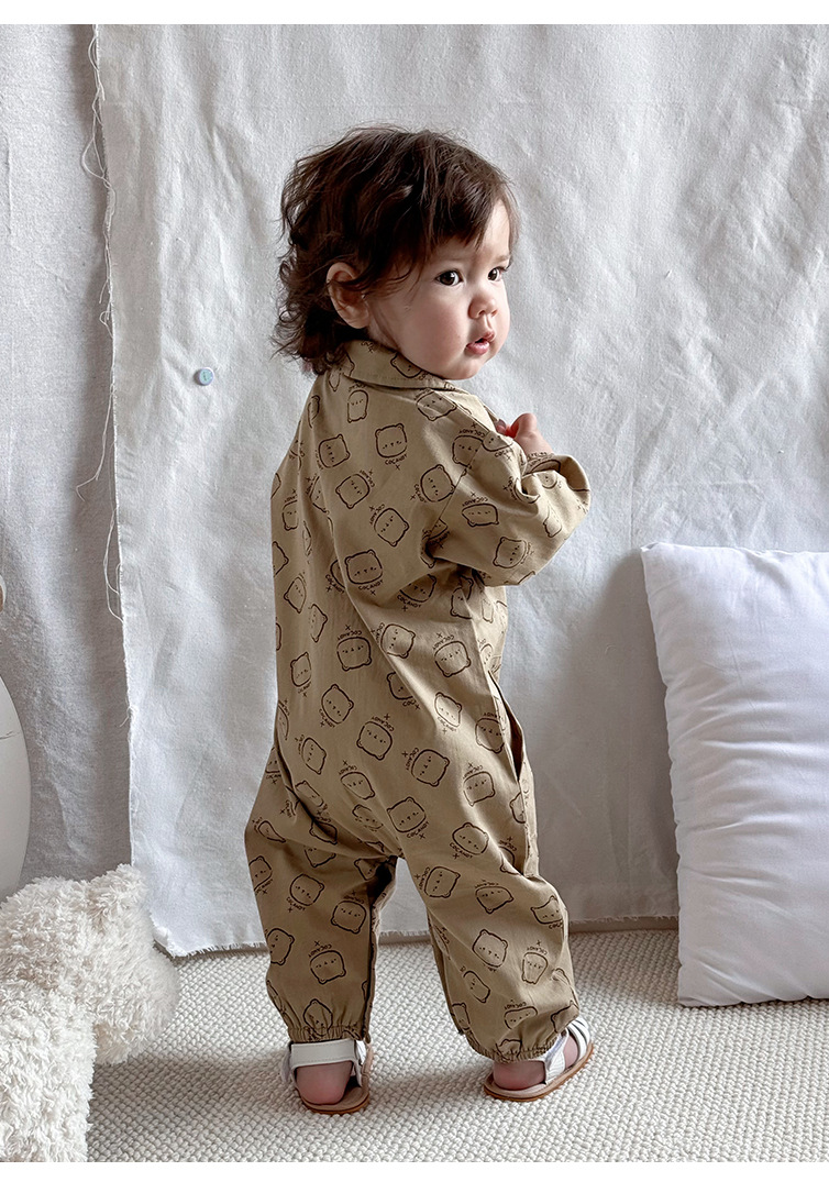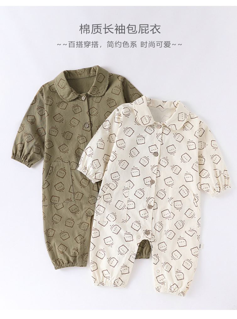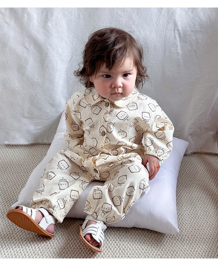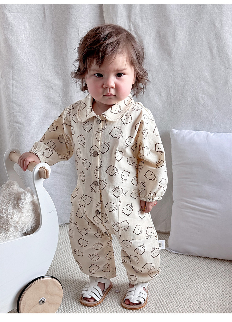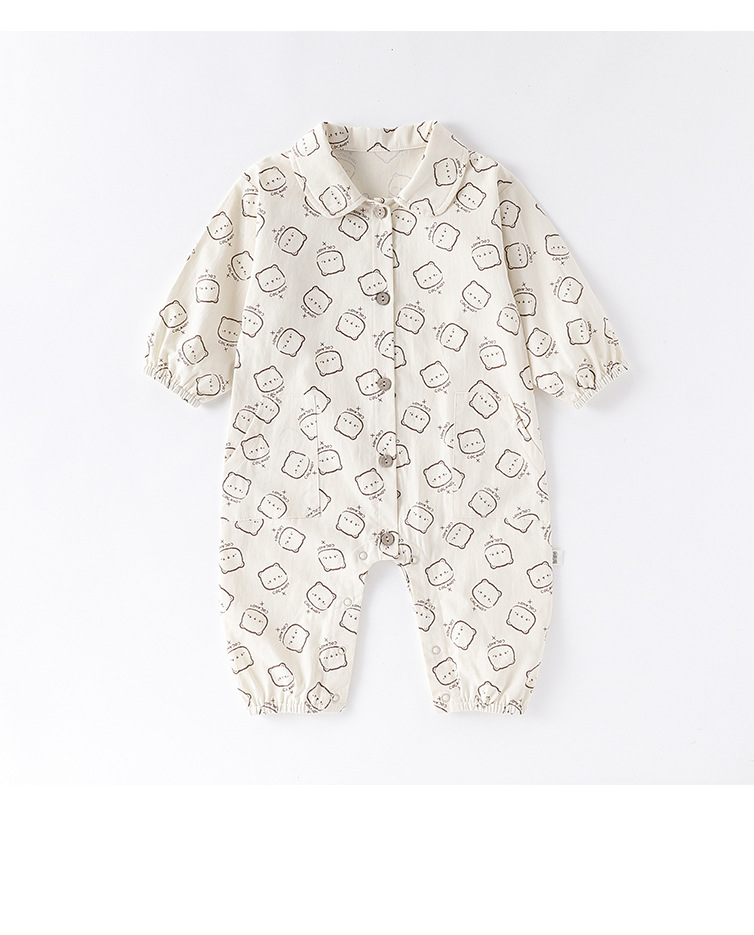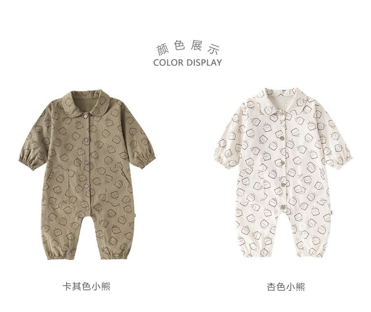 D25059LS-Spring and summer pure cotton baby bear lapel print crawling clothes