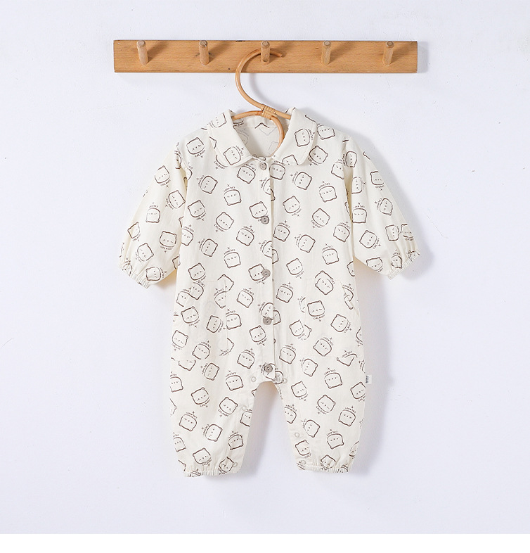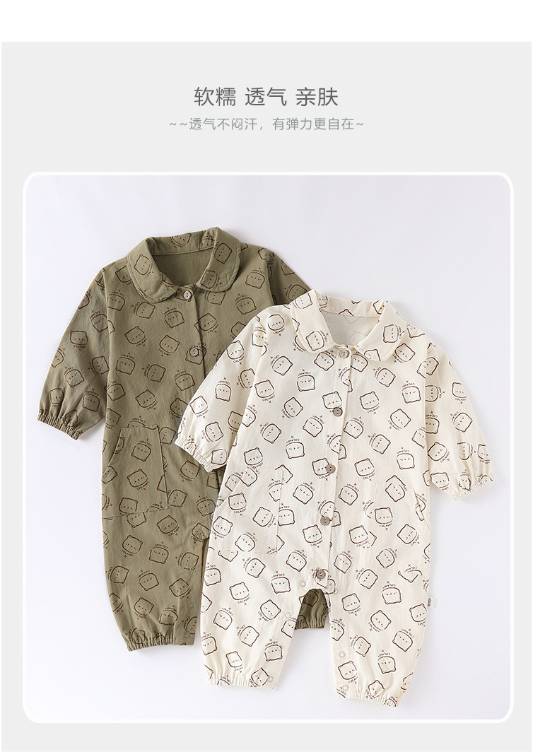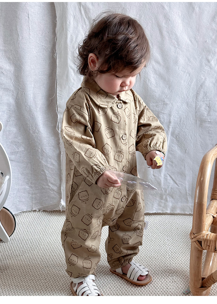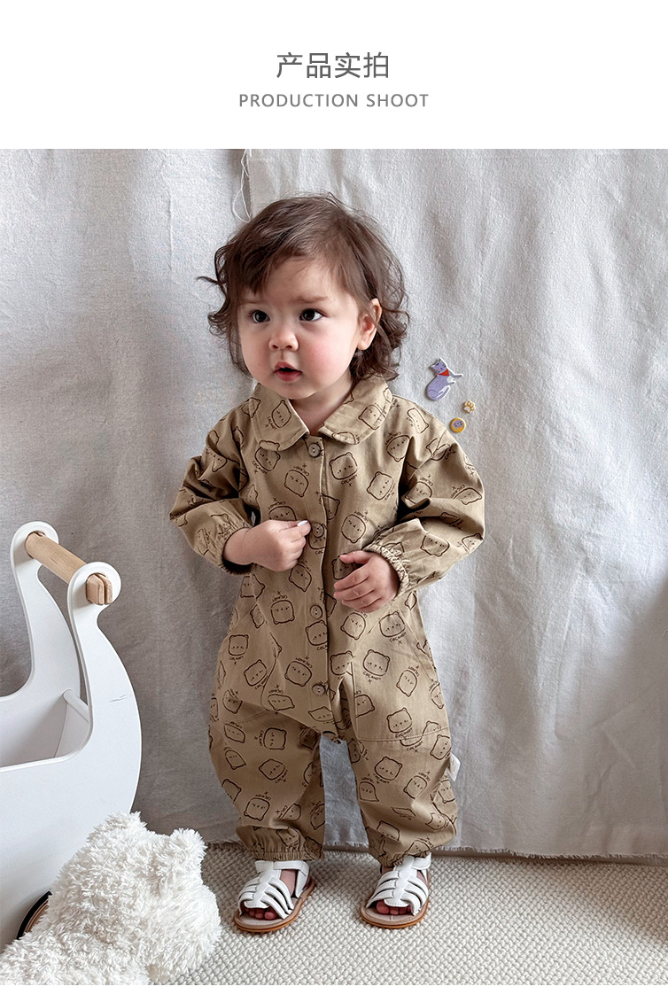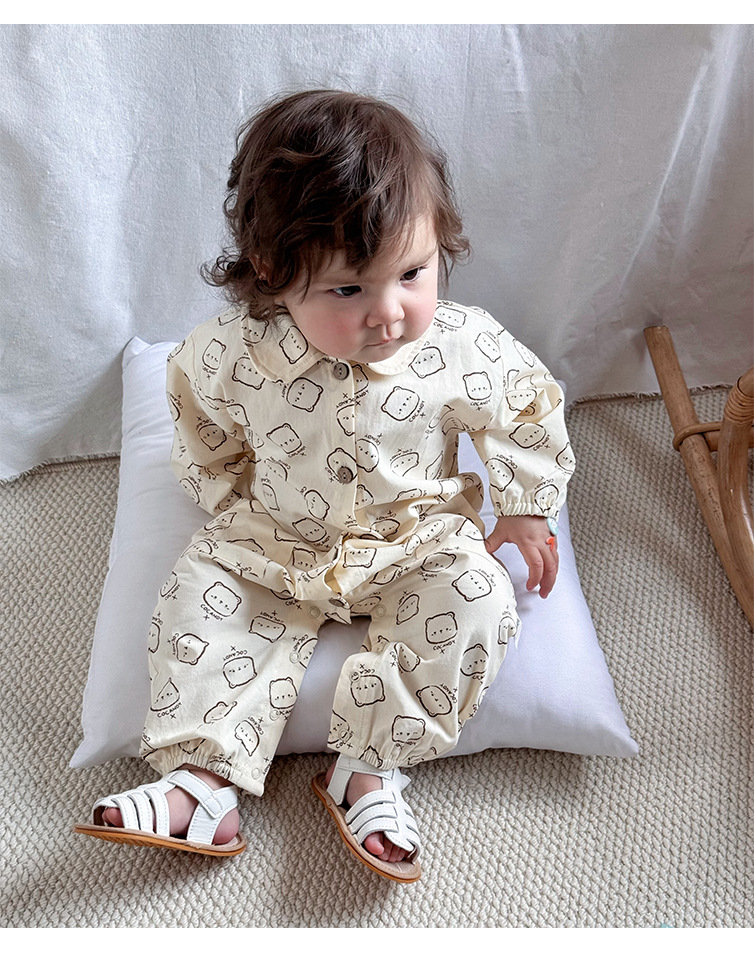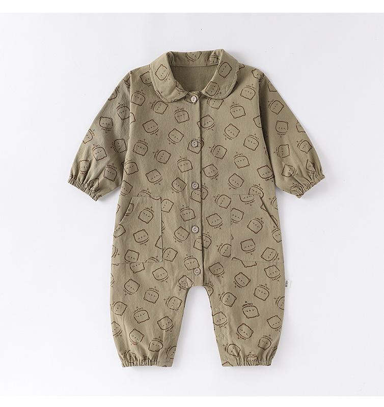 D25059LS-Spring and summer pure cotton baby bear lapel print crawling clothes