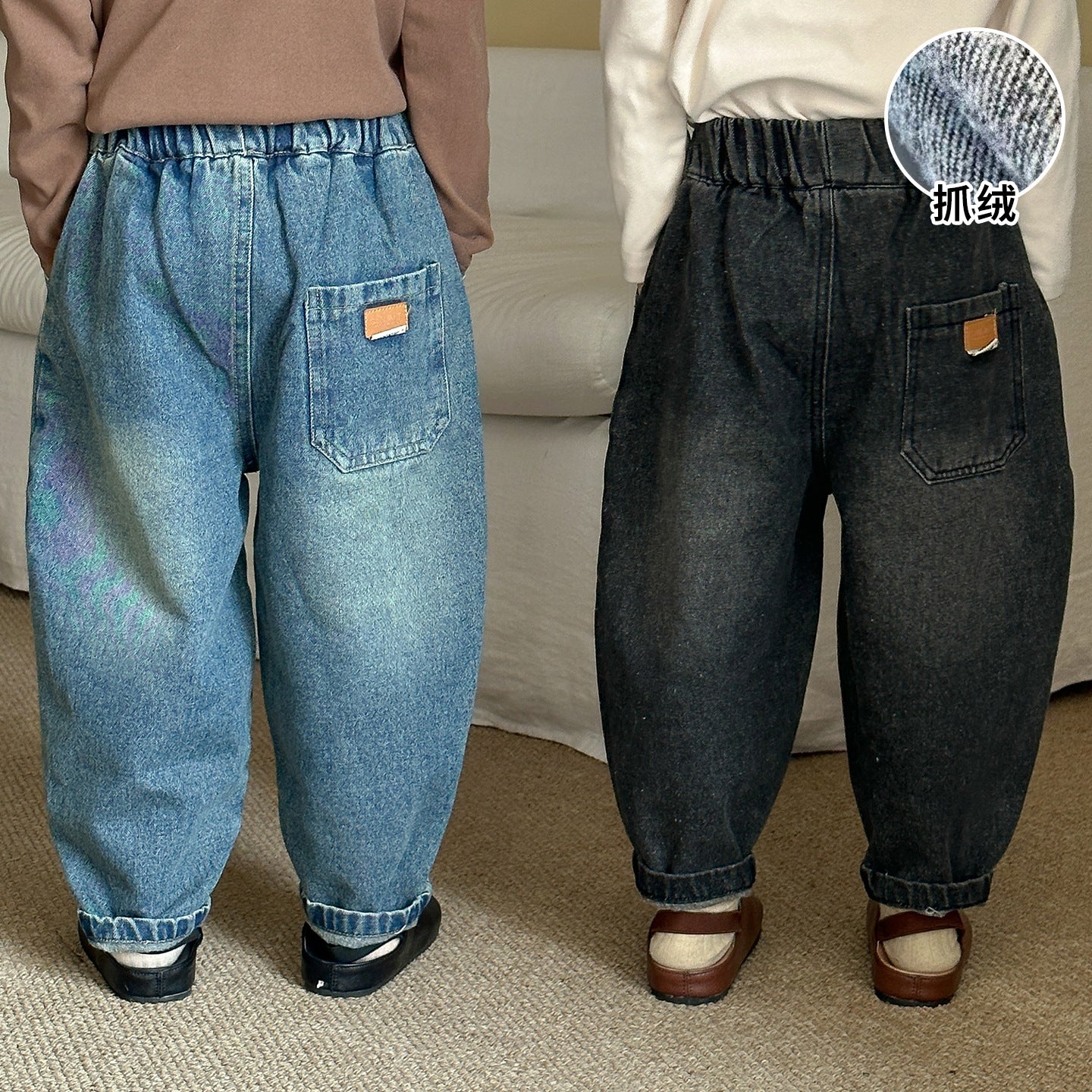 DK250681PA-秋冬季韓版牛仔抓絨休閒長褲