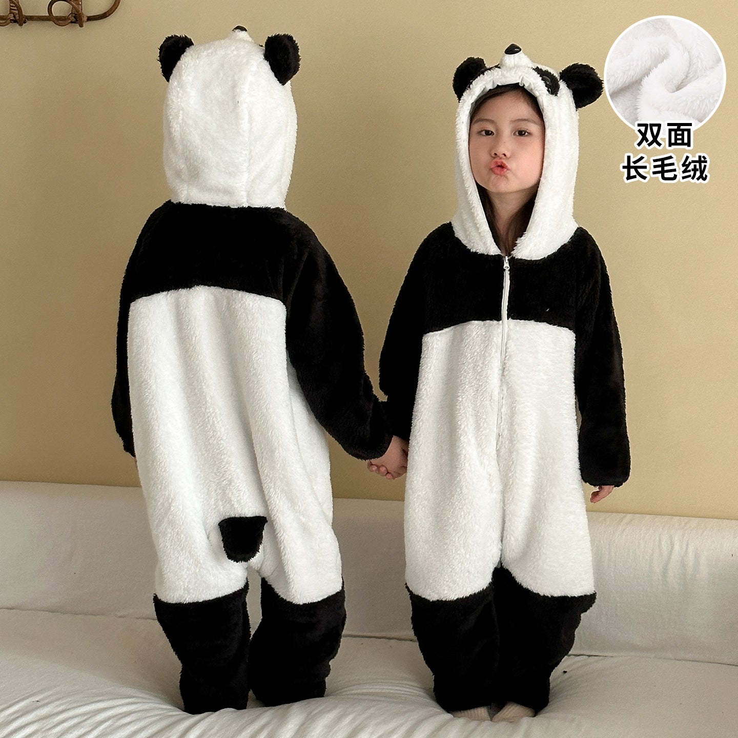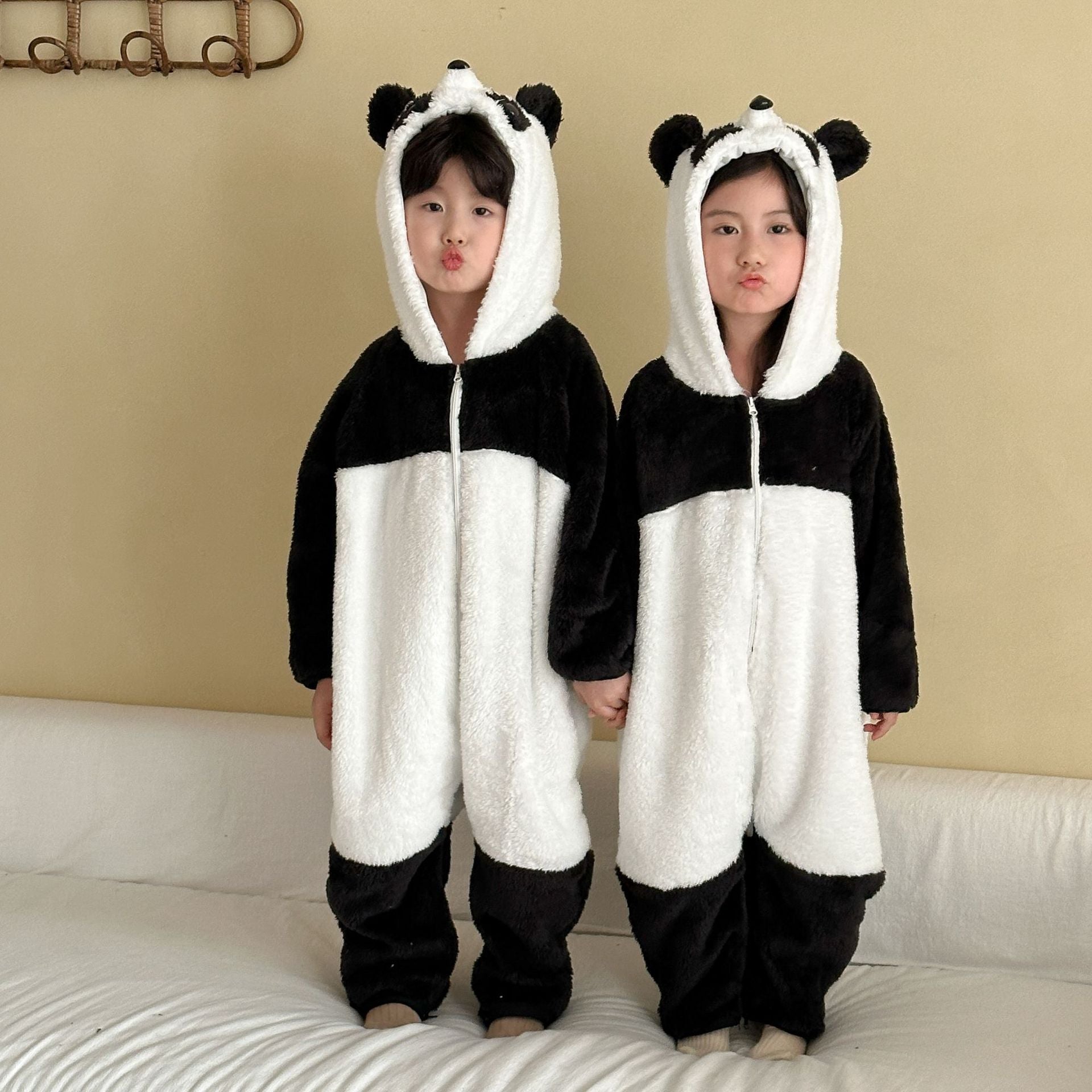DL250658LS-秋冬季熊貓加厚法蘭絨連體睡衣