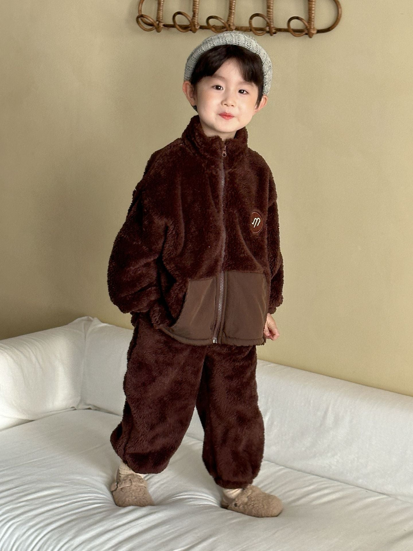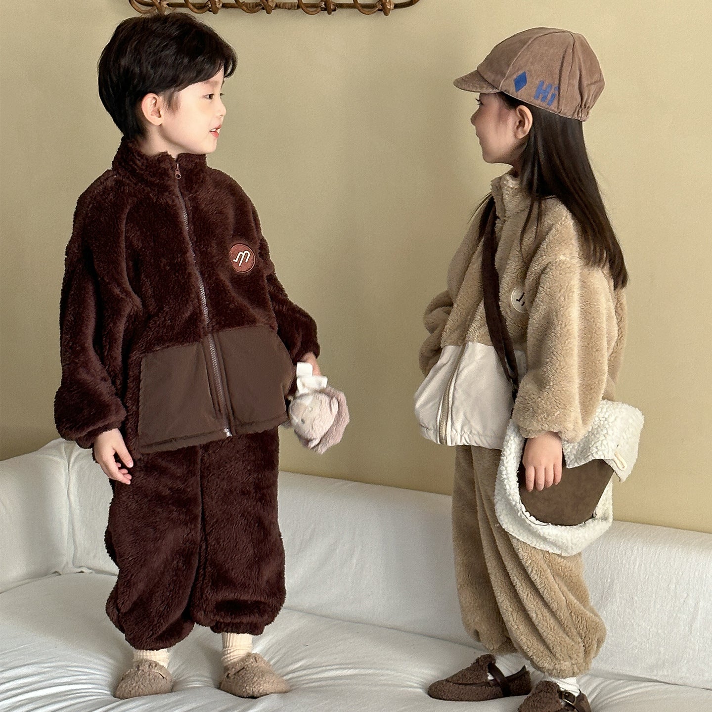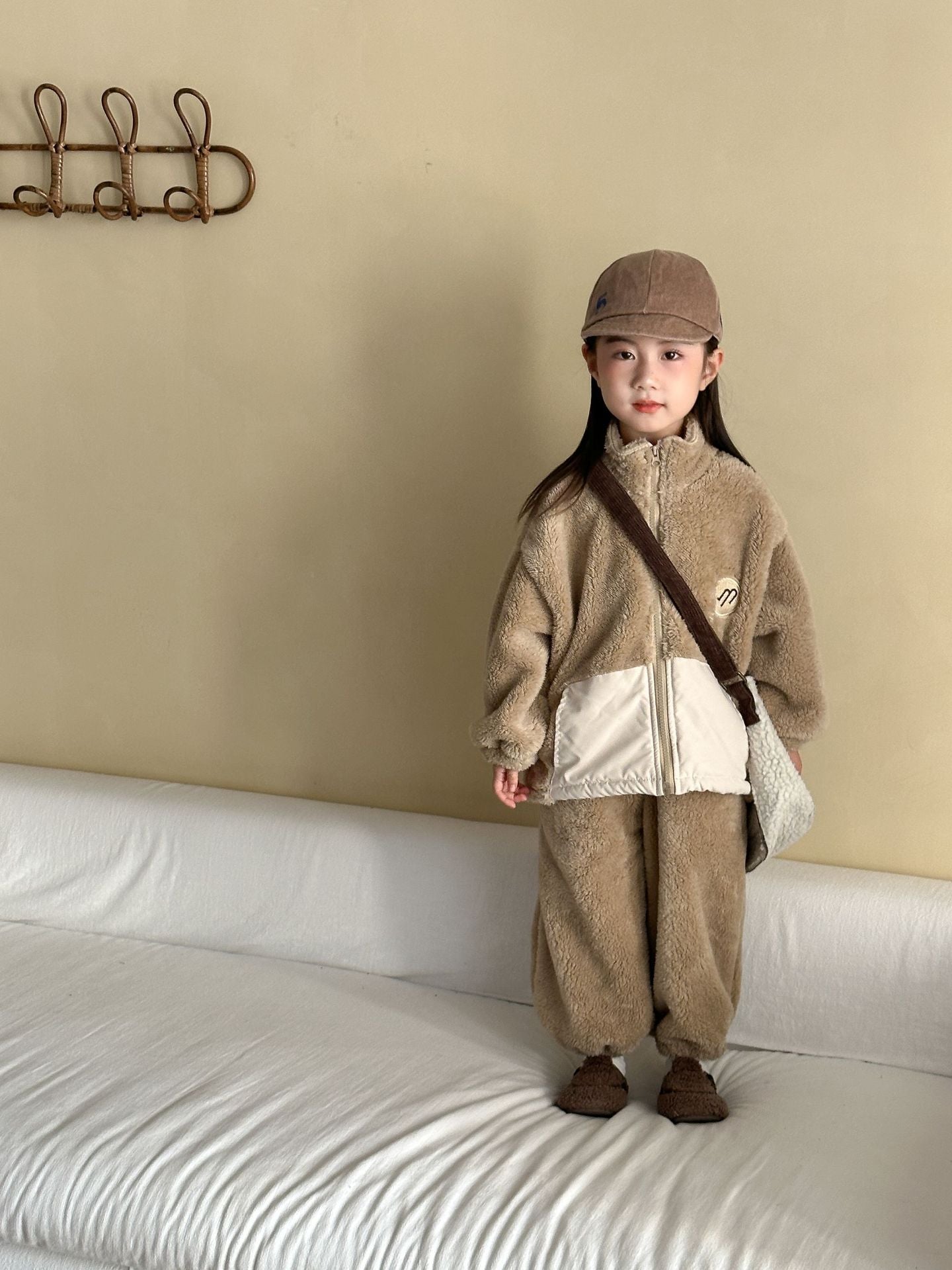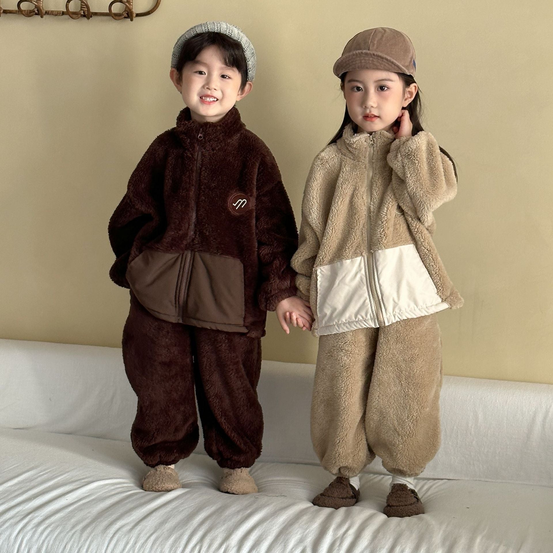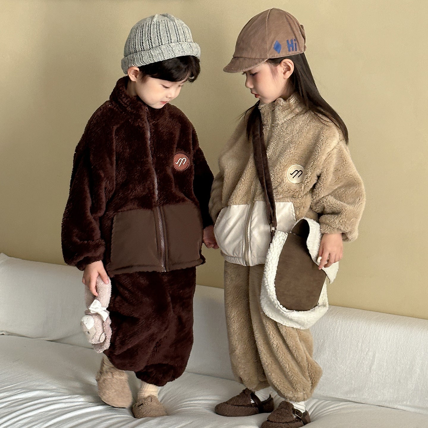 DZ250608TG-秋冬季韓版加厚法蘭絨拉鍊休閒兩件套裝