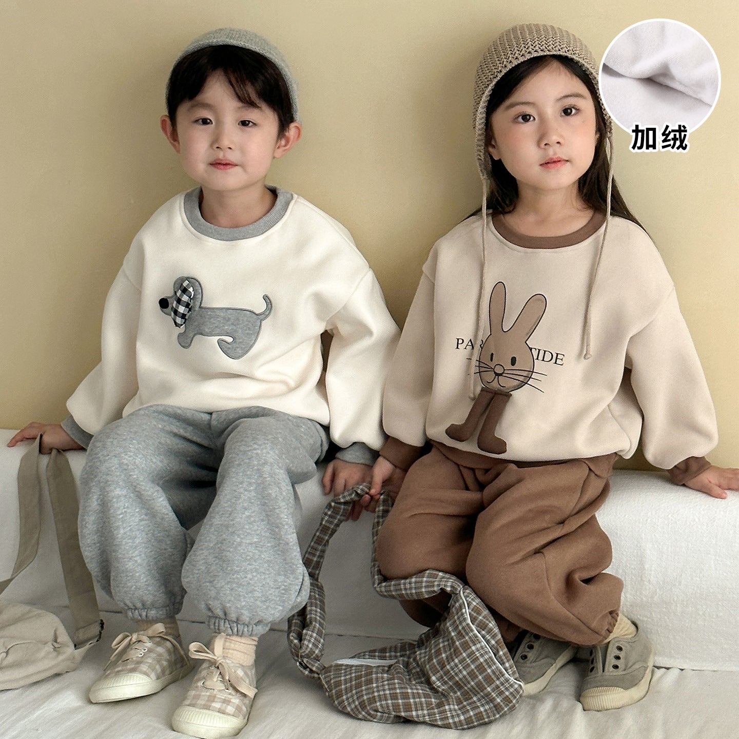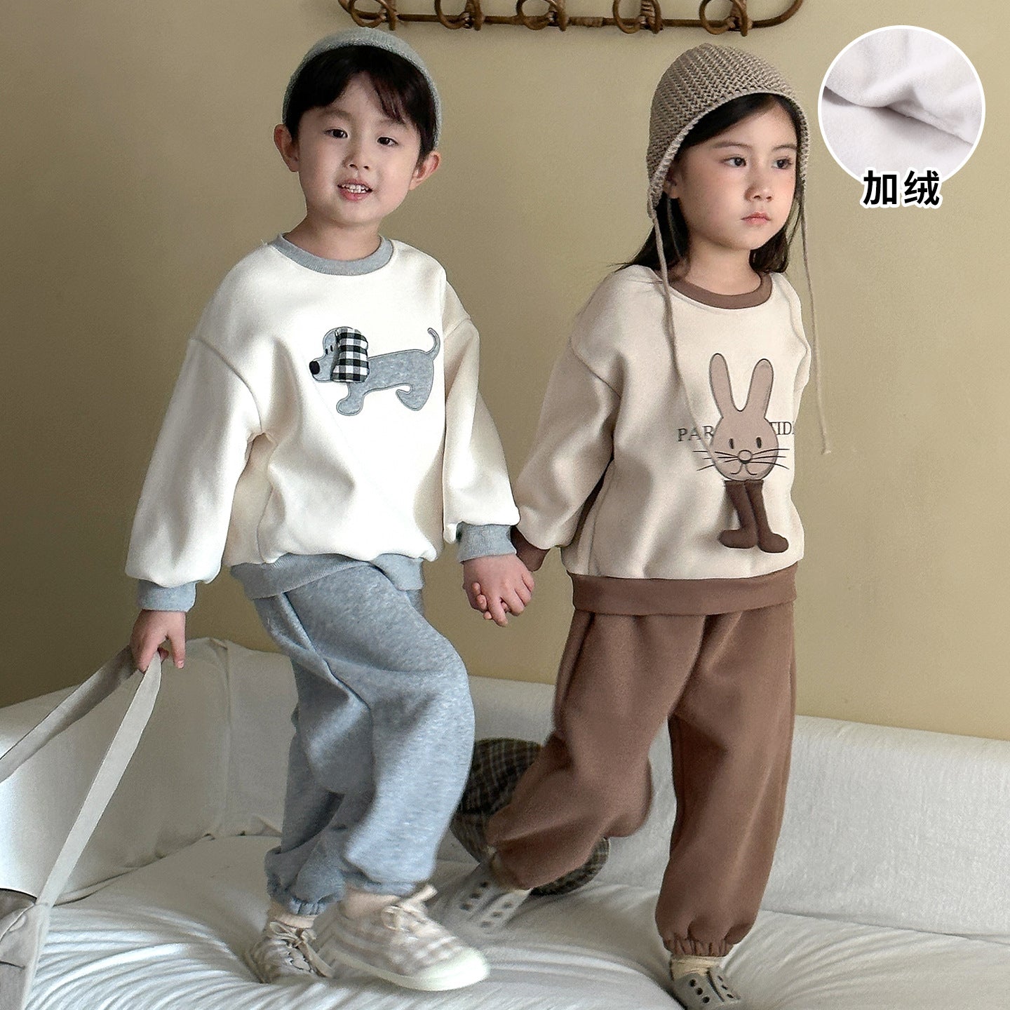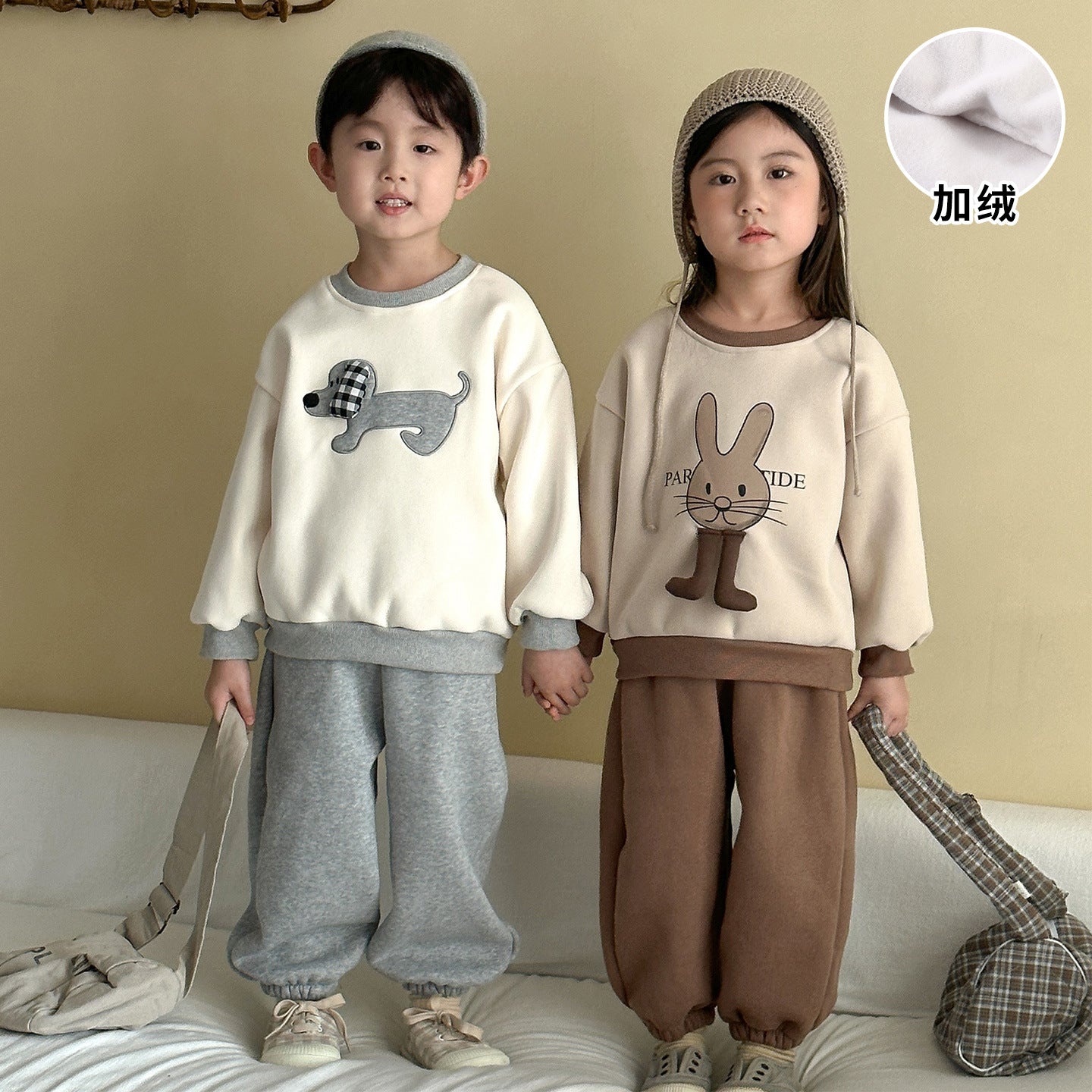 DZ250642TG-秋冬季動物拼布加絨運動兩件套裝