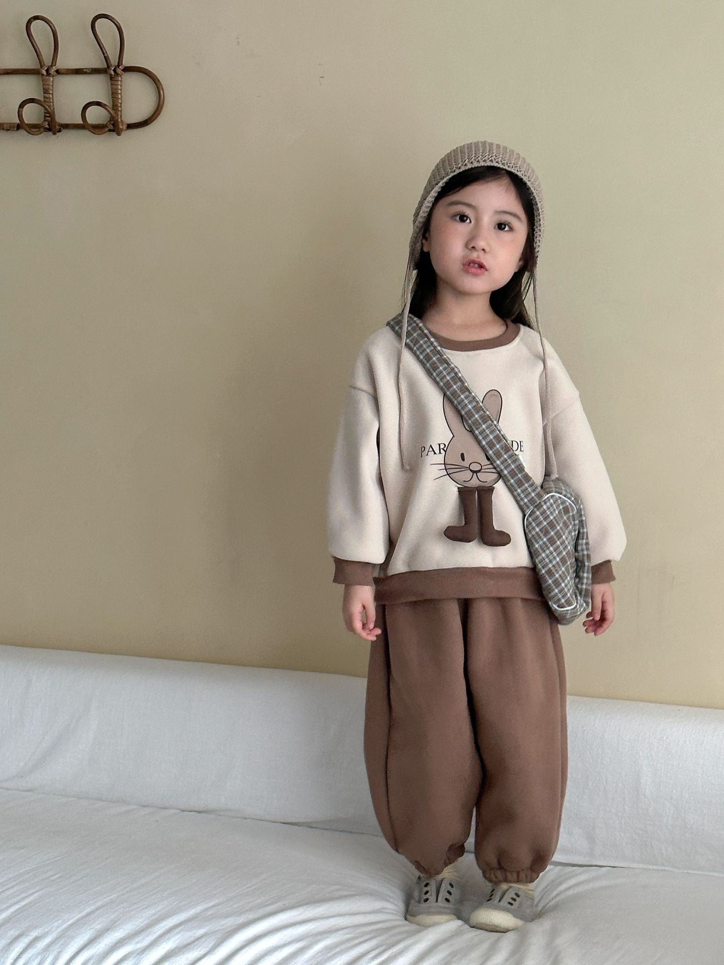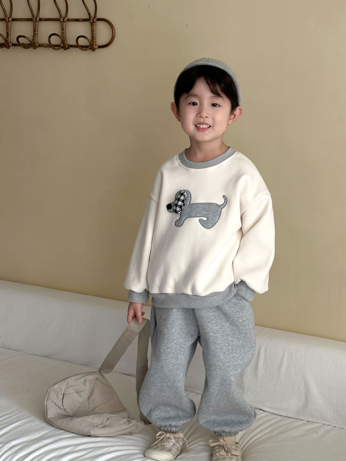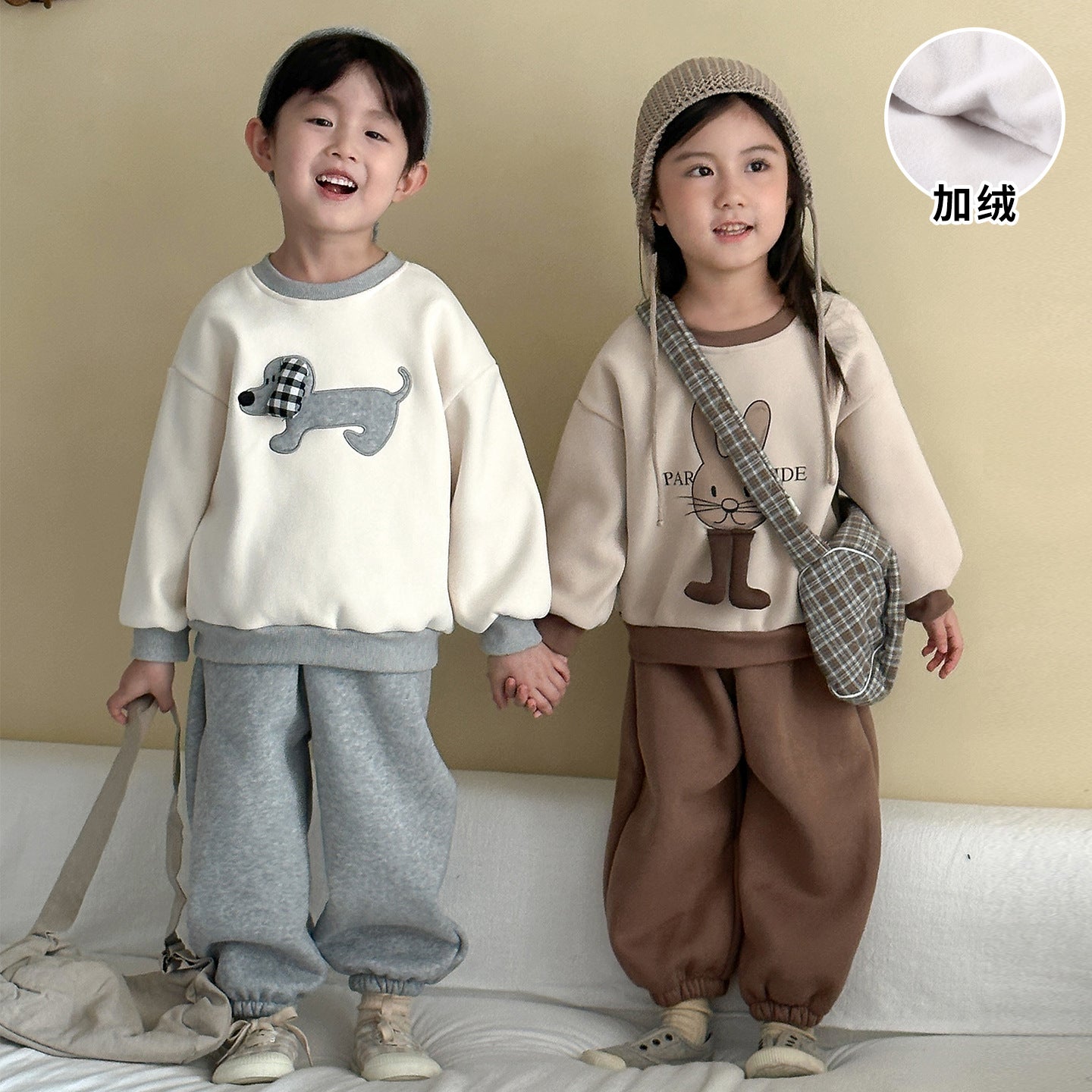 DZ250642TG-秋冬季動物拼布加絨運動兩件套裝