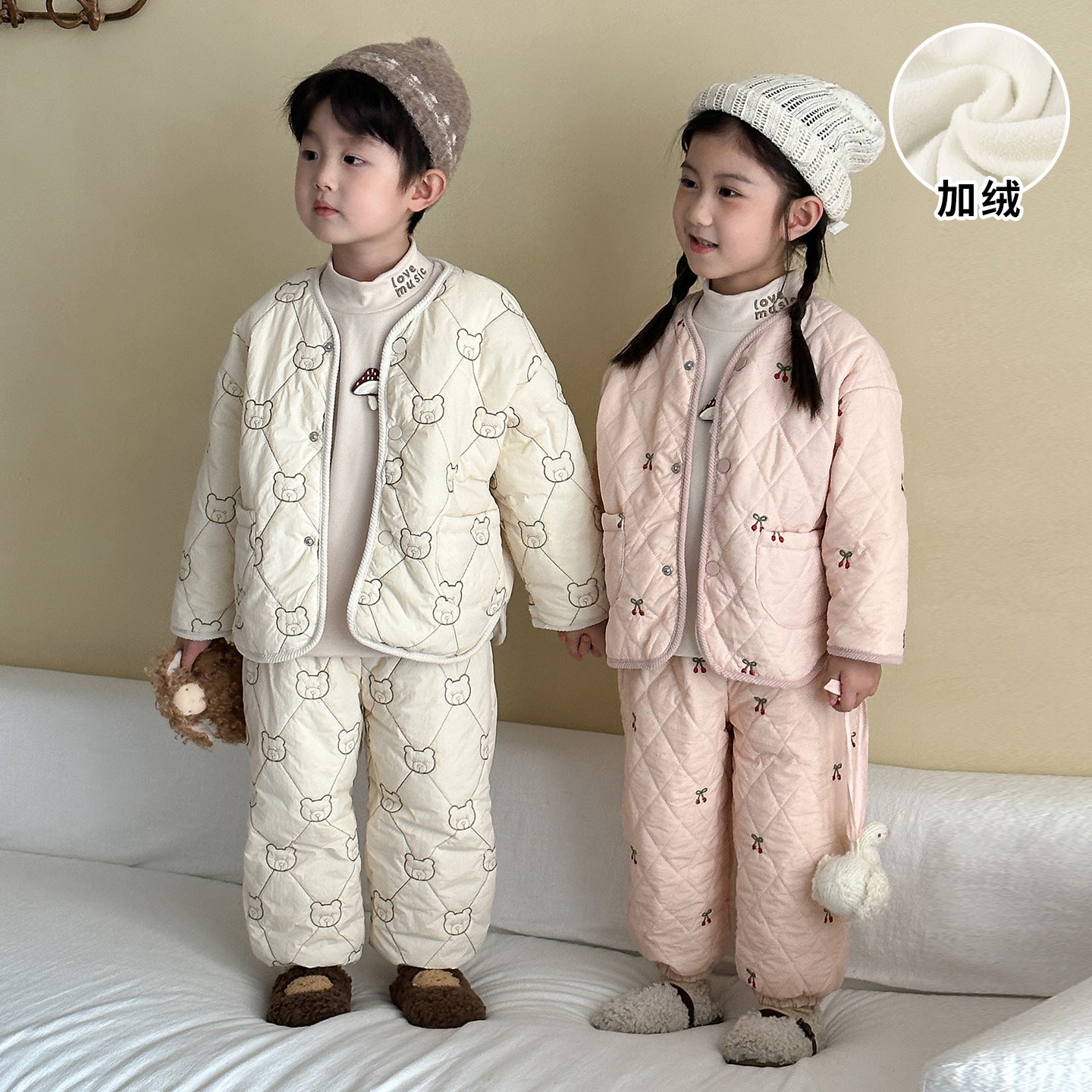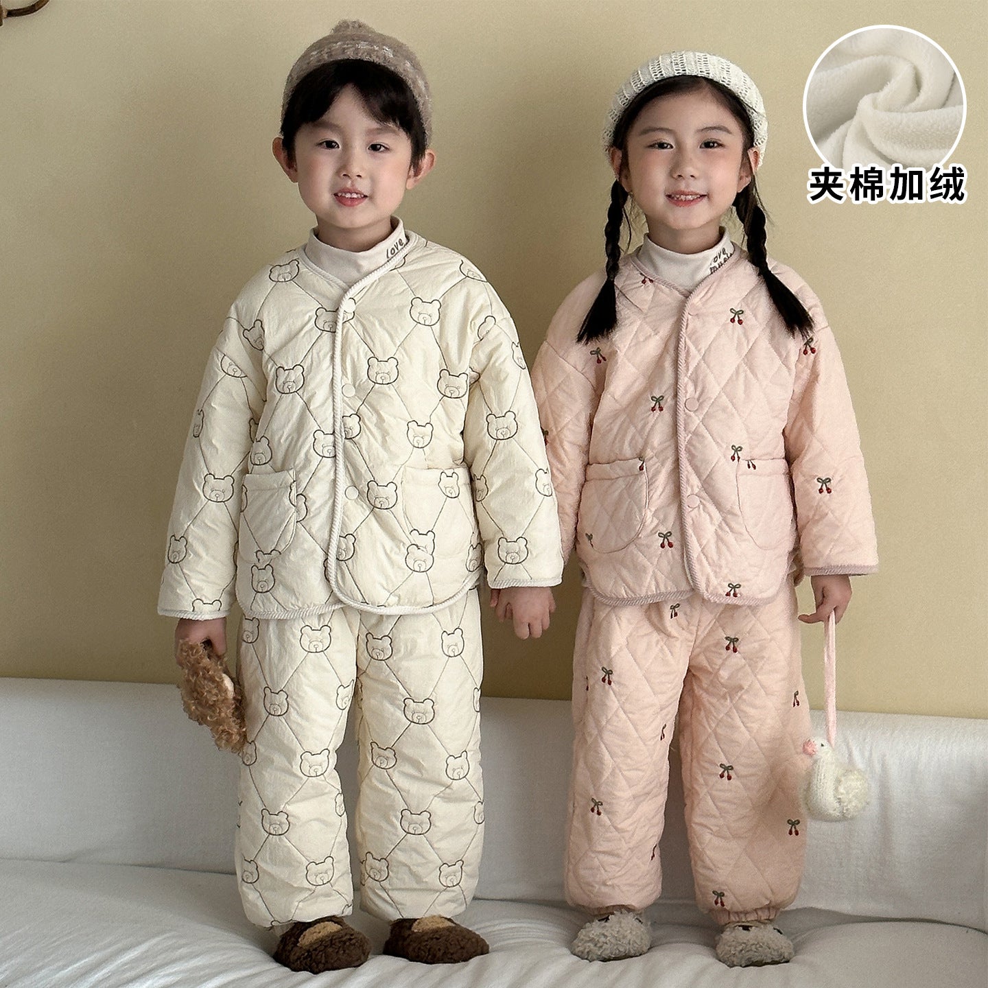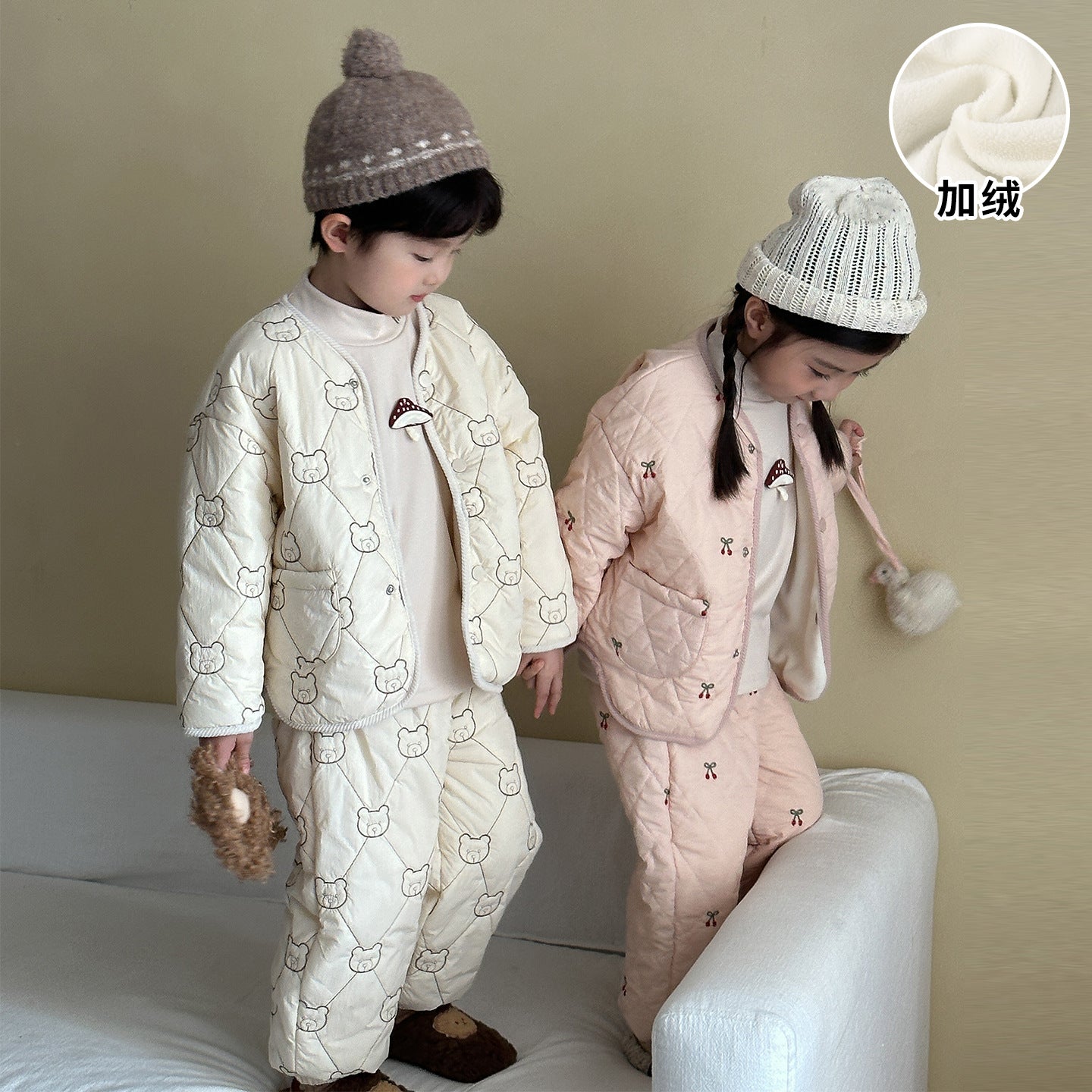 DZ250644TG-秋冬季韓版夾棉加絨開襟排扣兩件套裝