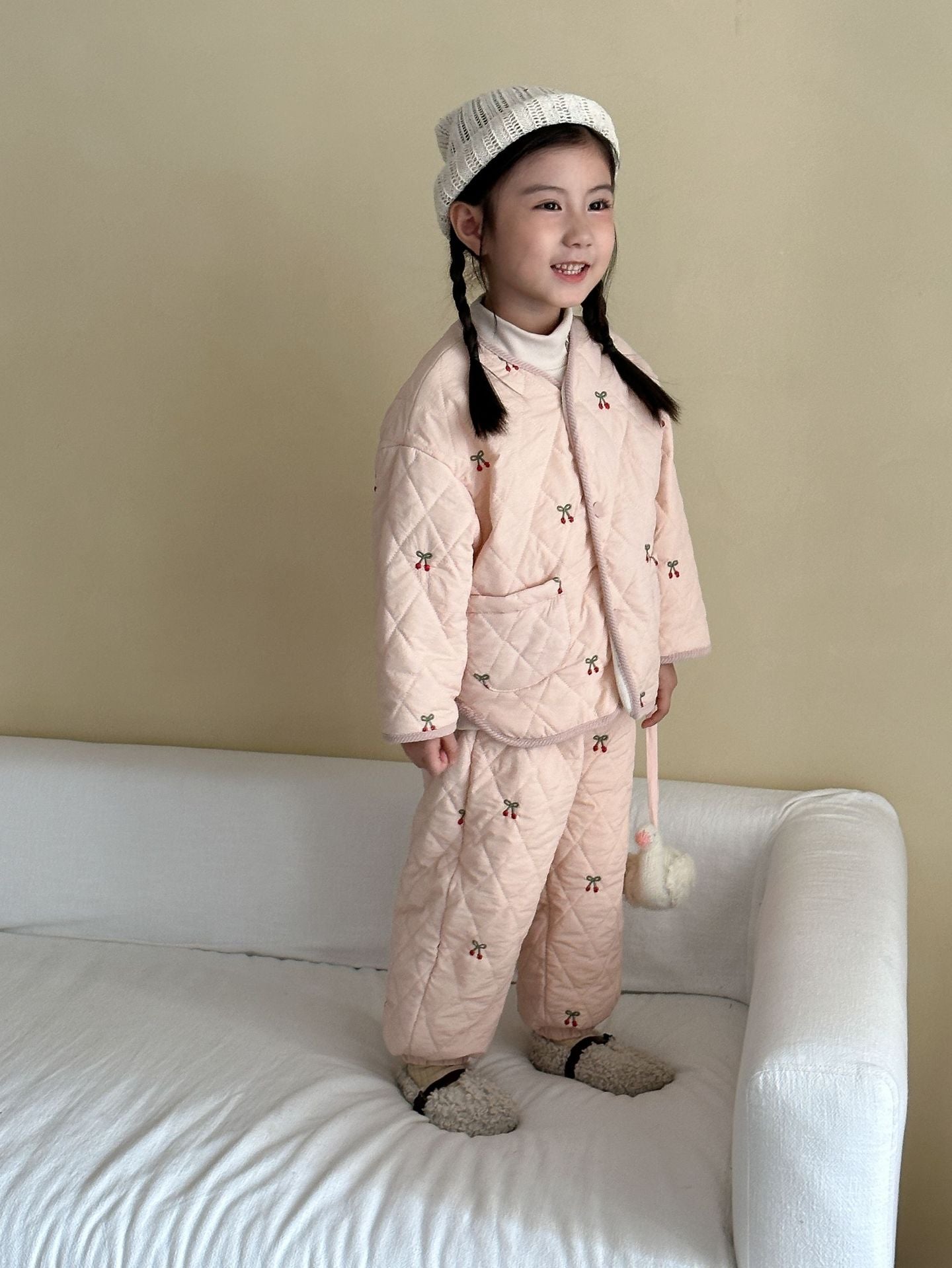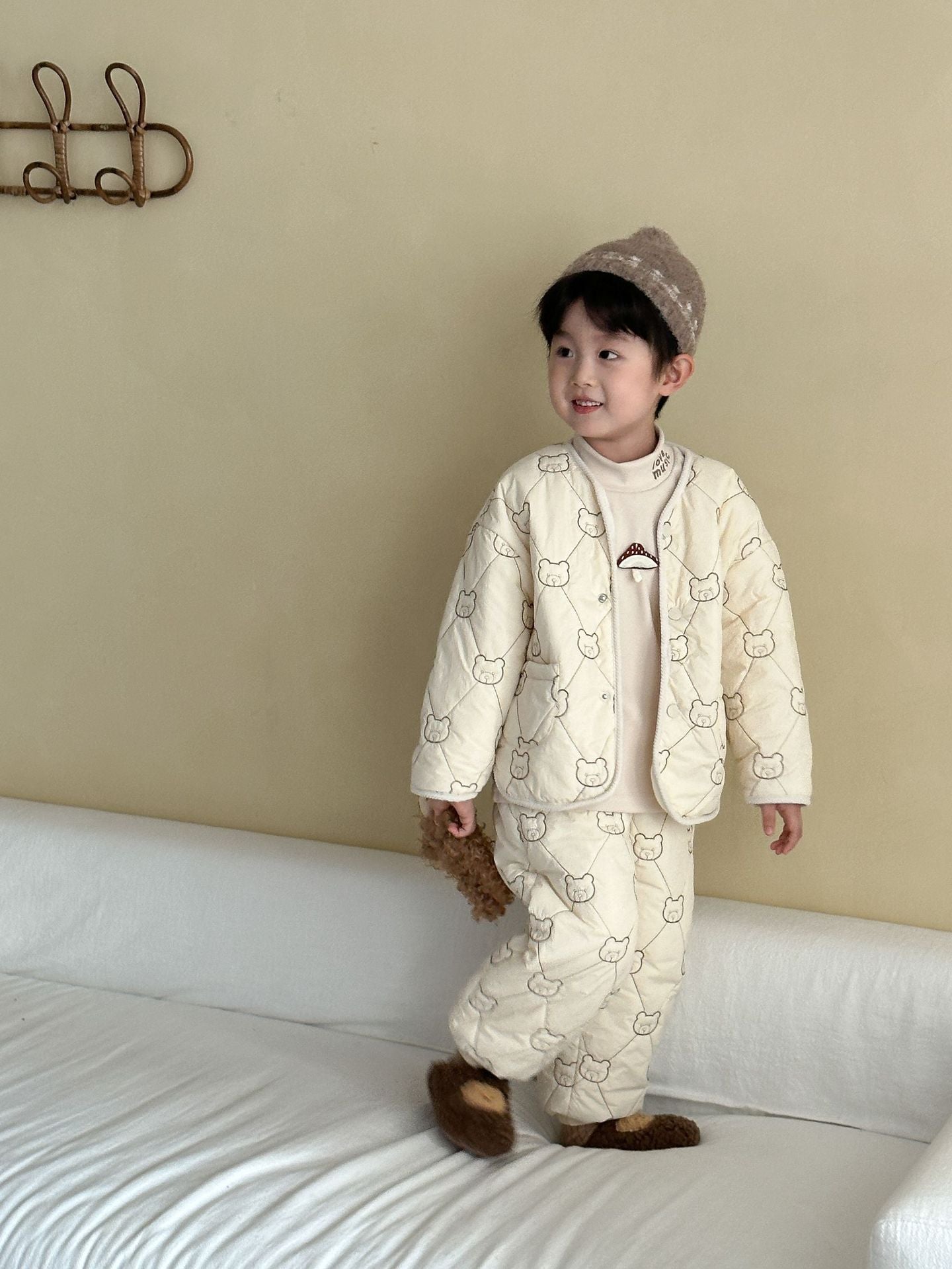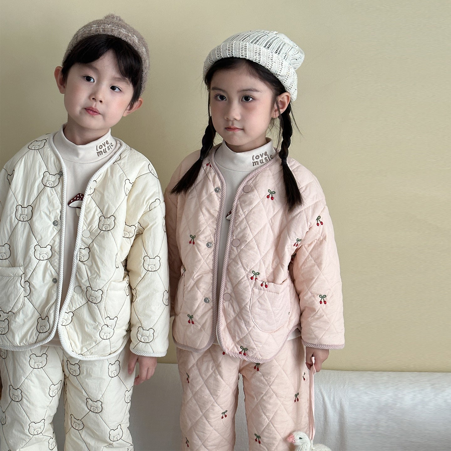 DZ250644TG-秋冬季韓版夾棉加絨開襟排扣兩件套裝