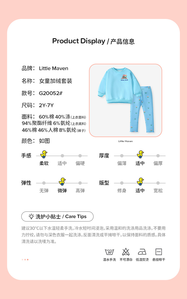 g20052TG-Autumn Plus Velvet Long Sleeve Girls Top + Trousers Set