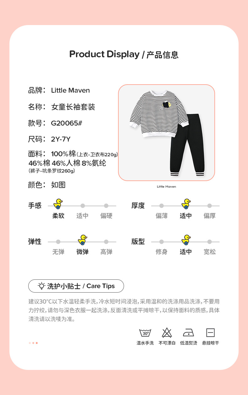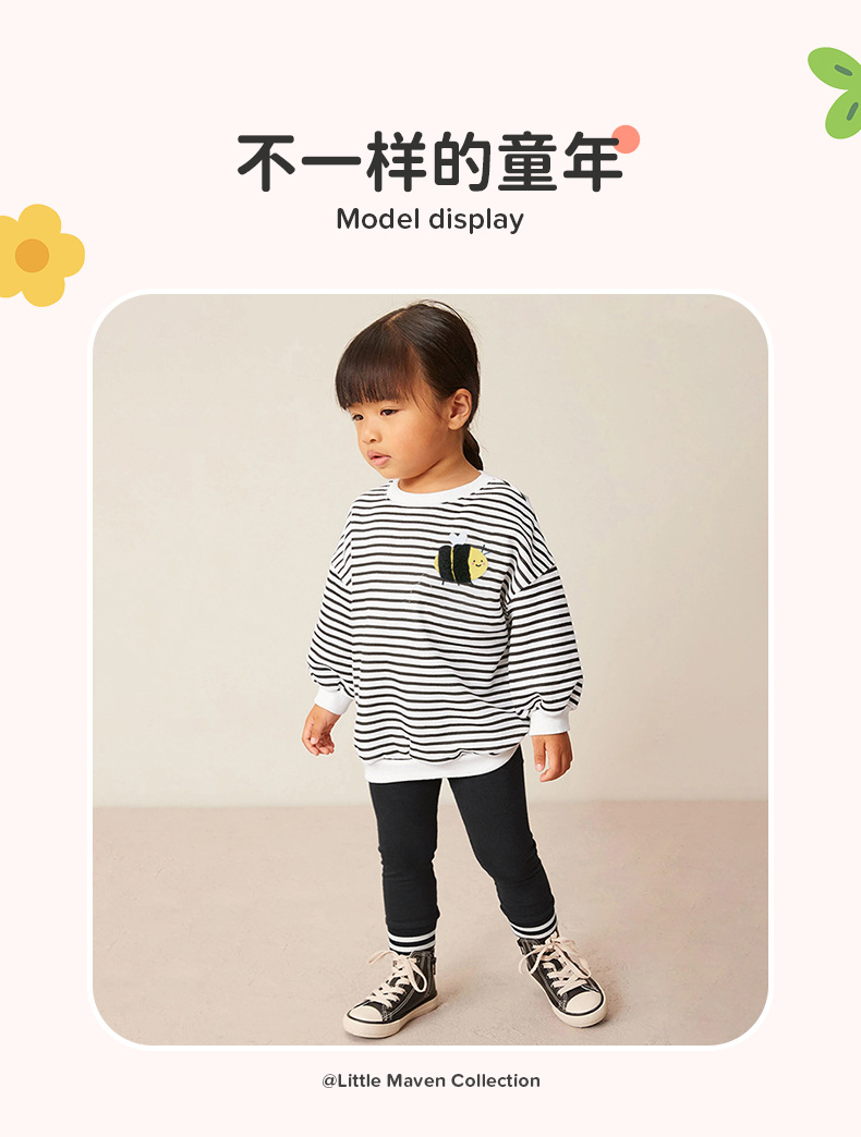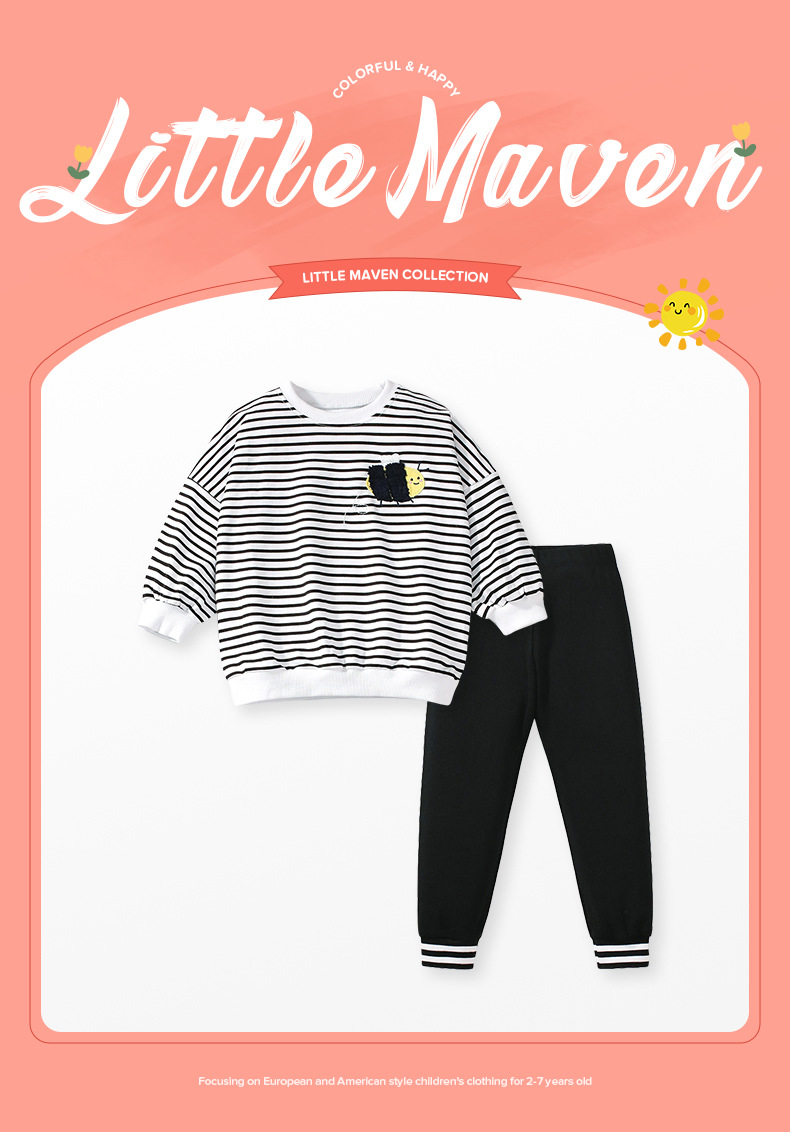 G20065TG-Autumn European and American striped long-sleeved cute bee top + trousers children's suit