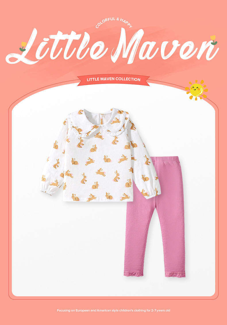 G202421TG-Autumn Animal Print Cute Long Sleeve Top + Pants Children's Set