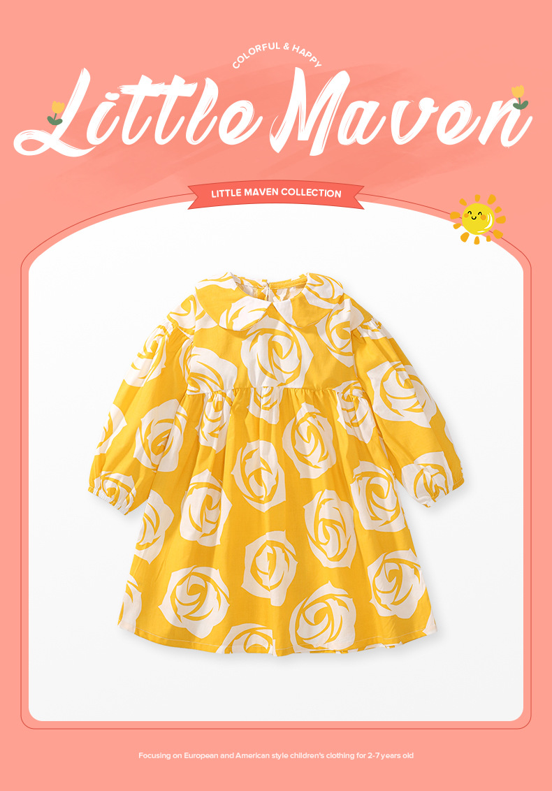 GS2001DS-Autumn Rose Long Sleeve Cotton Dress