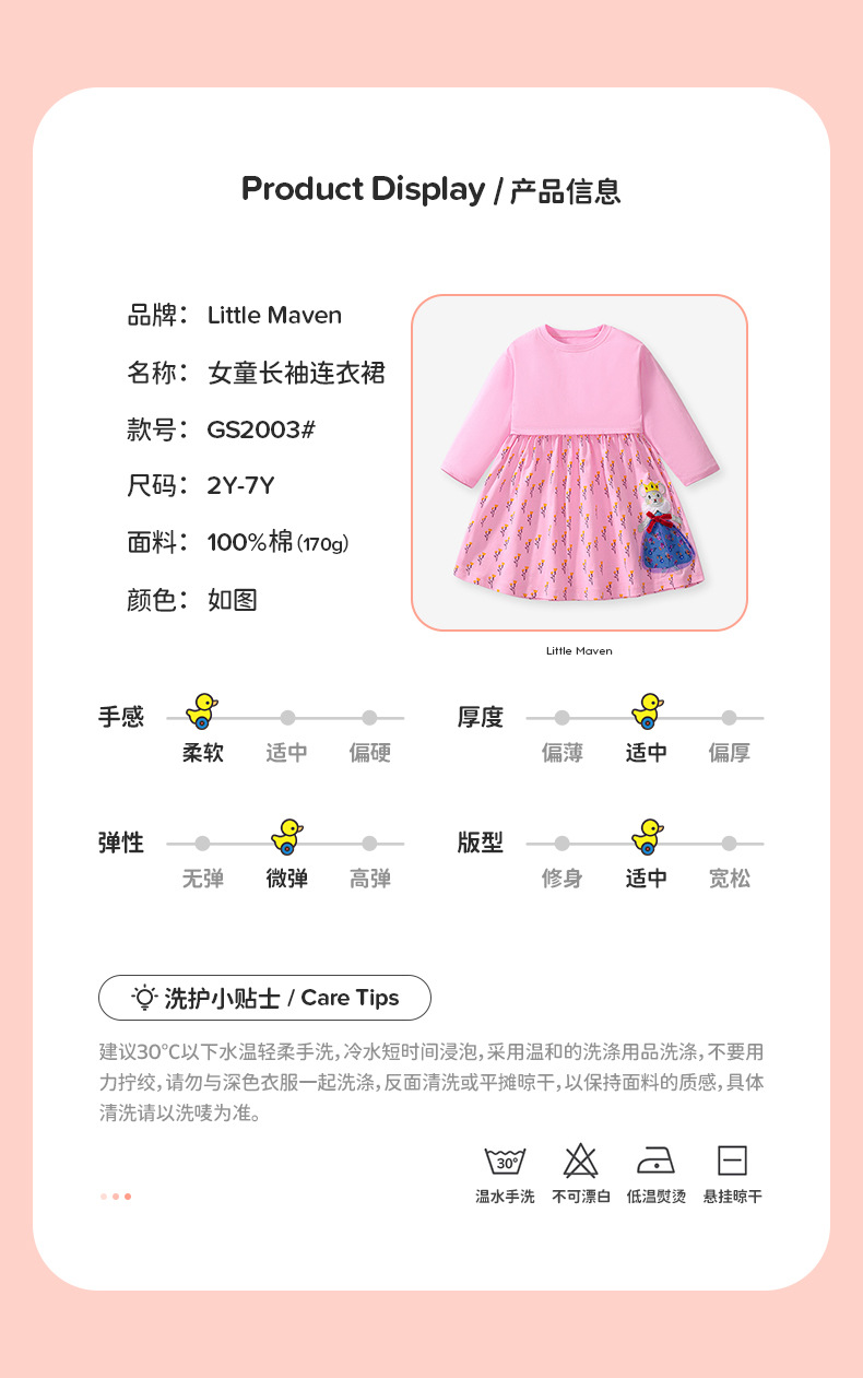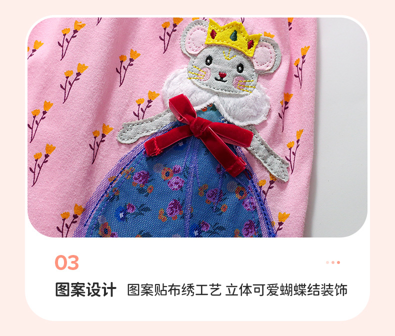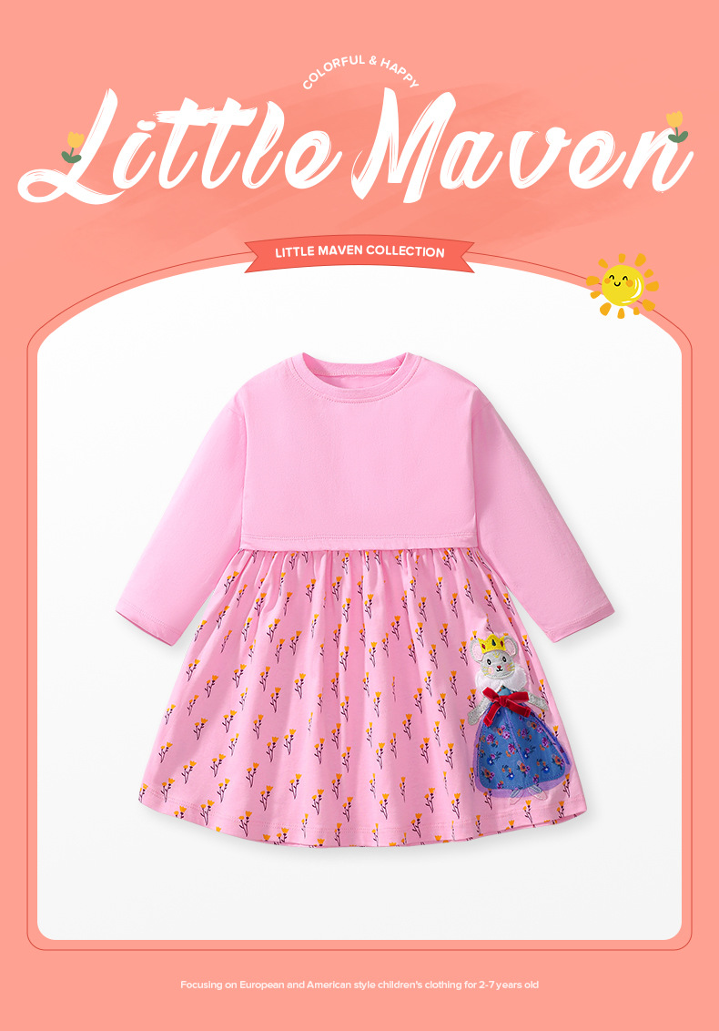 GS2003DS-Spring and Autumn Girls Cotton Applique Embroidery Long Sleeve Princess Dress