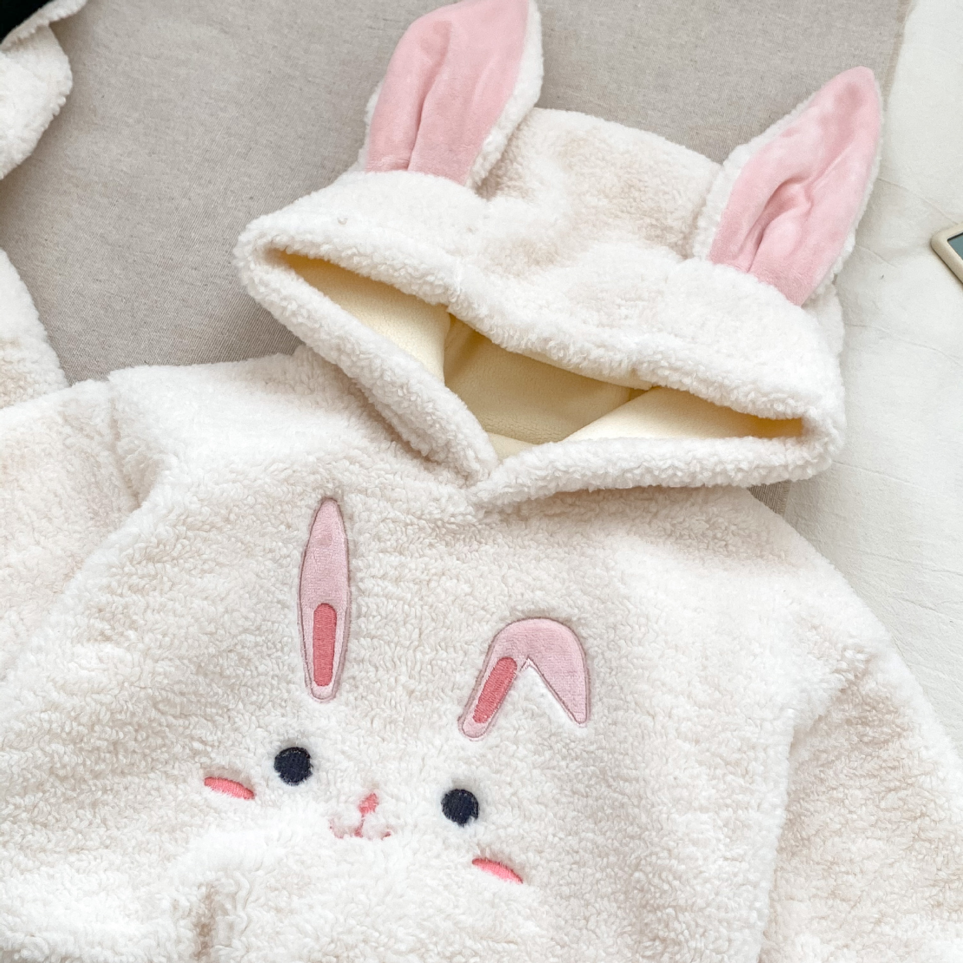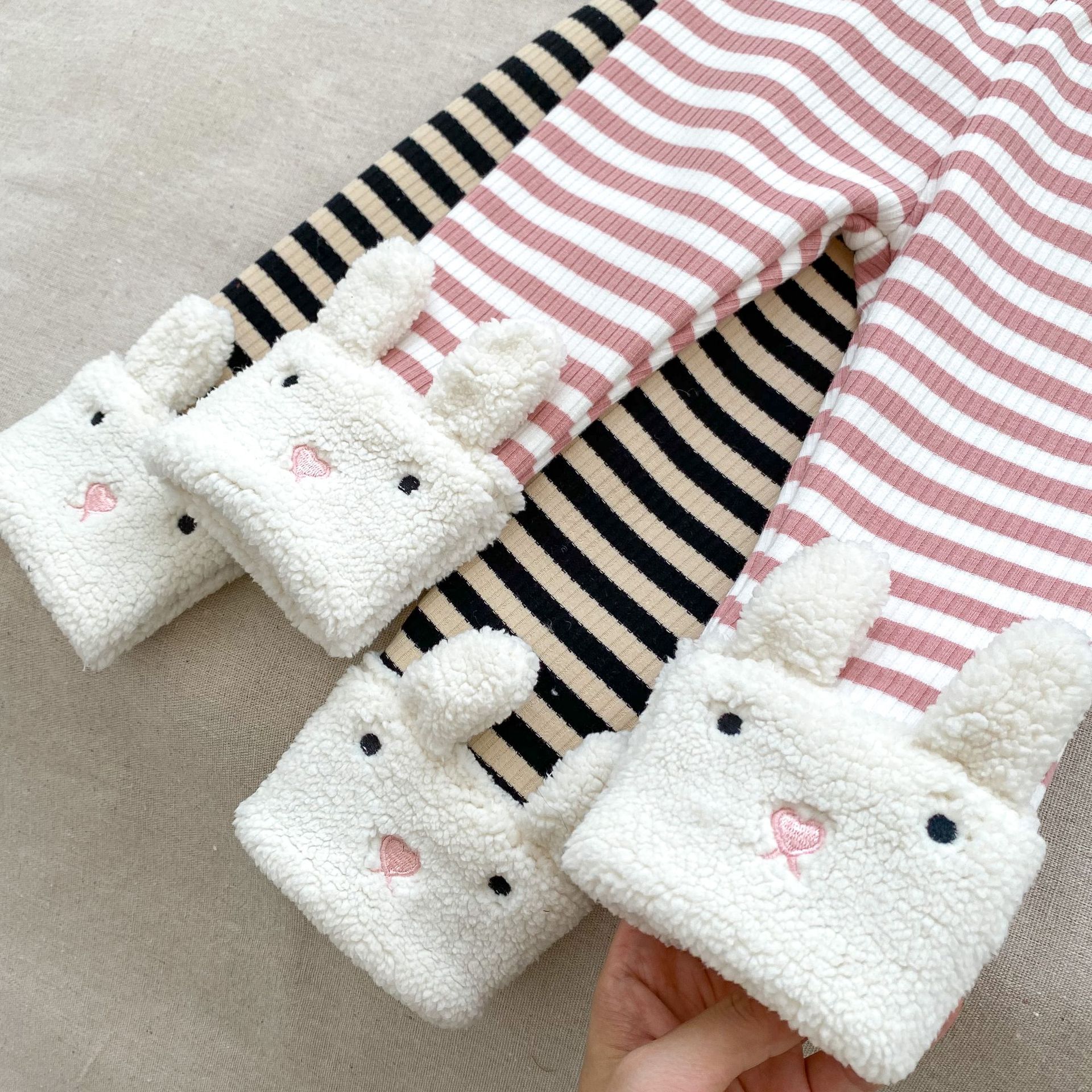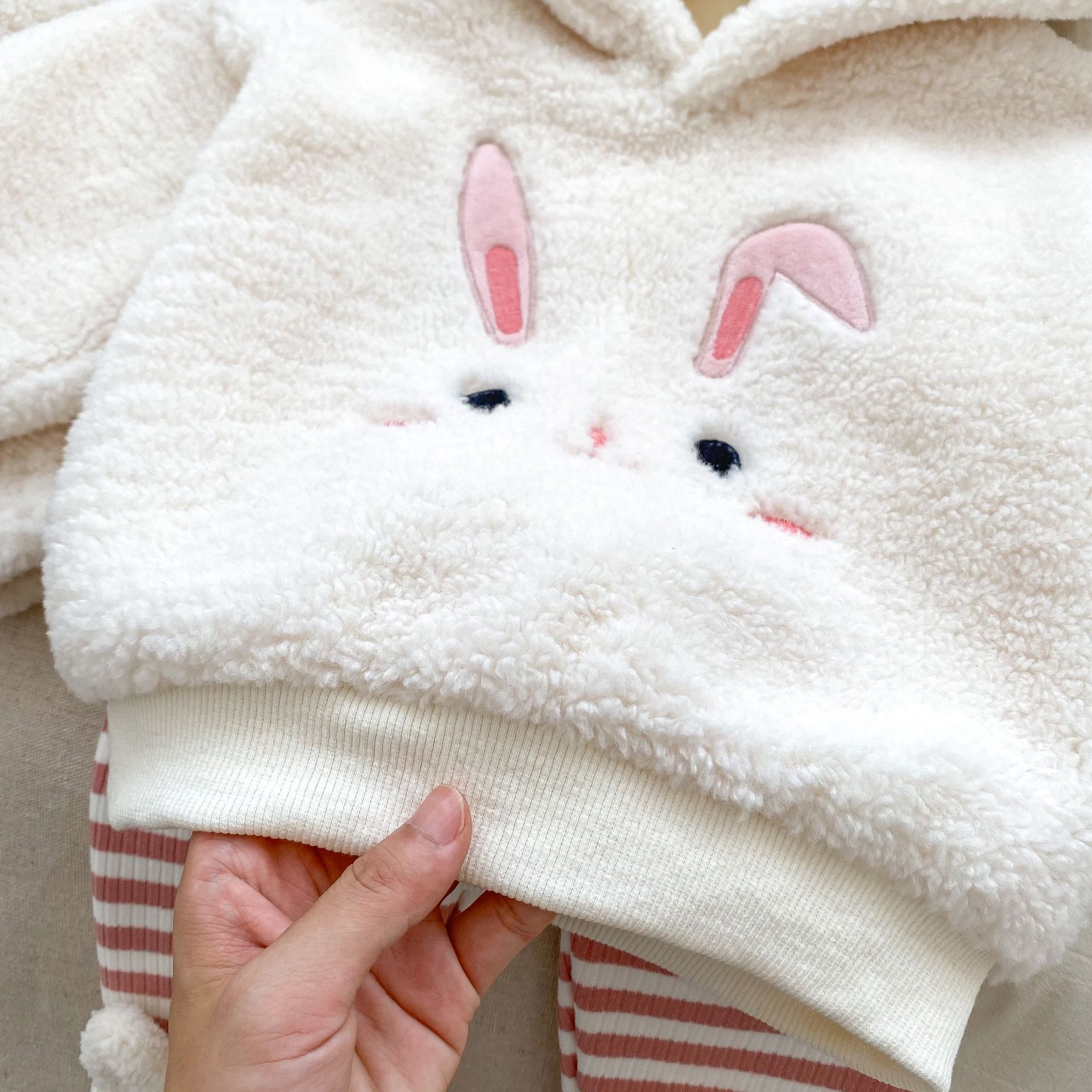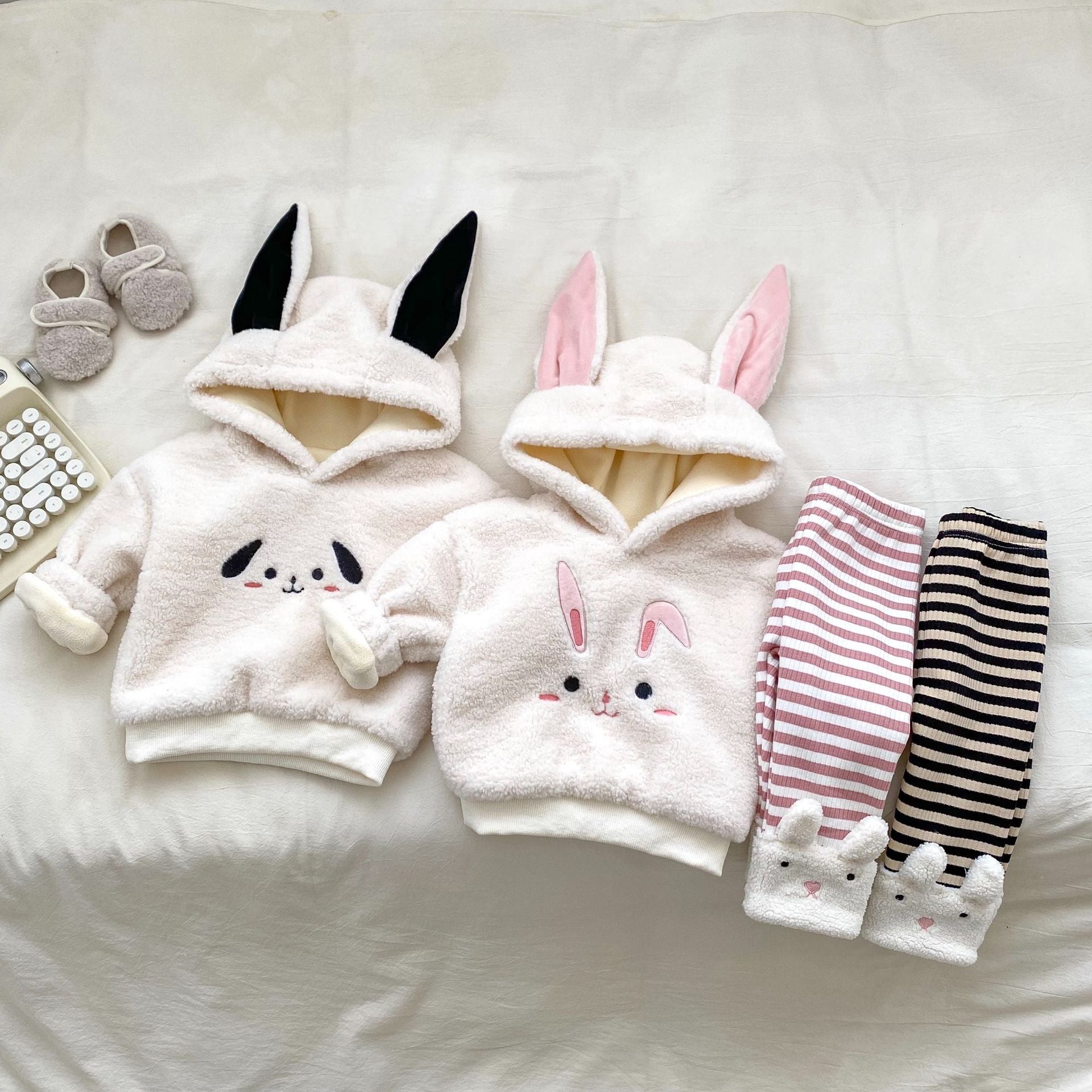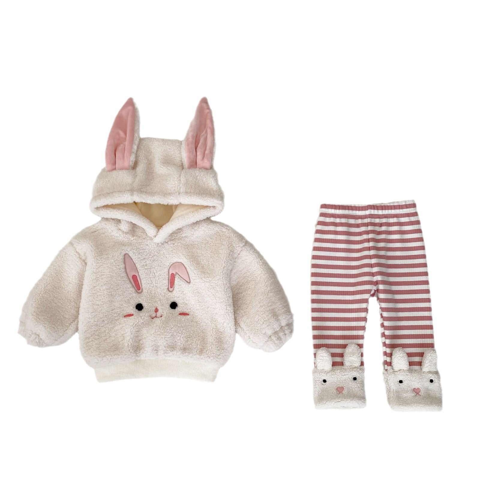H10292TG-冬季卡通連帽加絨上衣&條紋褲