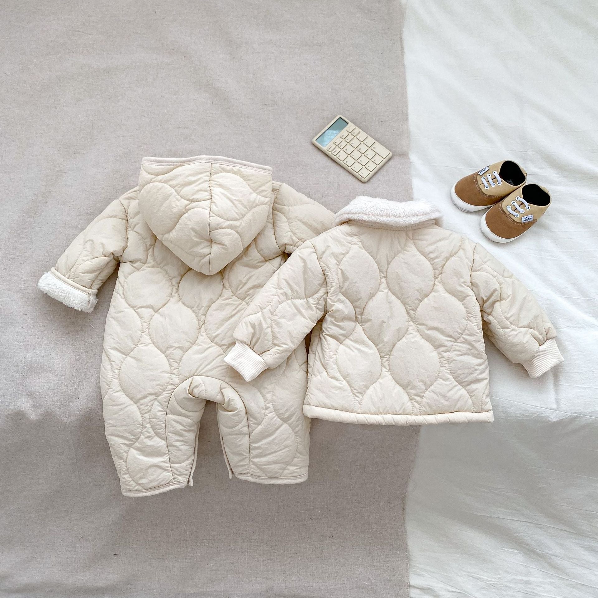 H10336TG-冬季菱格壓紋夾棉加絨連體爬服&外套