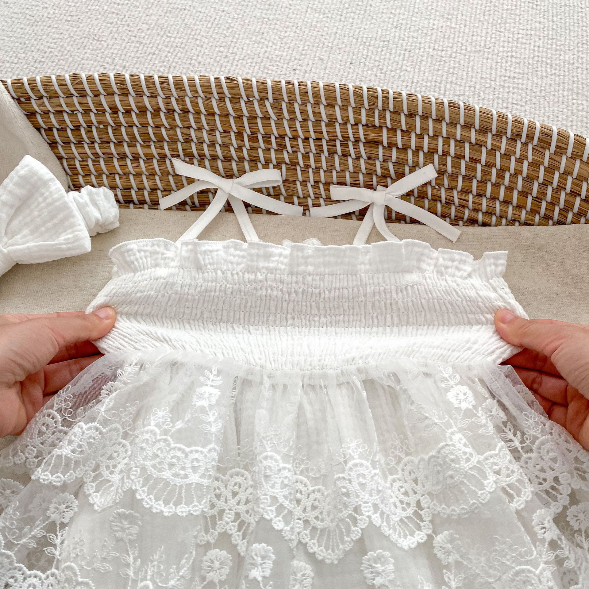 H10390DS-夏季超仙網紗吊帶公主包屁裙送髮帶