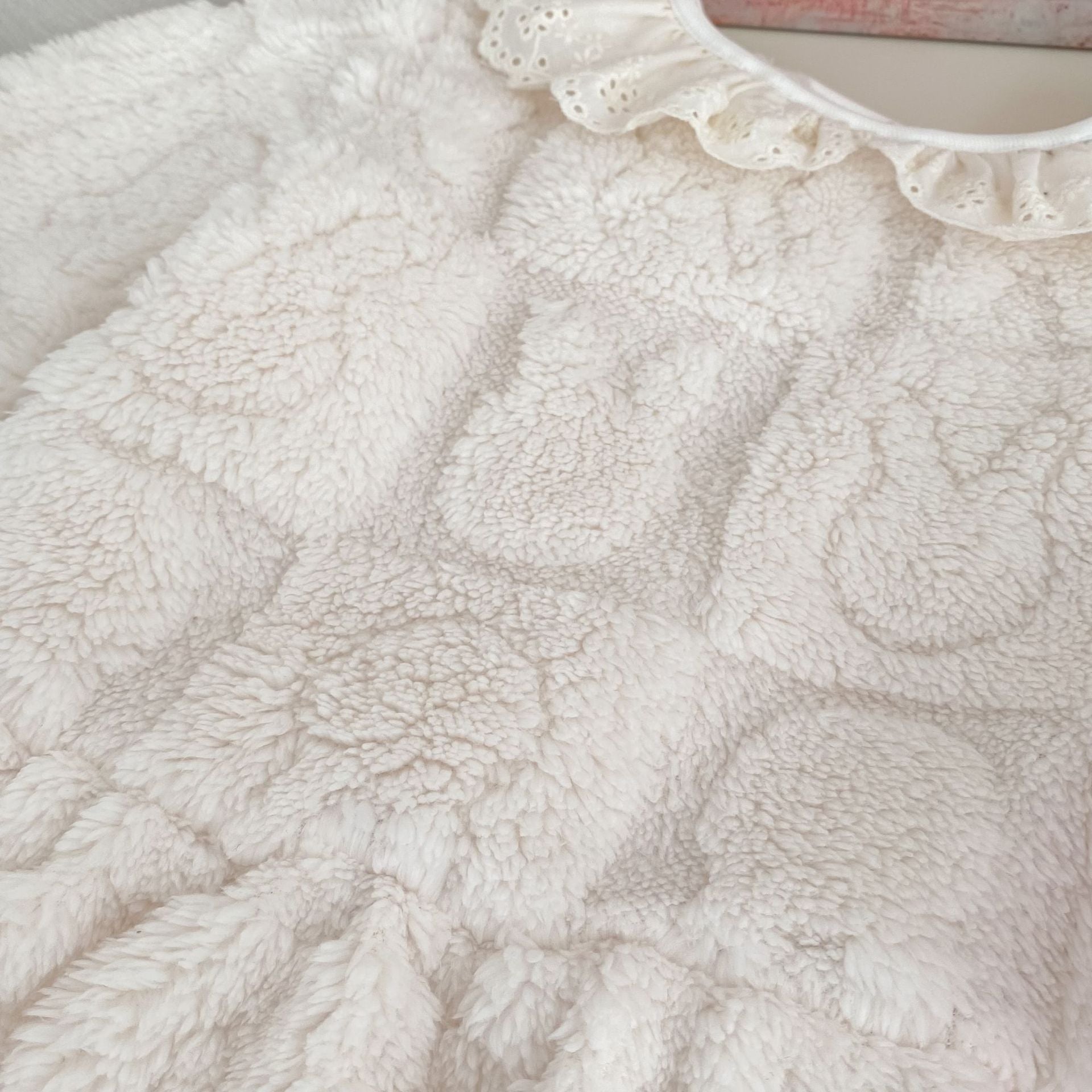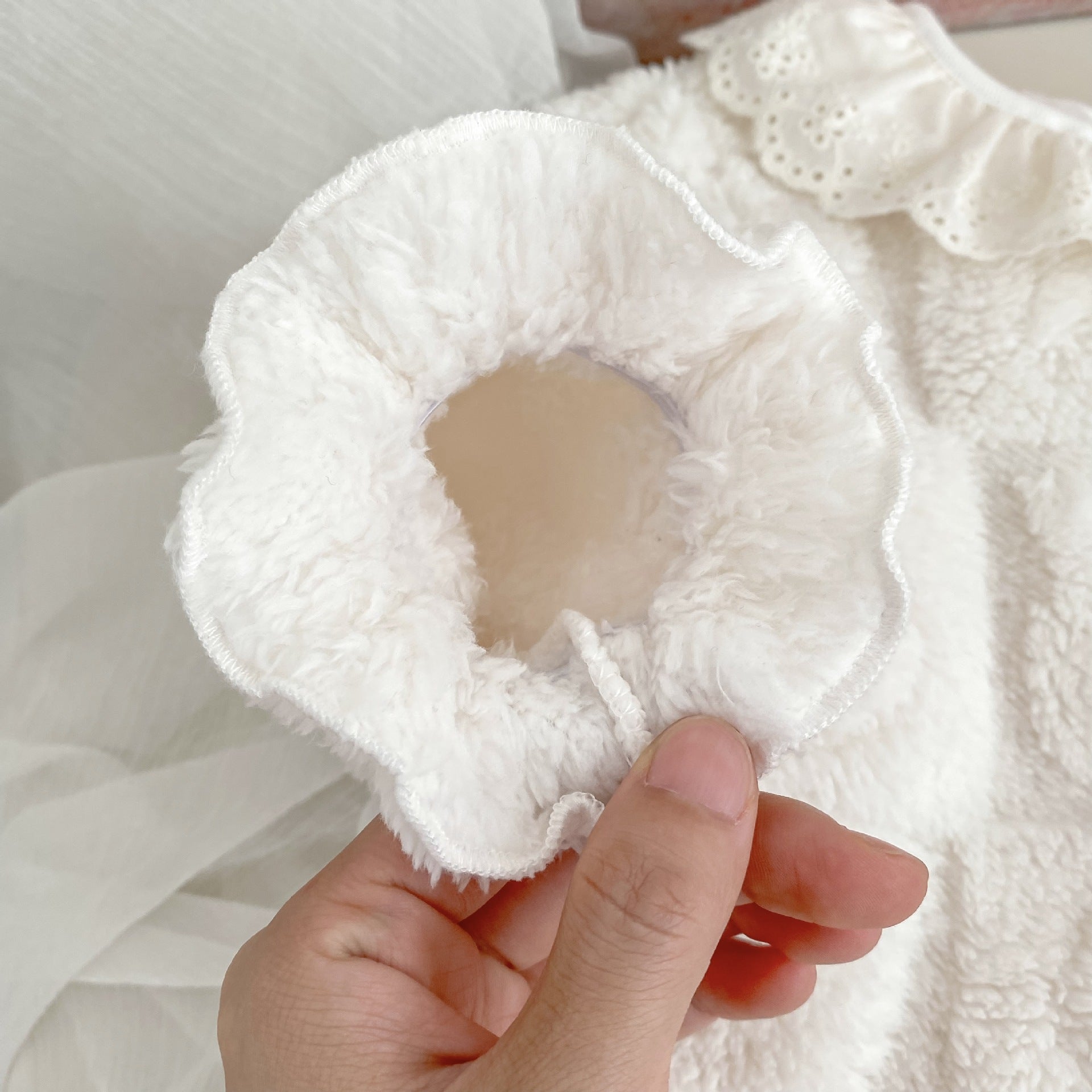 H10603TG-冬季兔子加絨花邊領珊瑚絨縮口家居兩件套裝