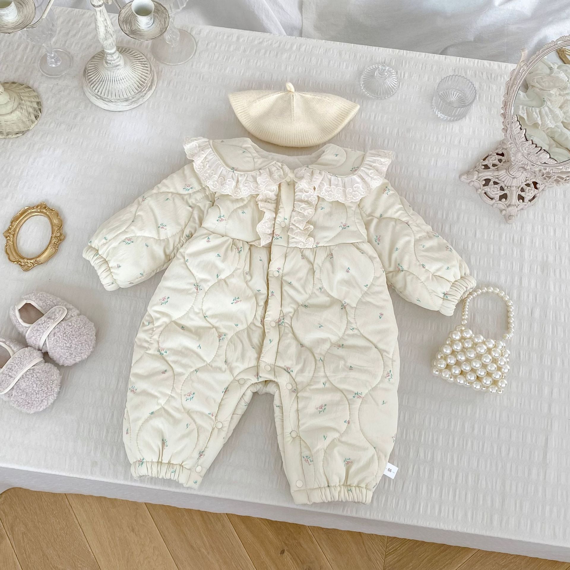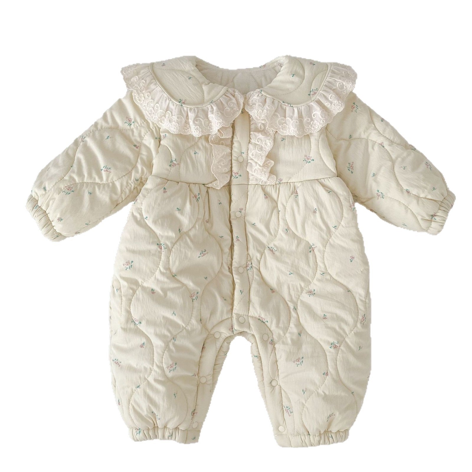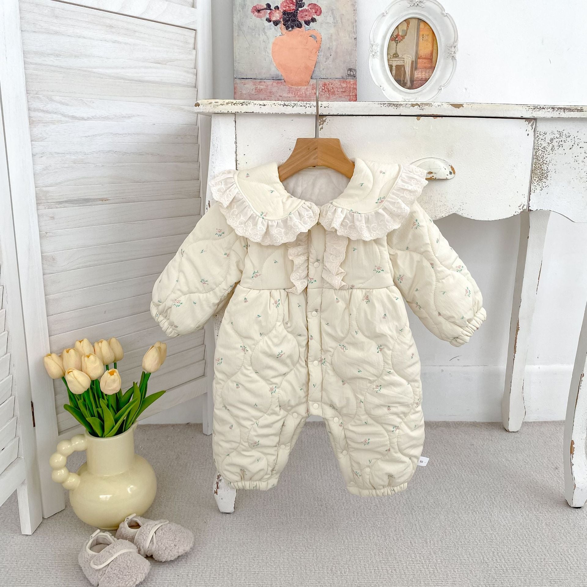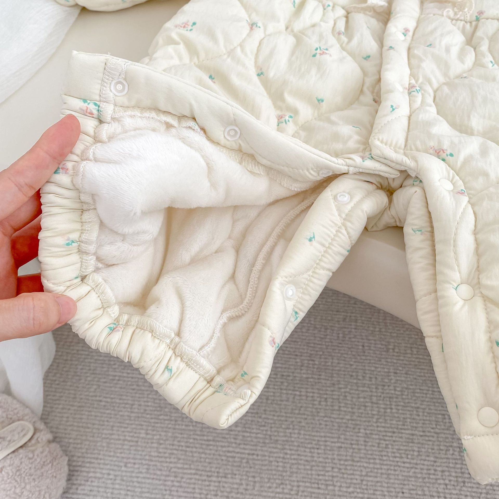 H10636LS-冬季碎花翻領加絨連體爬服(加厚)