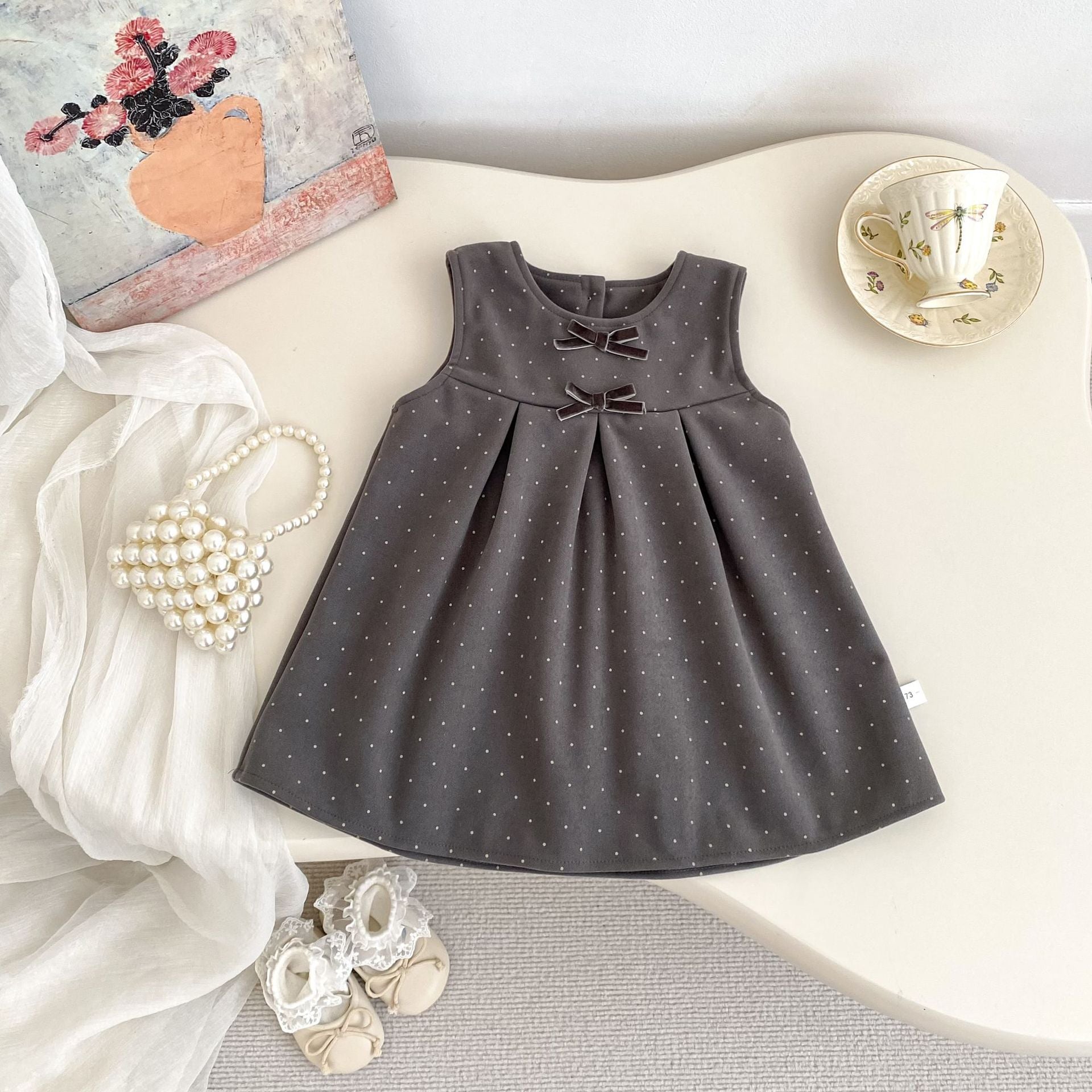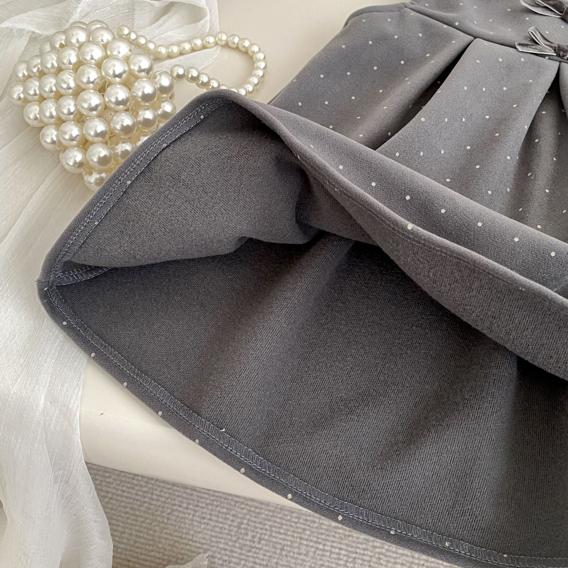 H10659LS-冬季波點加絨背心裙&刷絨上衣