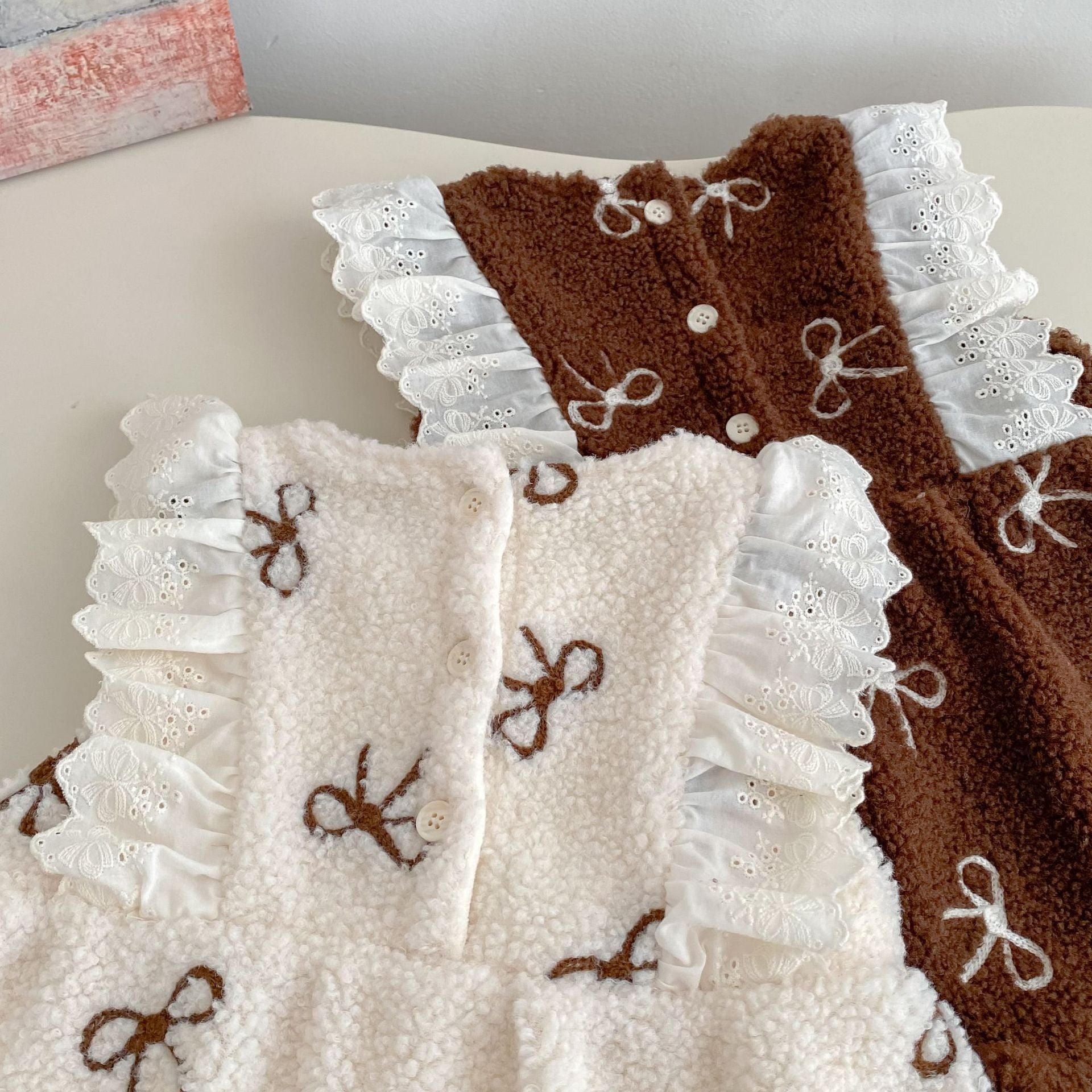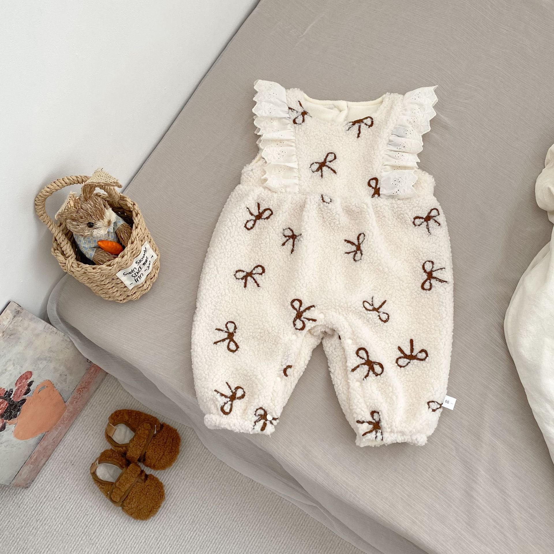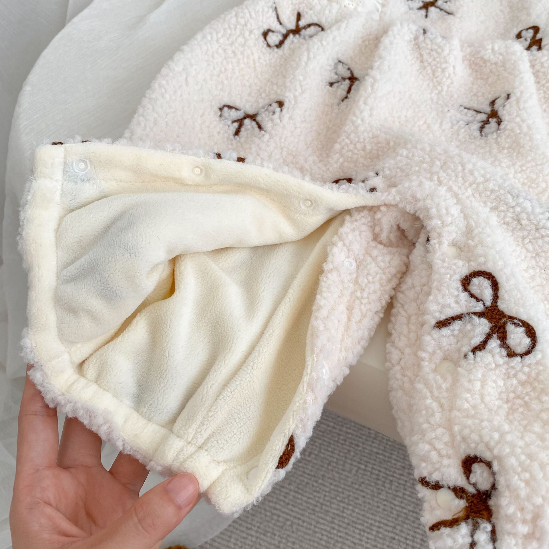 H10667LS-冬季蝴蝶結羊羔絨連體爬服&刷絨上衣