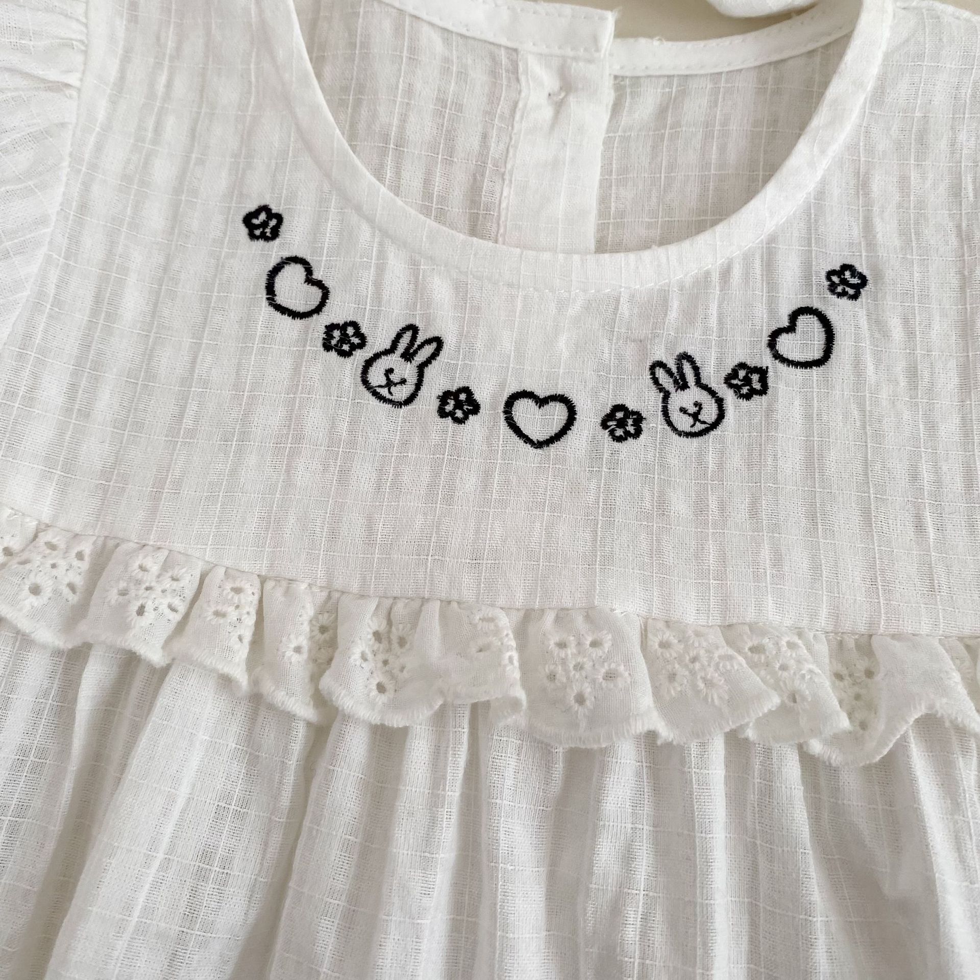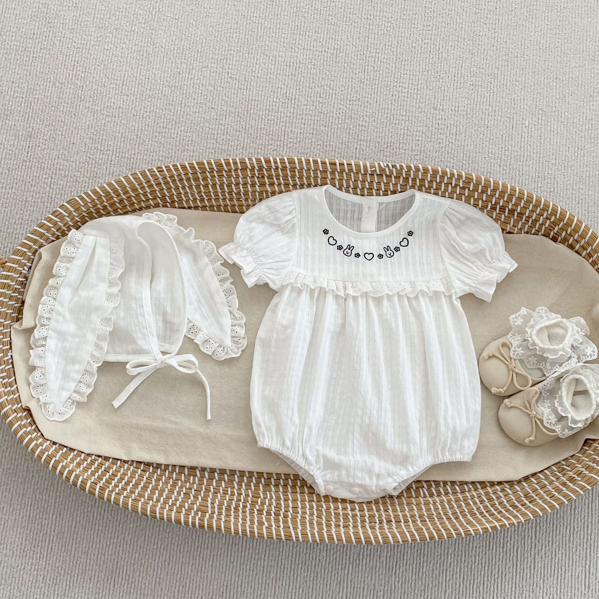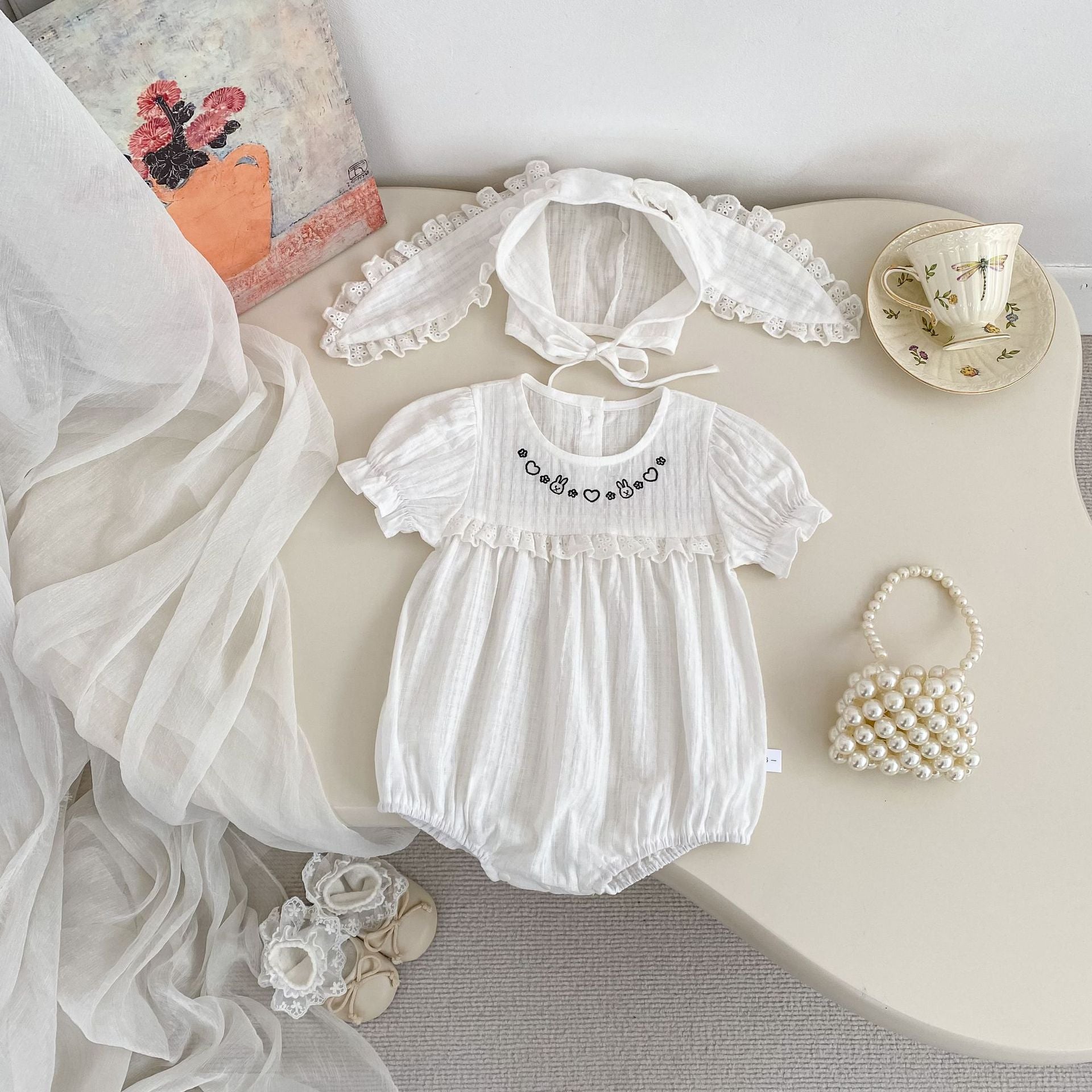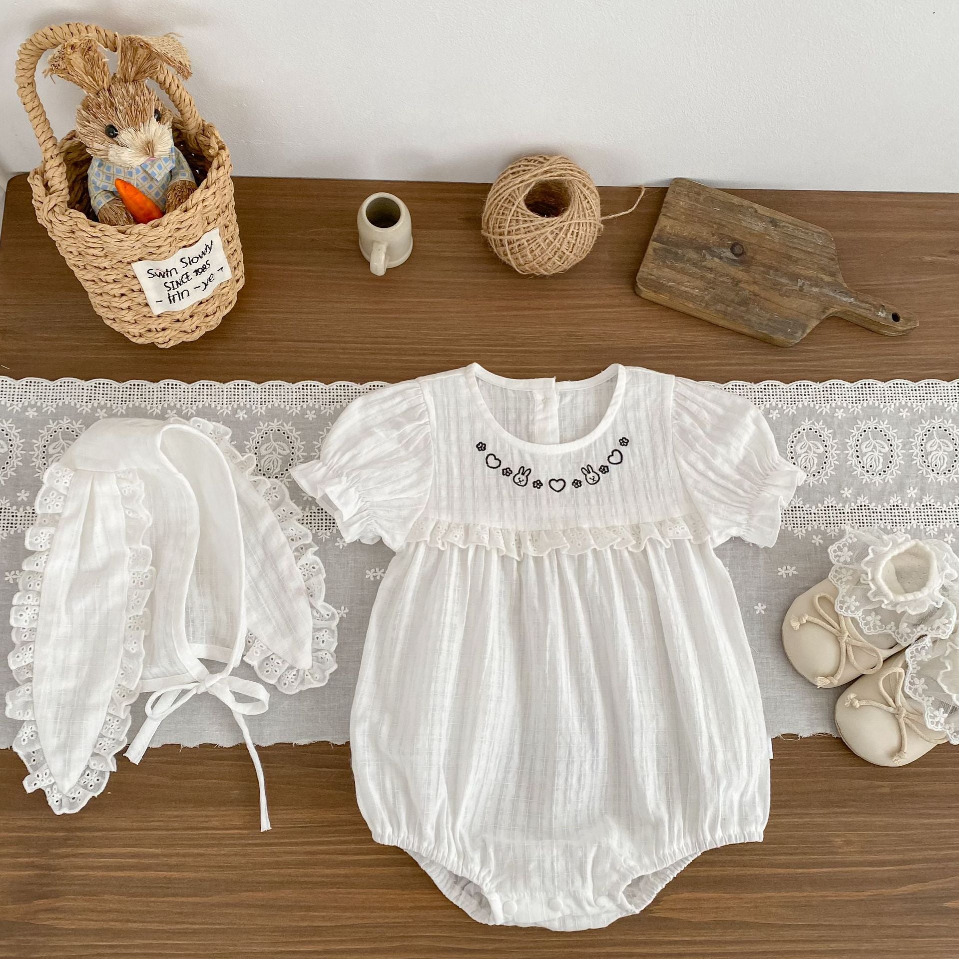 H10769LS-夏季|兔子刺繡|短袖包屁衣