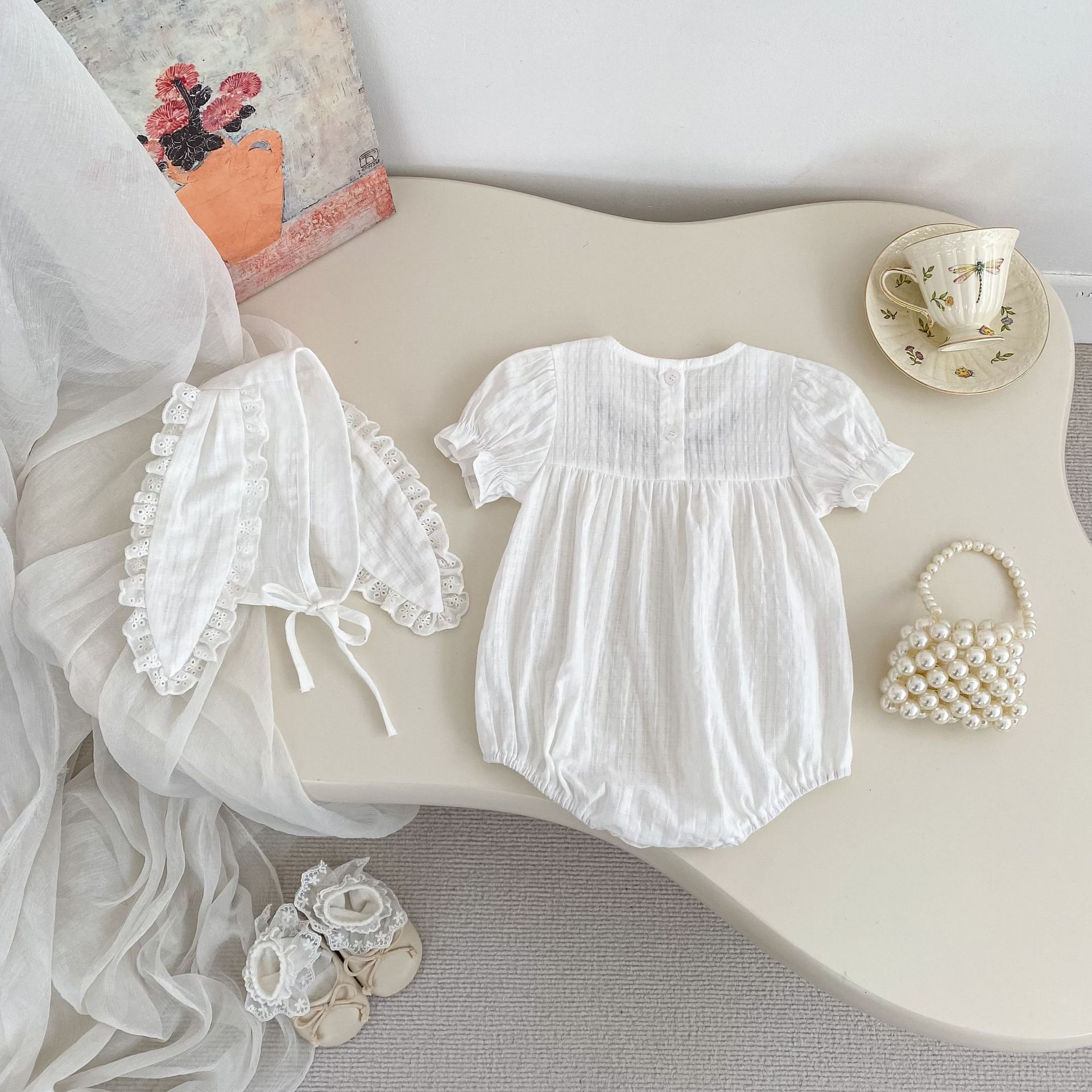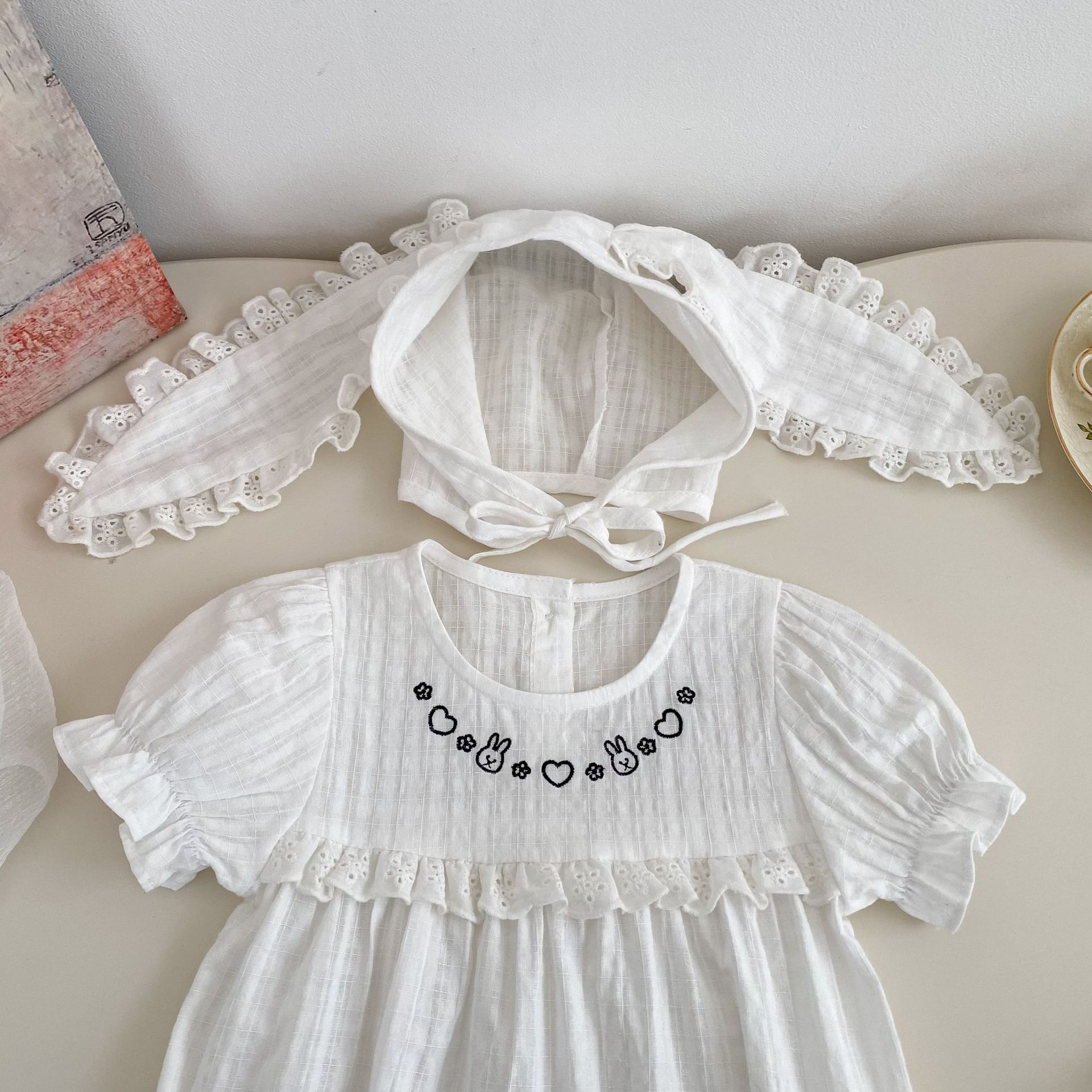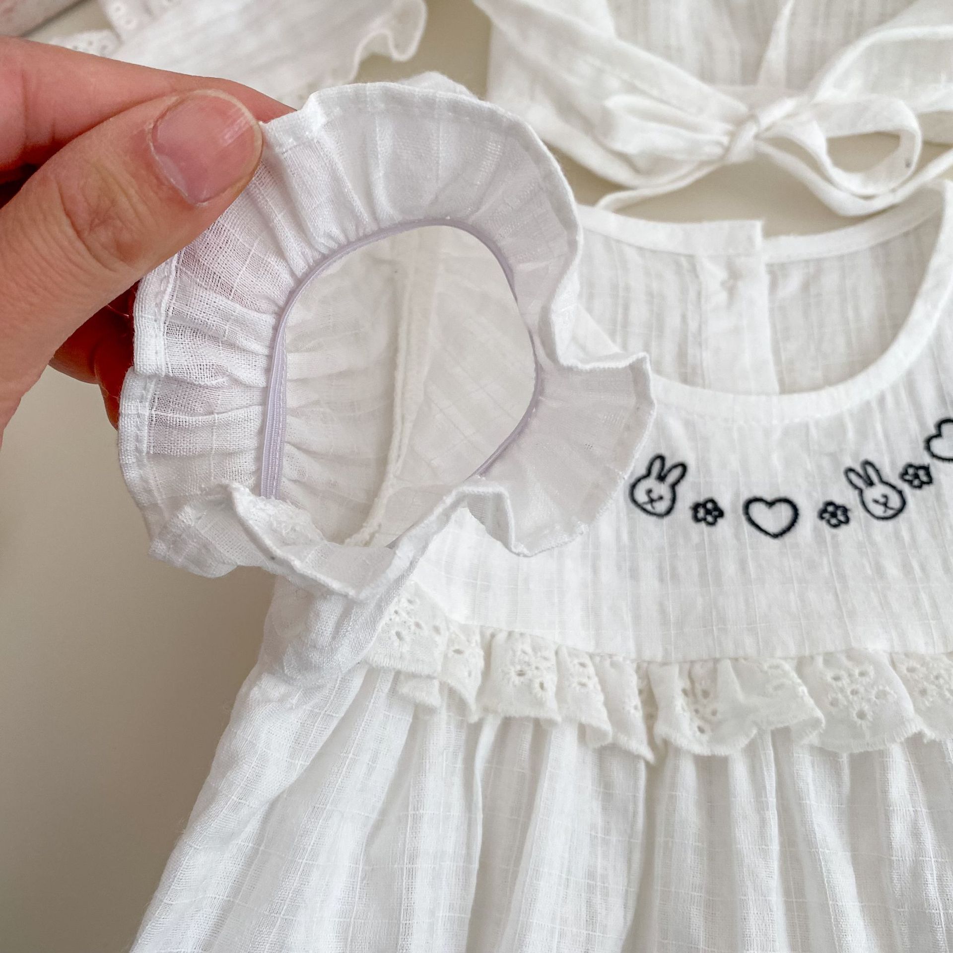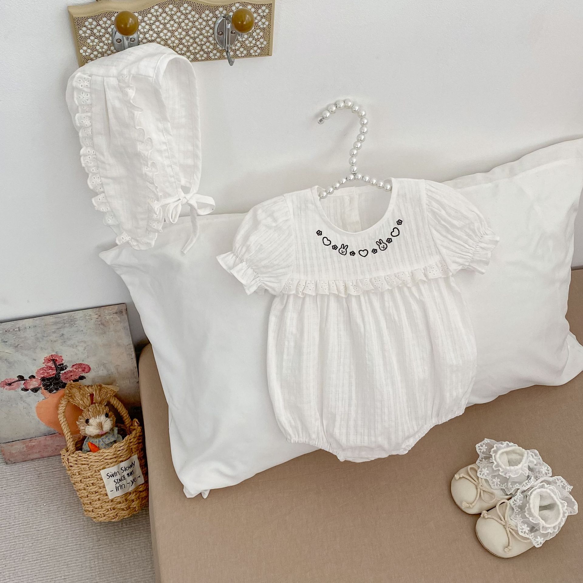 H10769LS-夏季|兔子刺繡|短袖包屁衣