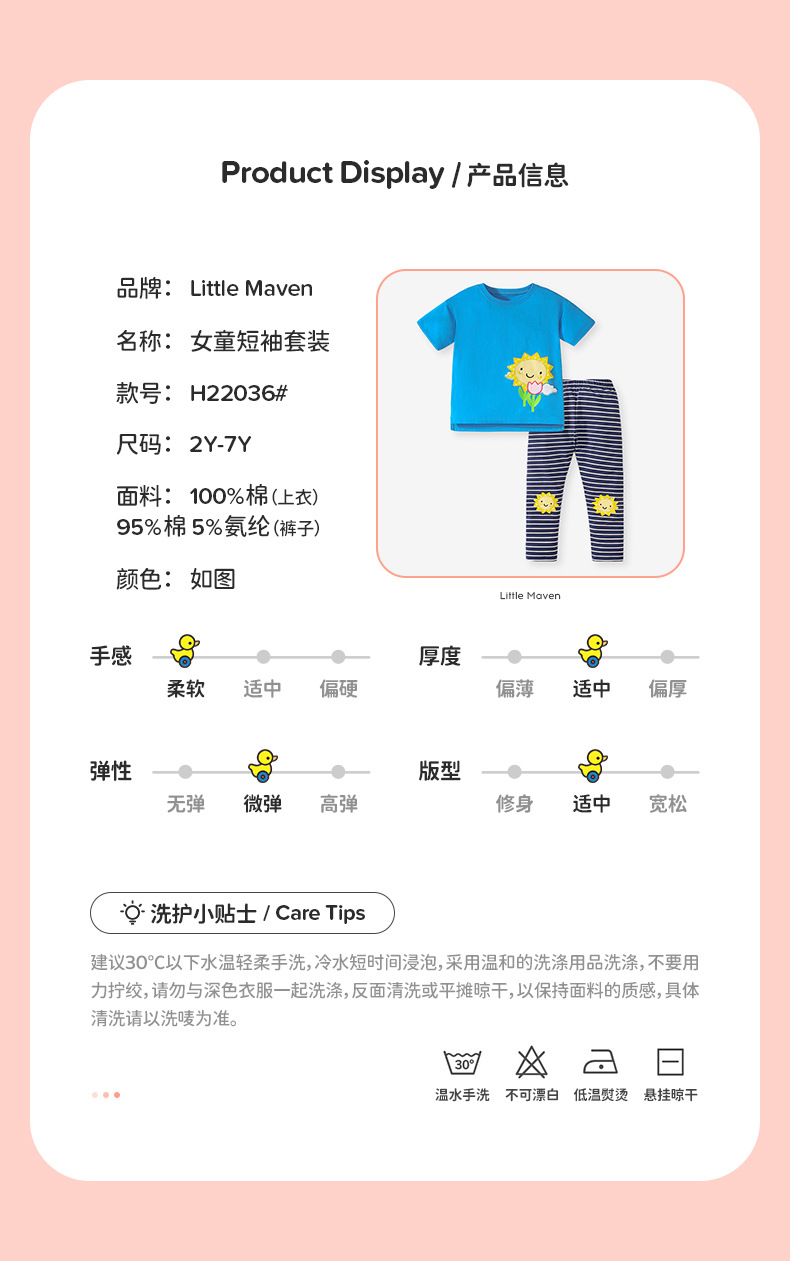 H22036TG-夏季女童短袖純棉上衣+長褲兩件套