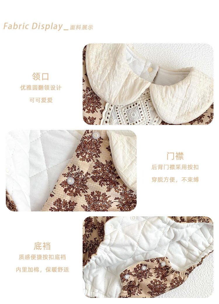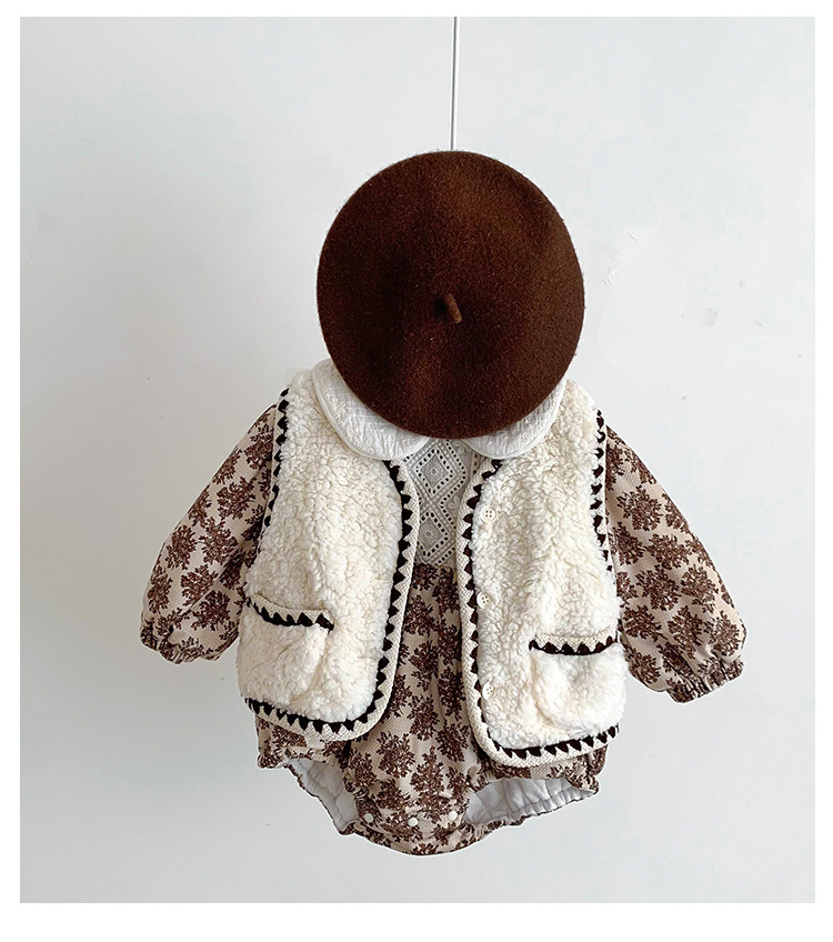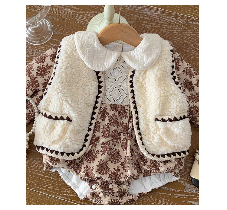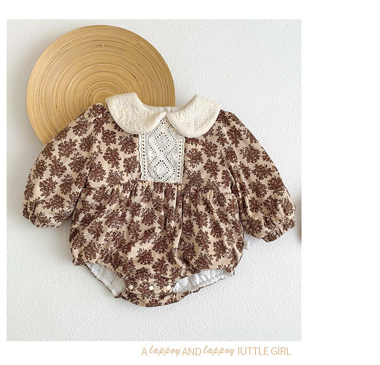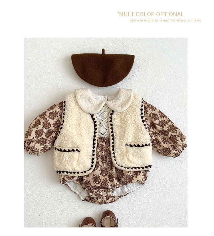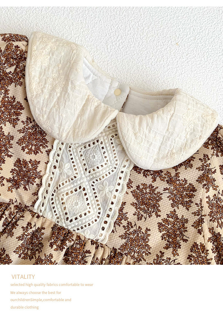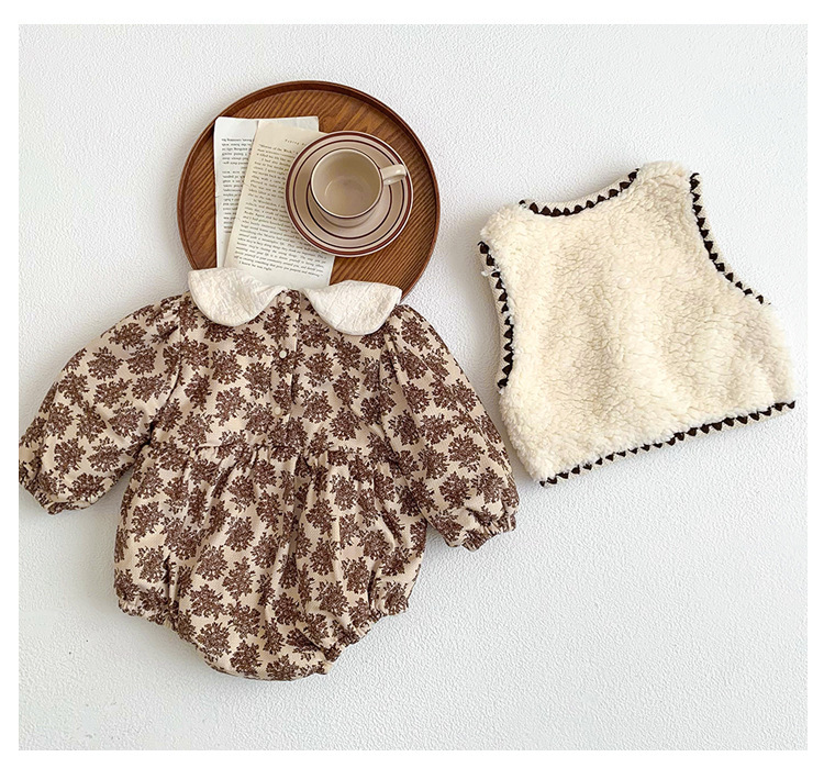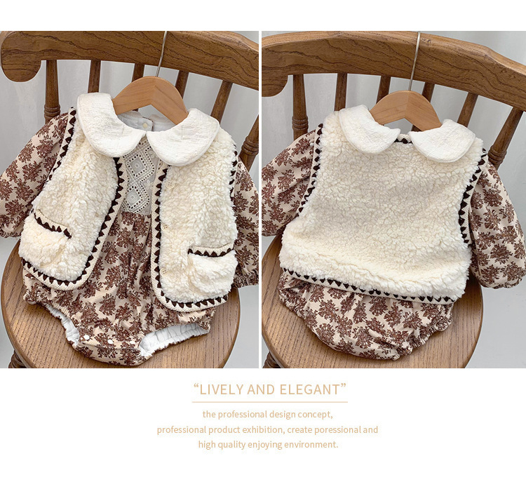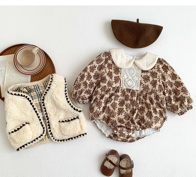 H677LS-Autumn and winter baby girl floral lace heavy plus velvet long sleeves with fart + piping vest