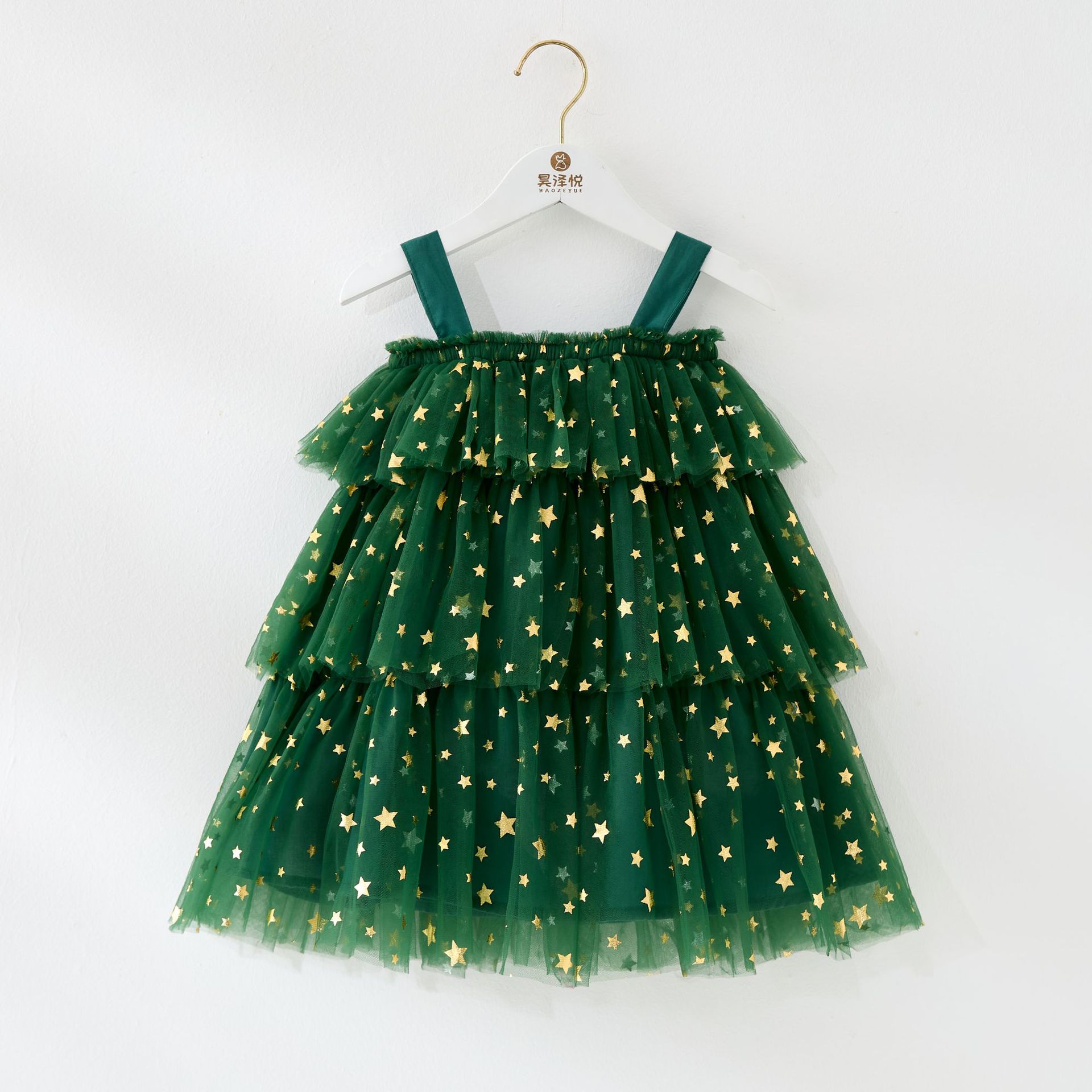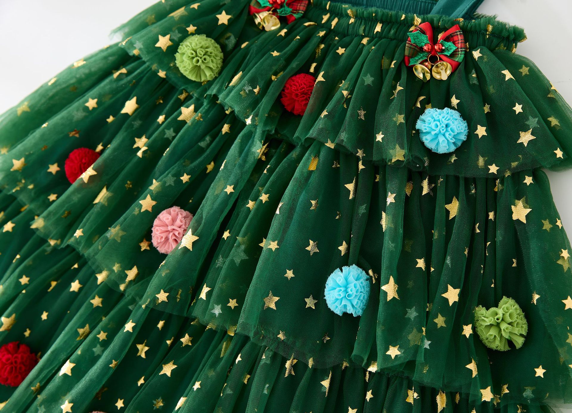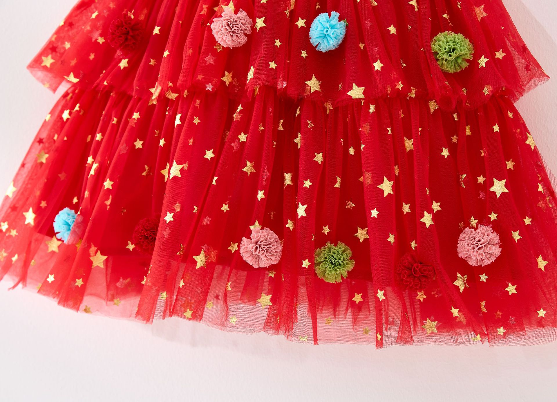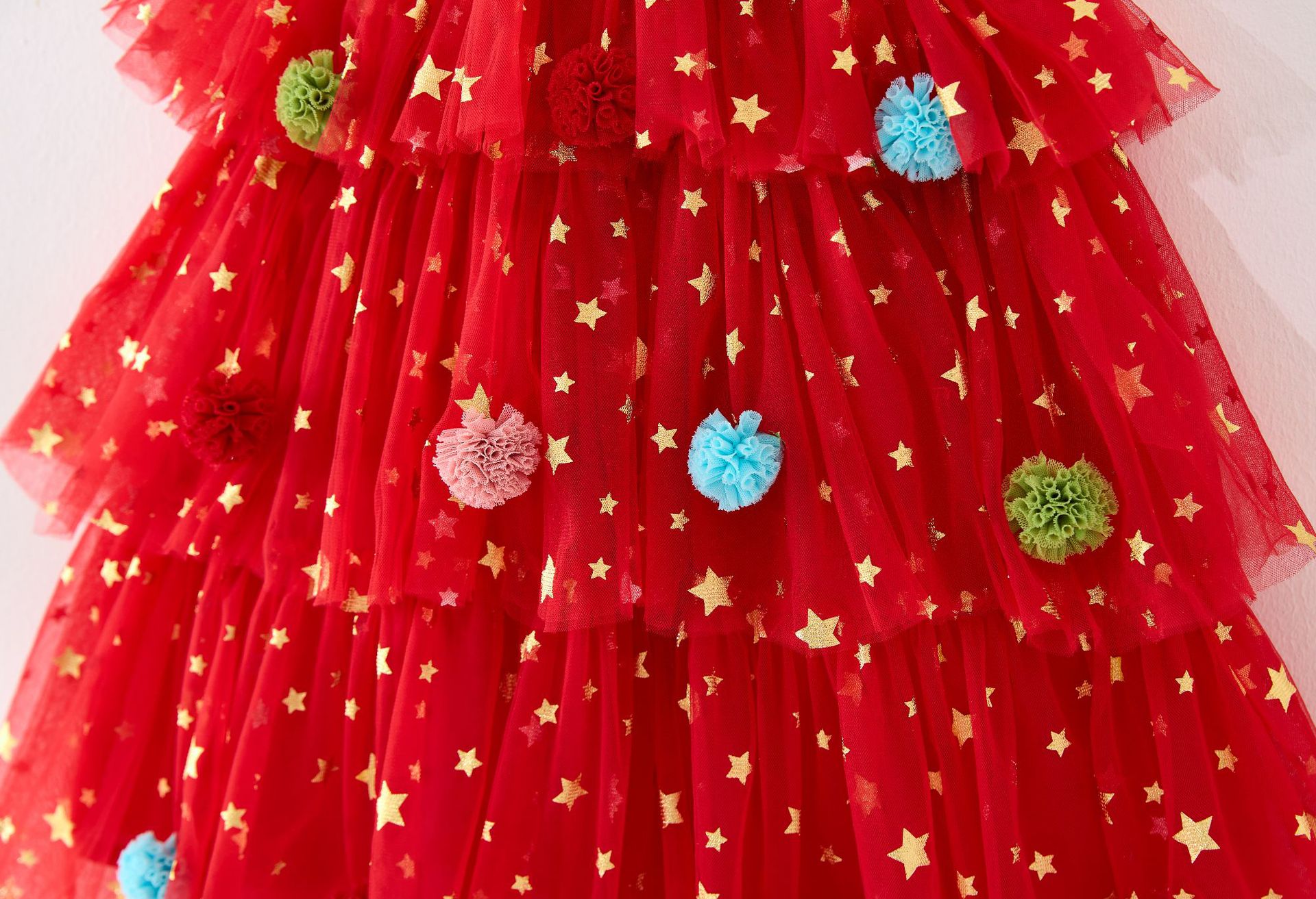 HY001DS-Autumn and Winter Christmas Skirt Star Moon Cake Skirt Mesh Tulle Tutu Skirt (without headdress)