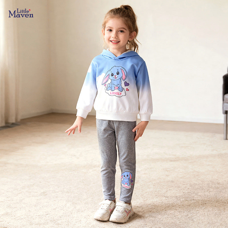 K2110TG-Little maven秋季可愛兔子刷绒連帽長袖兩件套