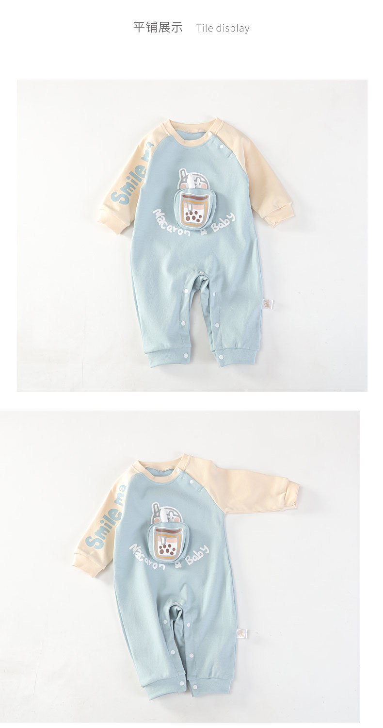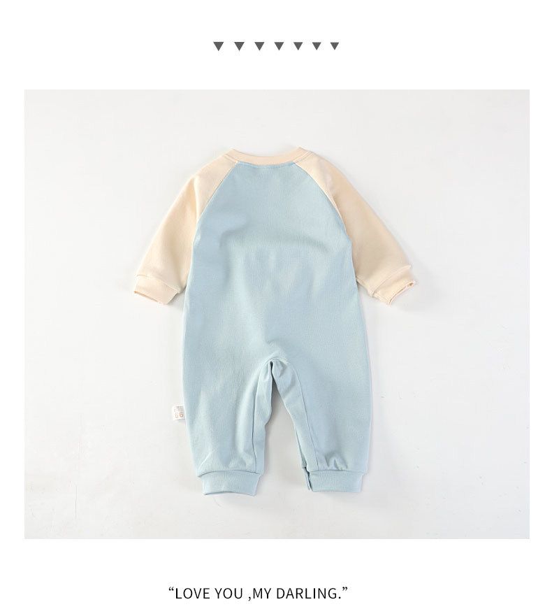 km1656LS-Spring and Autumn Pearl Milk Tea Contrast Color Long Sleeve Climbing Suit