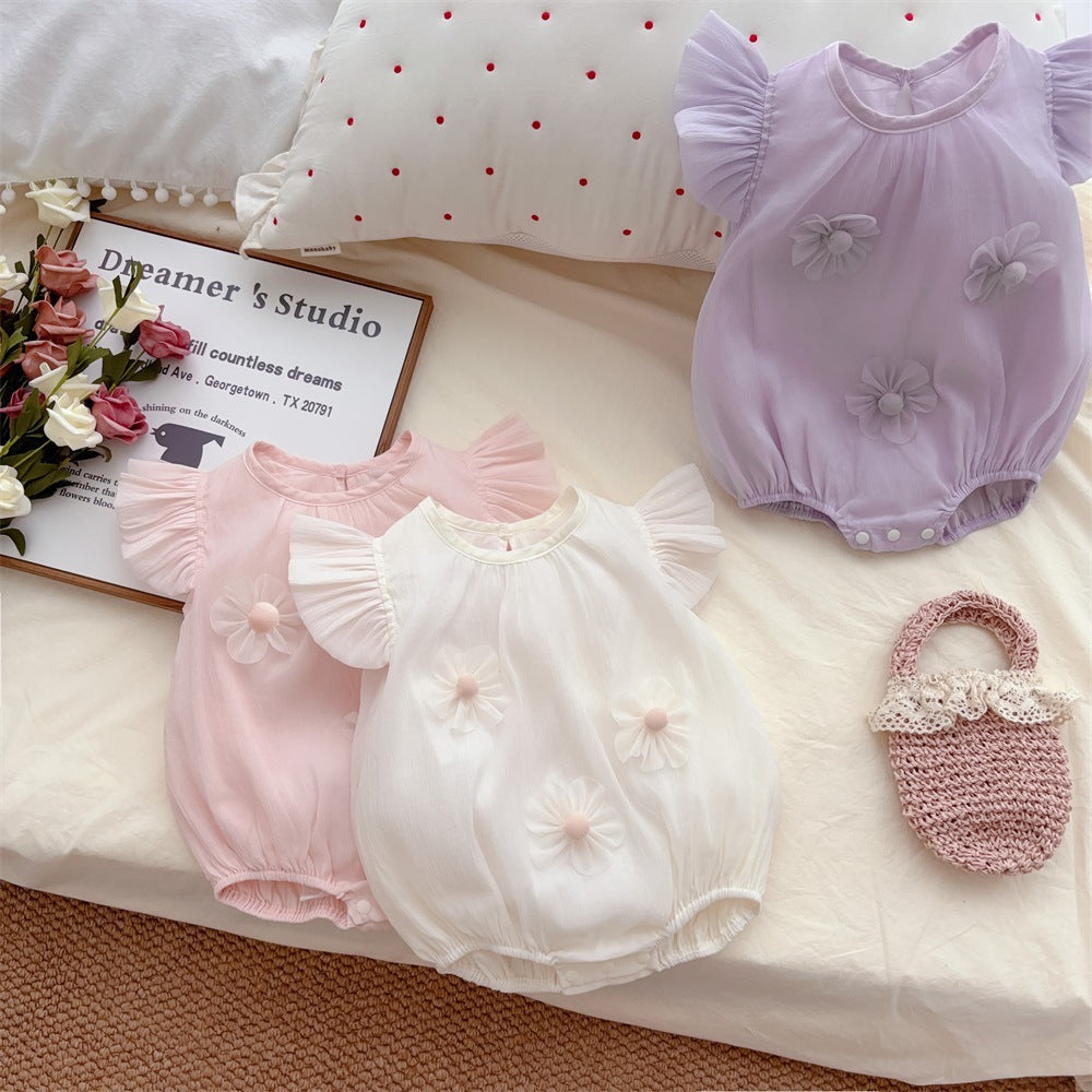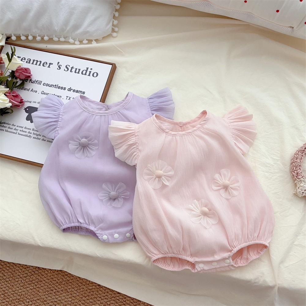 M2402491LS-Summer sweet thin version small flying sleeve chiffon flower bodysuit