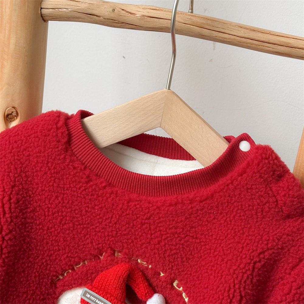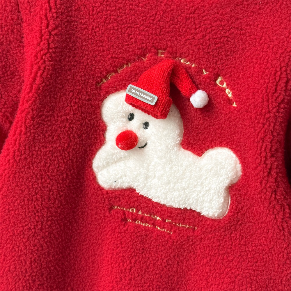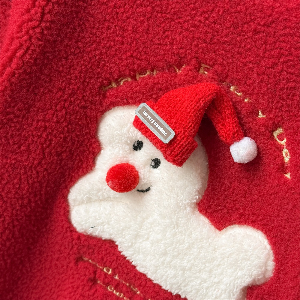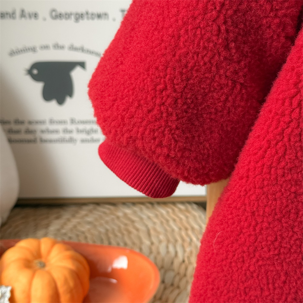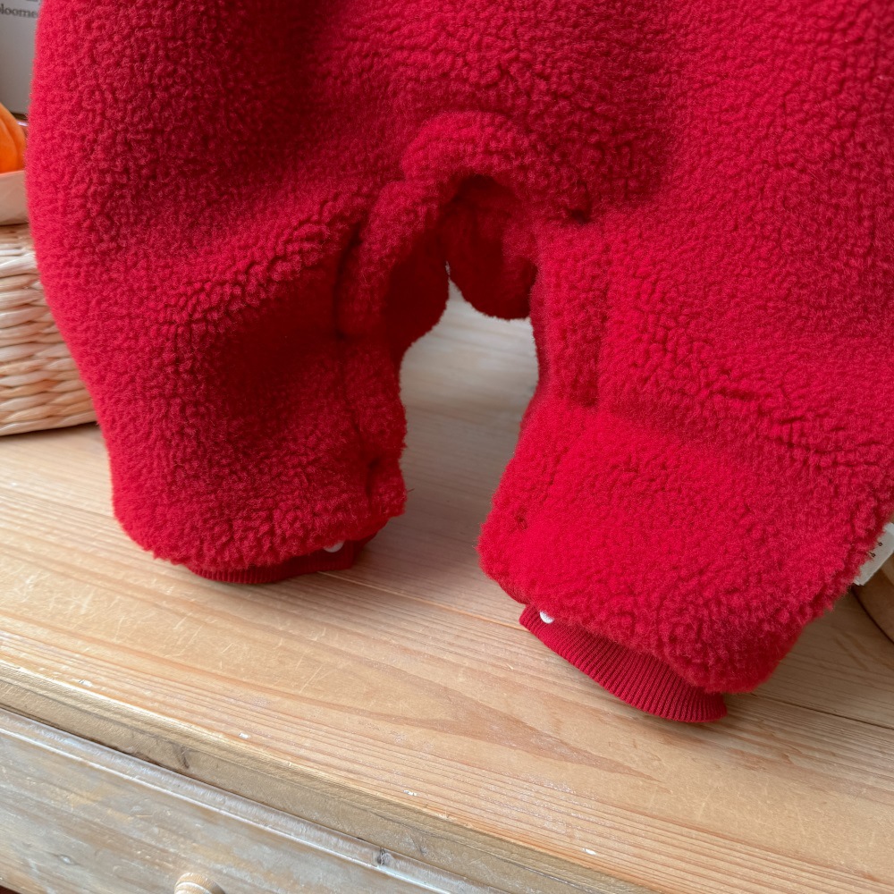 M2459091LS-Winter Red Nose Puppy Thick Plush New Year Greetings Climbing Suit + Hat