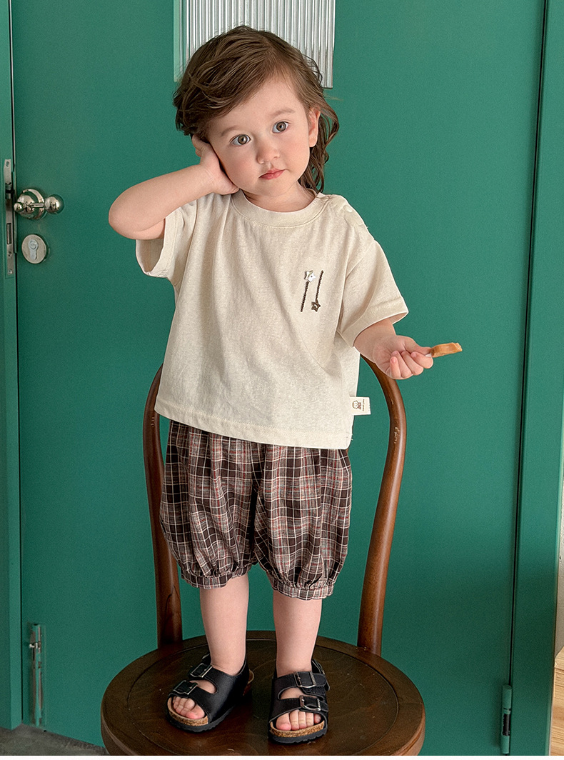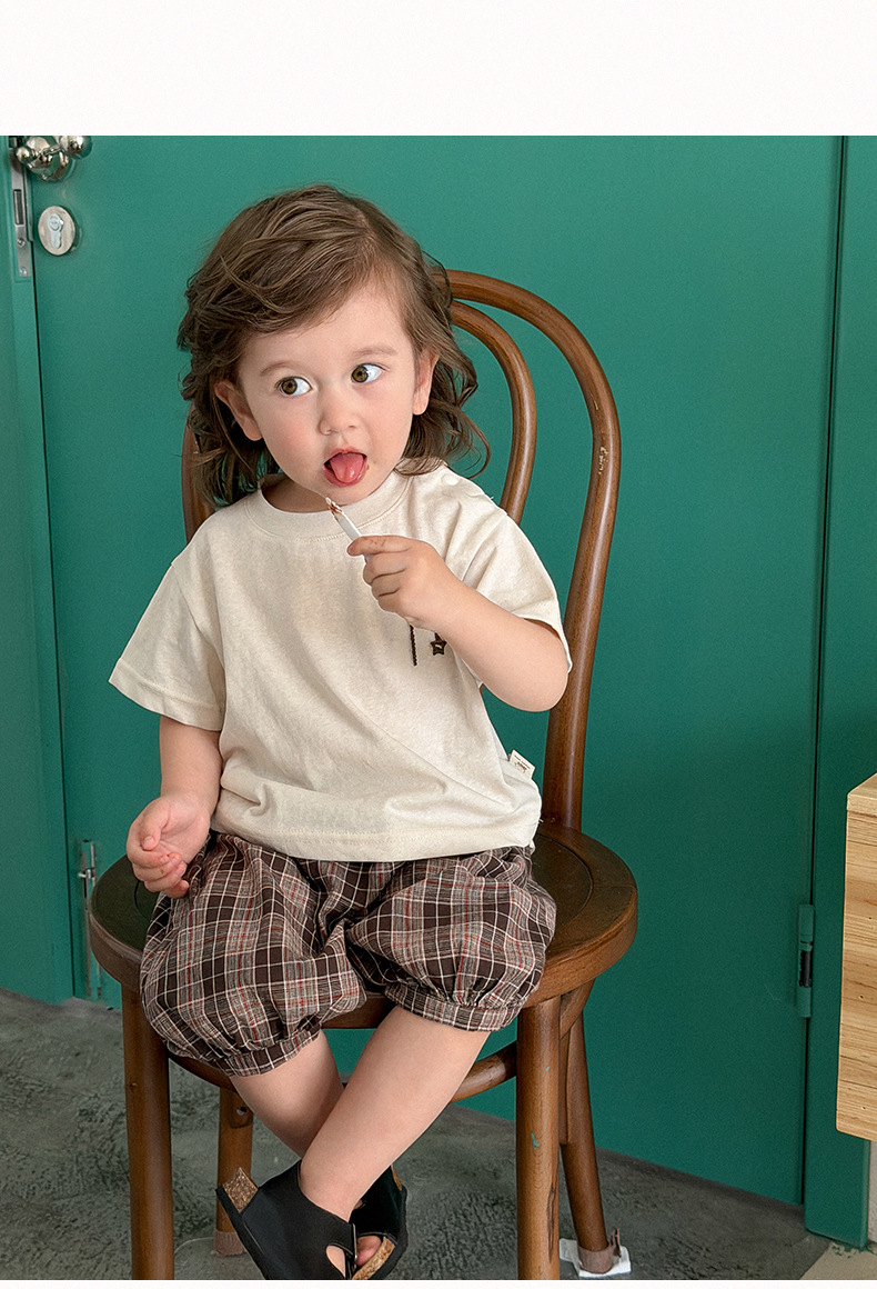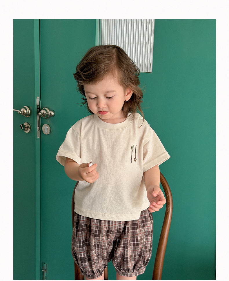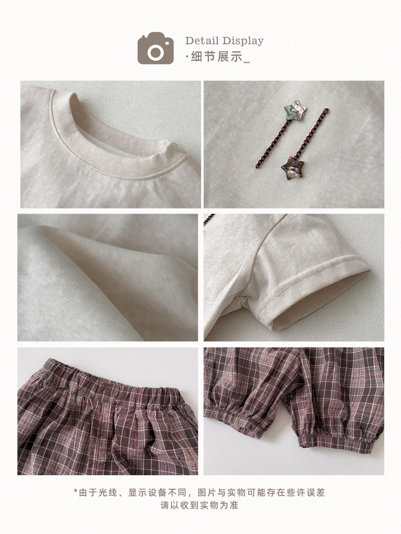 M627091TG-夏季|純色上衣|格紋短褲套裝