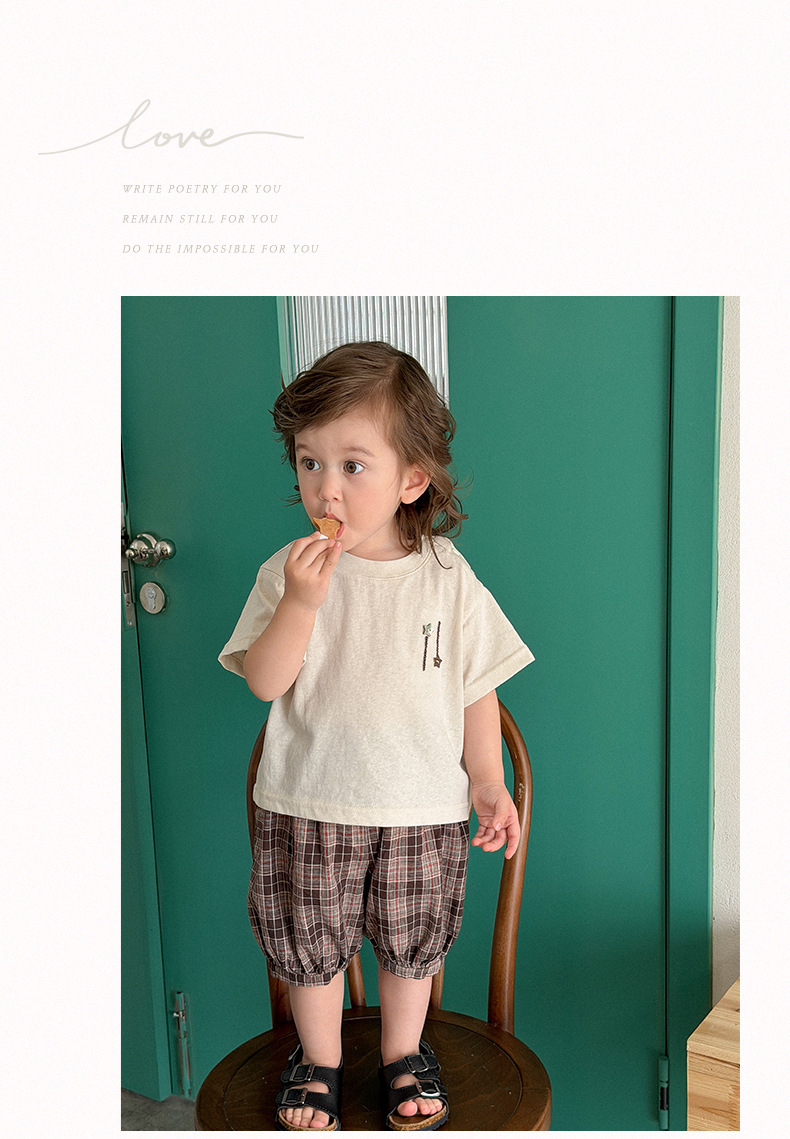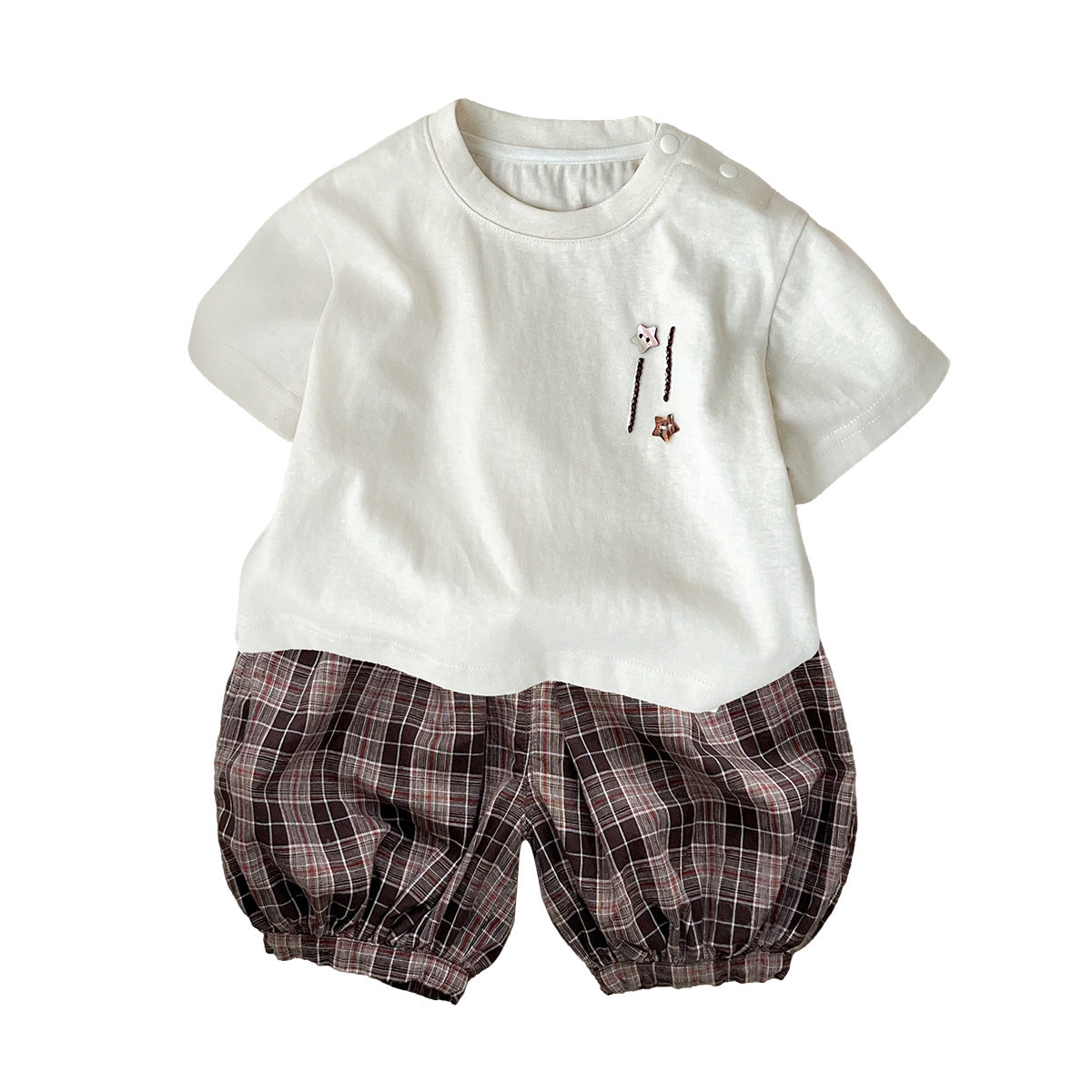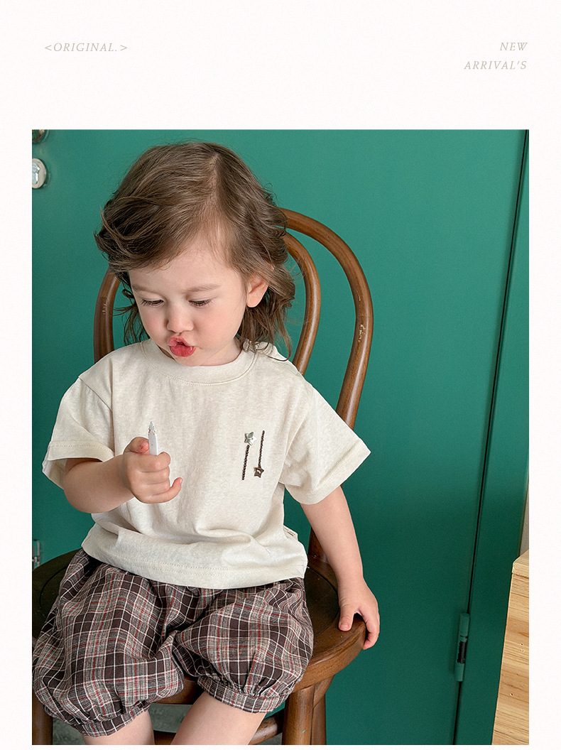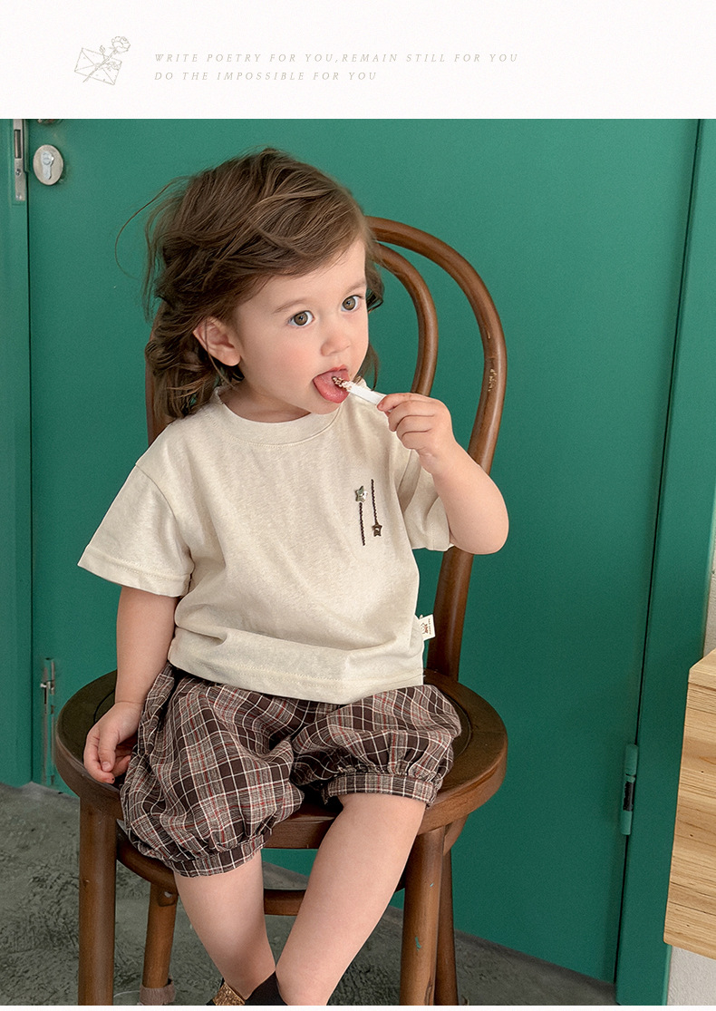 M627091TG-夏季|純色上衣|格紋短褲套裝