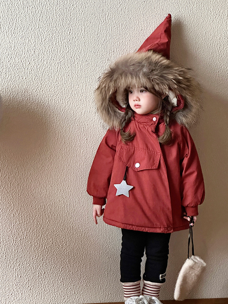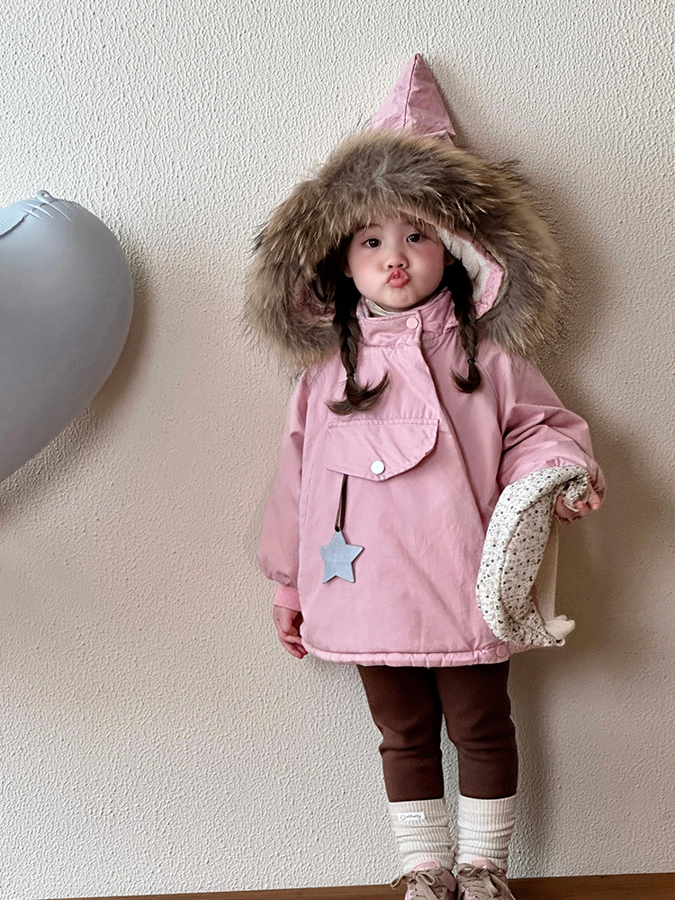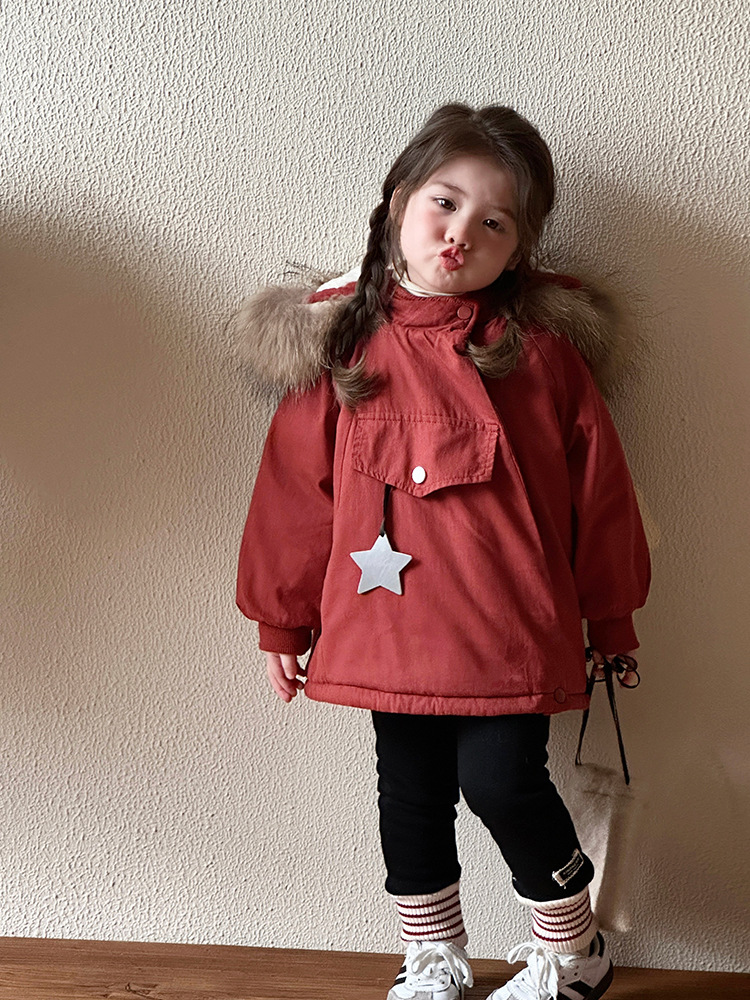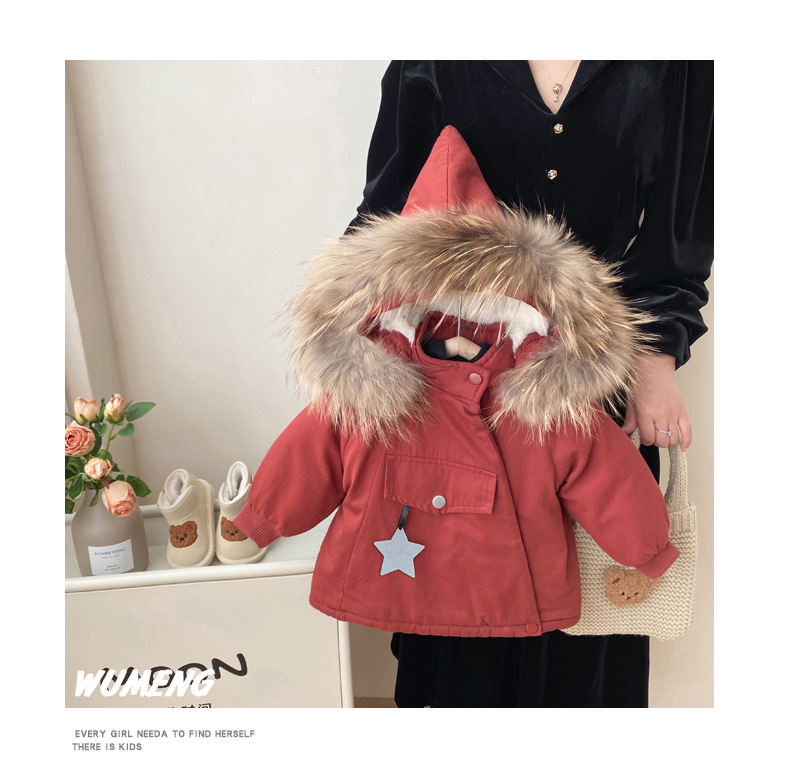 MR117SE-Winter children's plush and thick fur hooded jacket