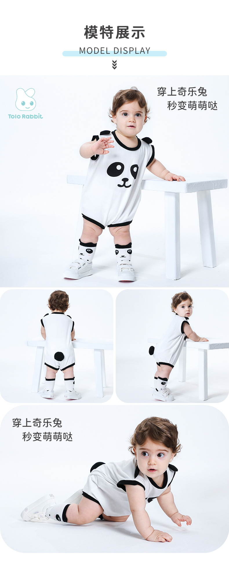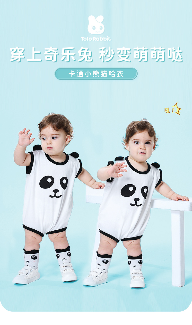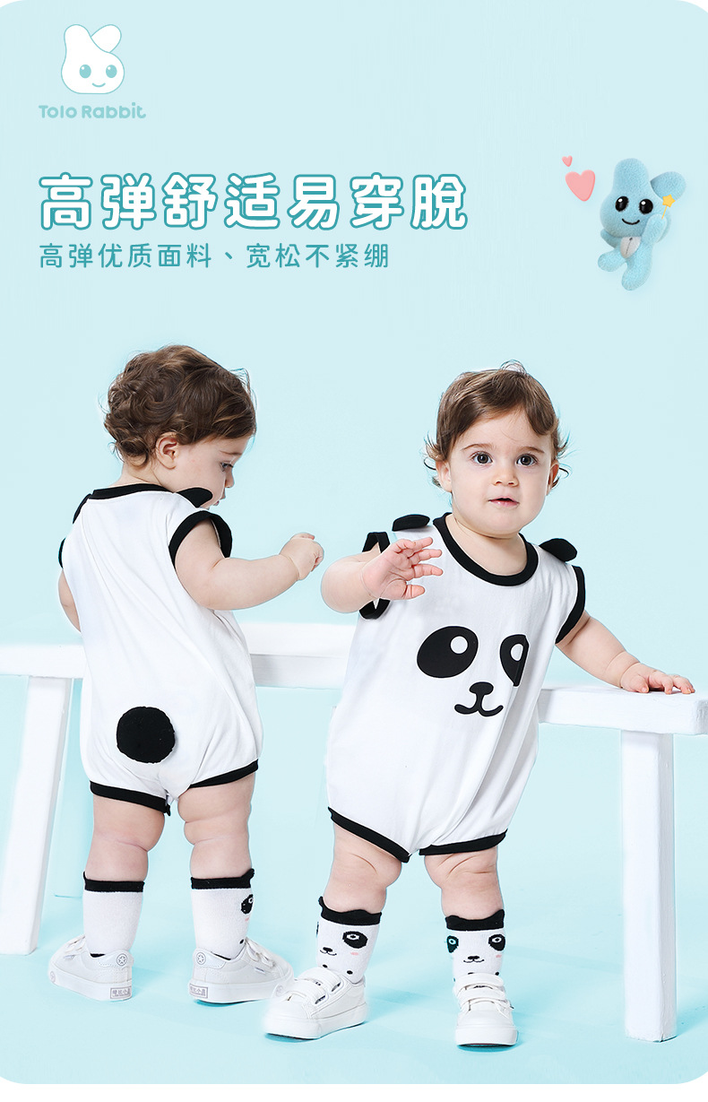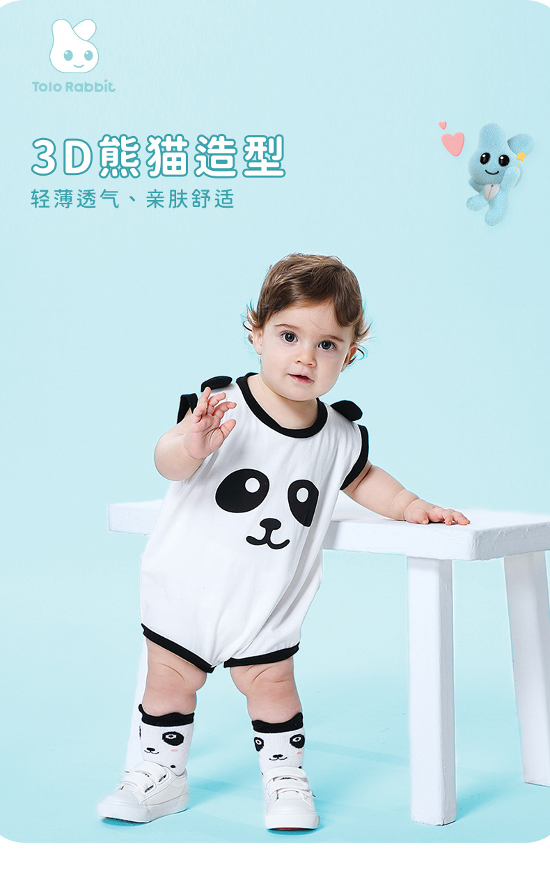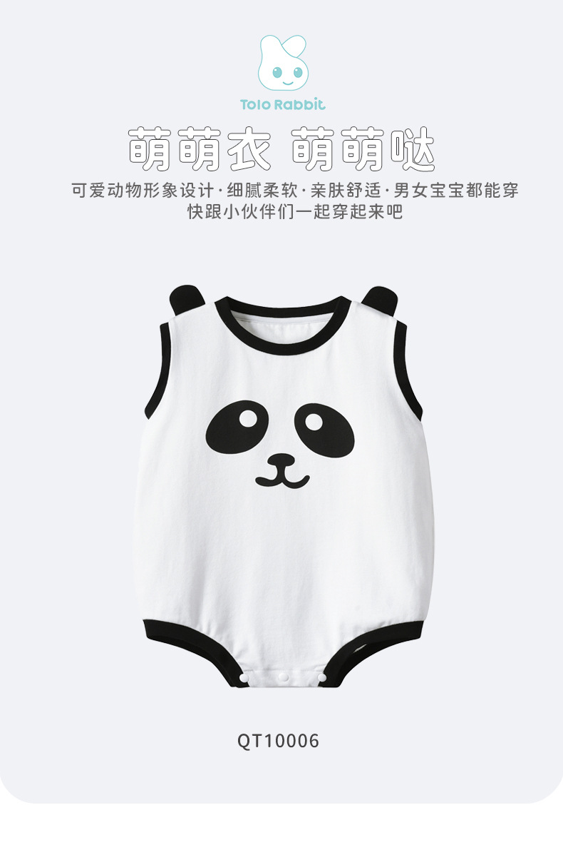 QT10006LS-Summer Smiley Panda Sleeveless Triangle Climbing Suit