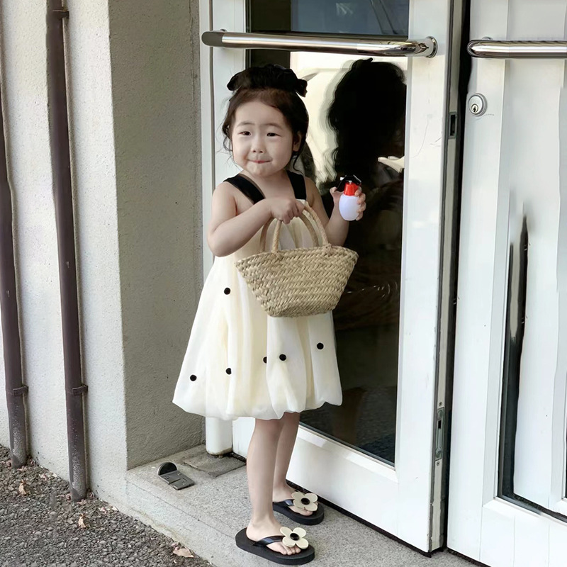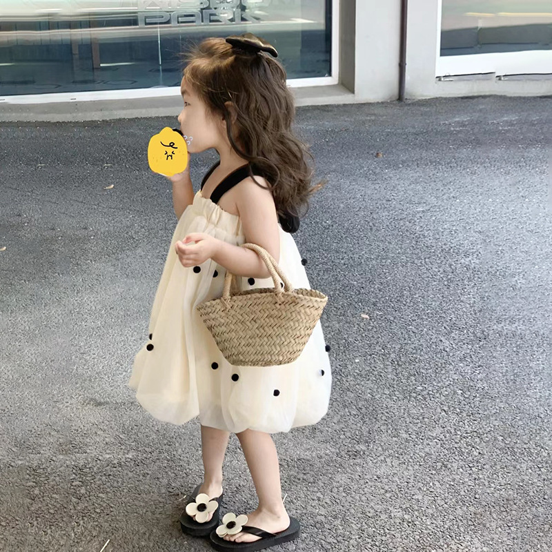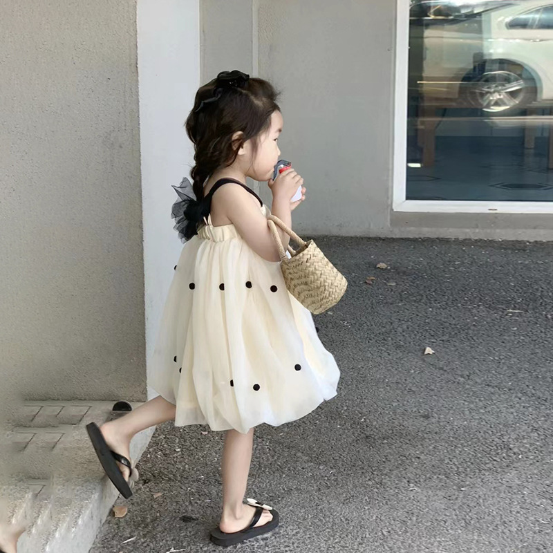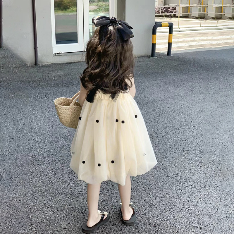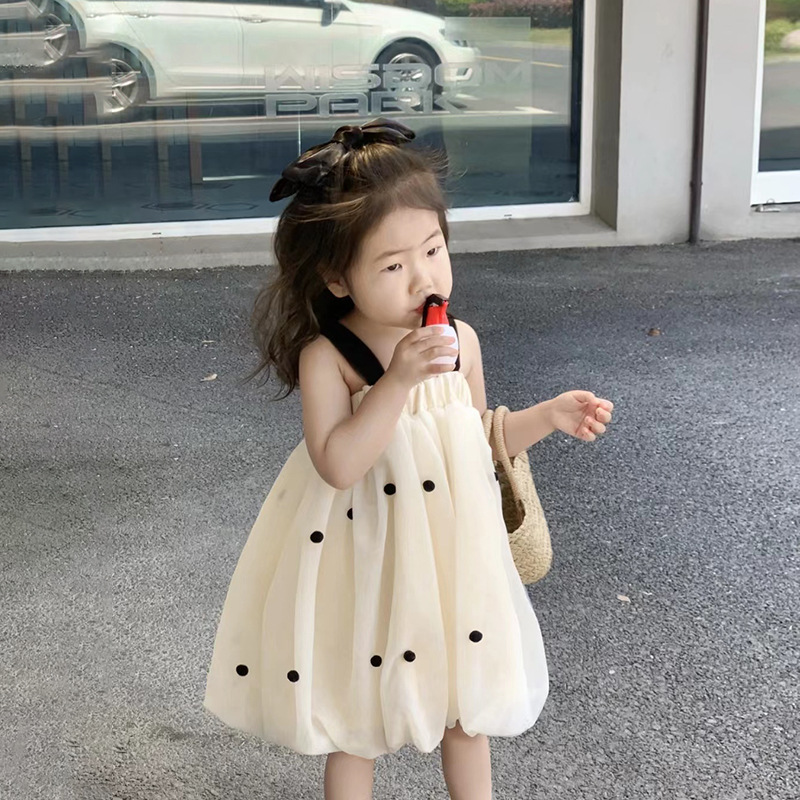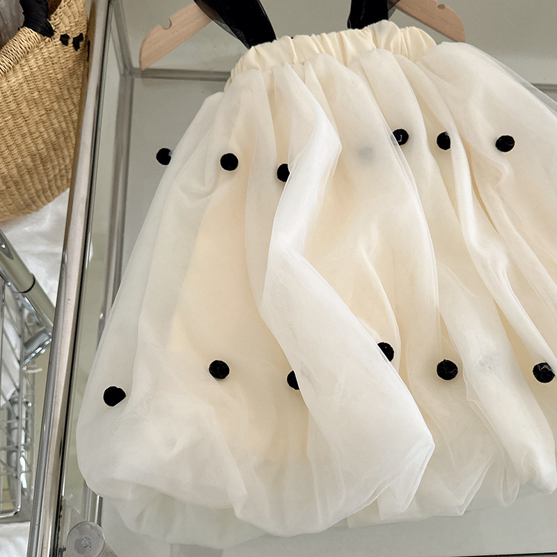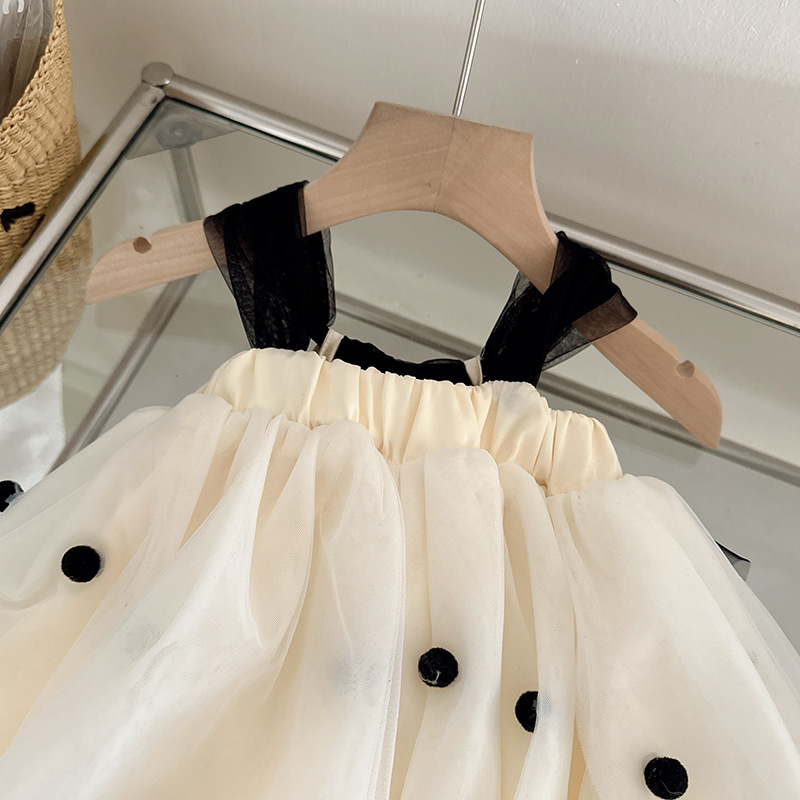 RQ2185DS-Summer Girls Korean Style Polka Dot Suspender Skirt Mesh Princess Skirt