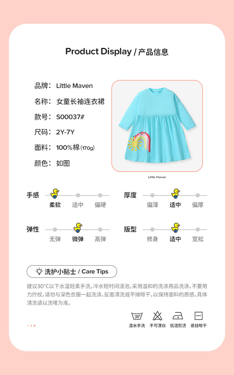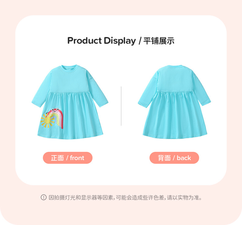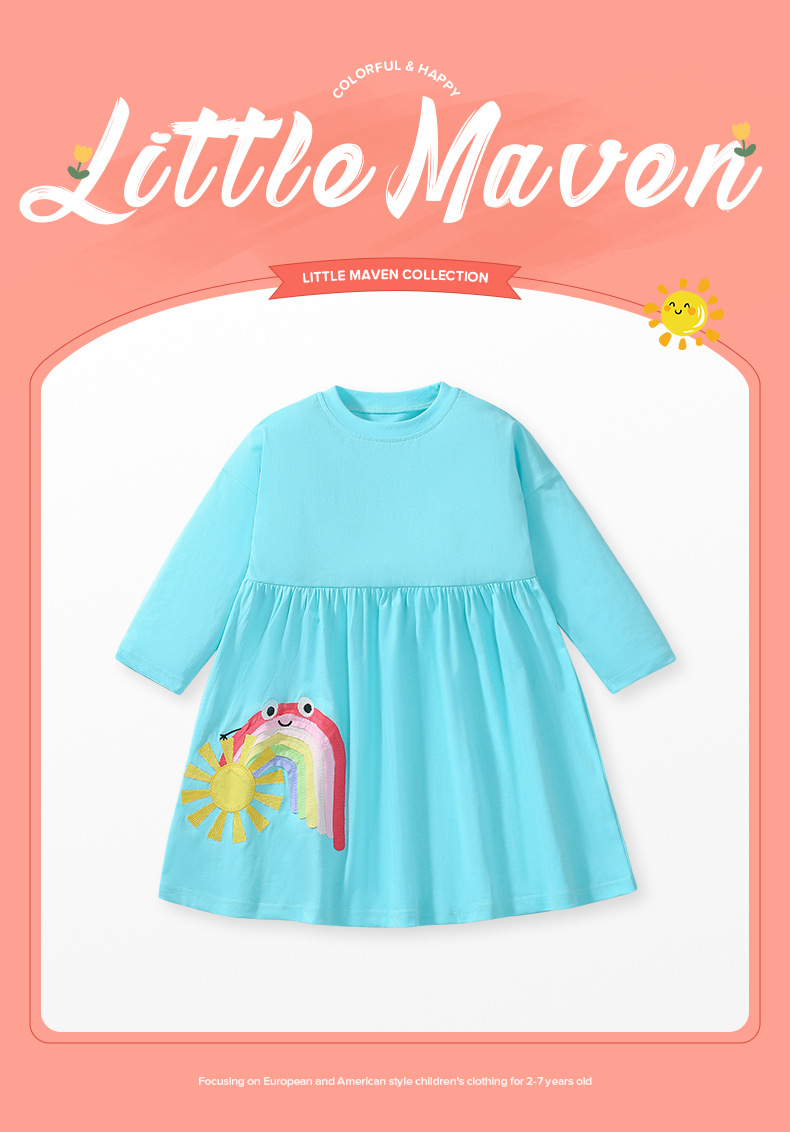 S00037DS-Spring and Autumn Girls Long Sleeve Cute Rainbow Dress