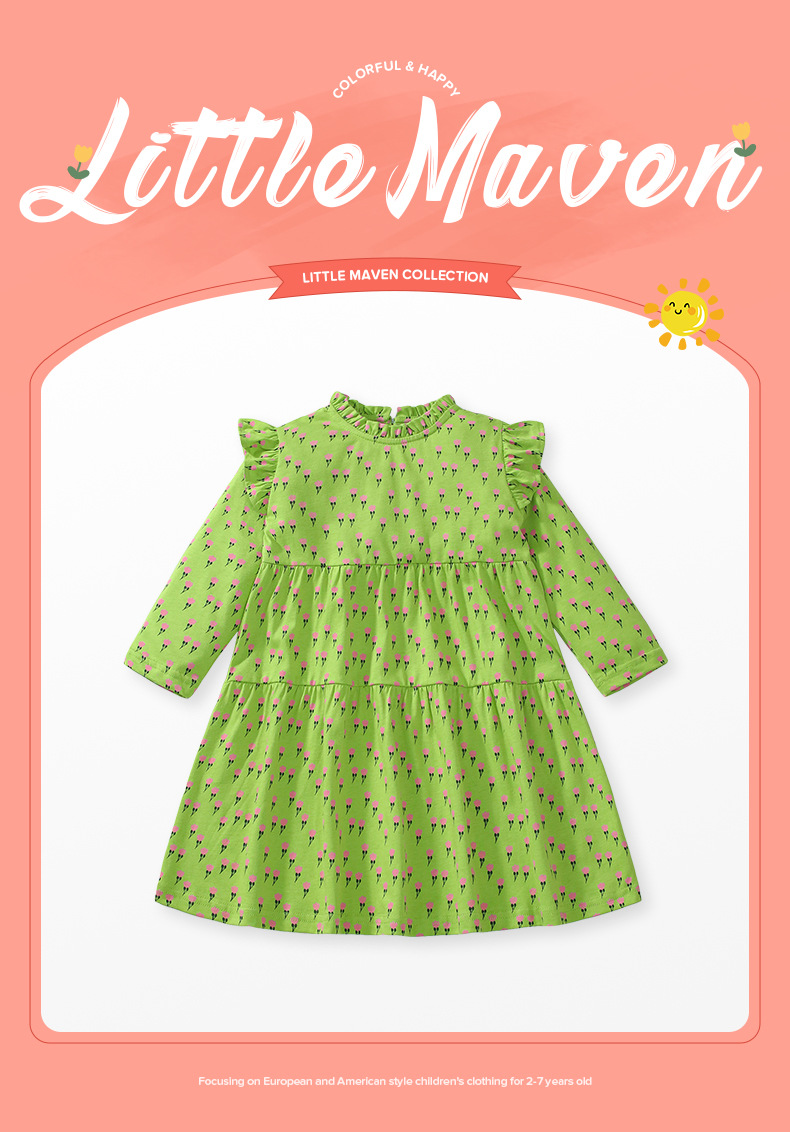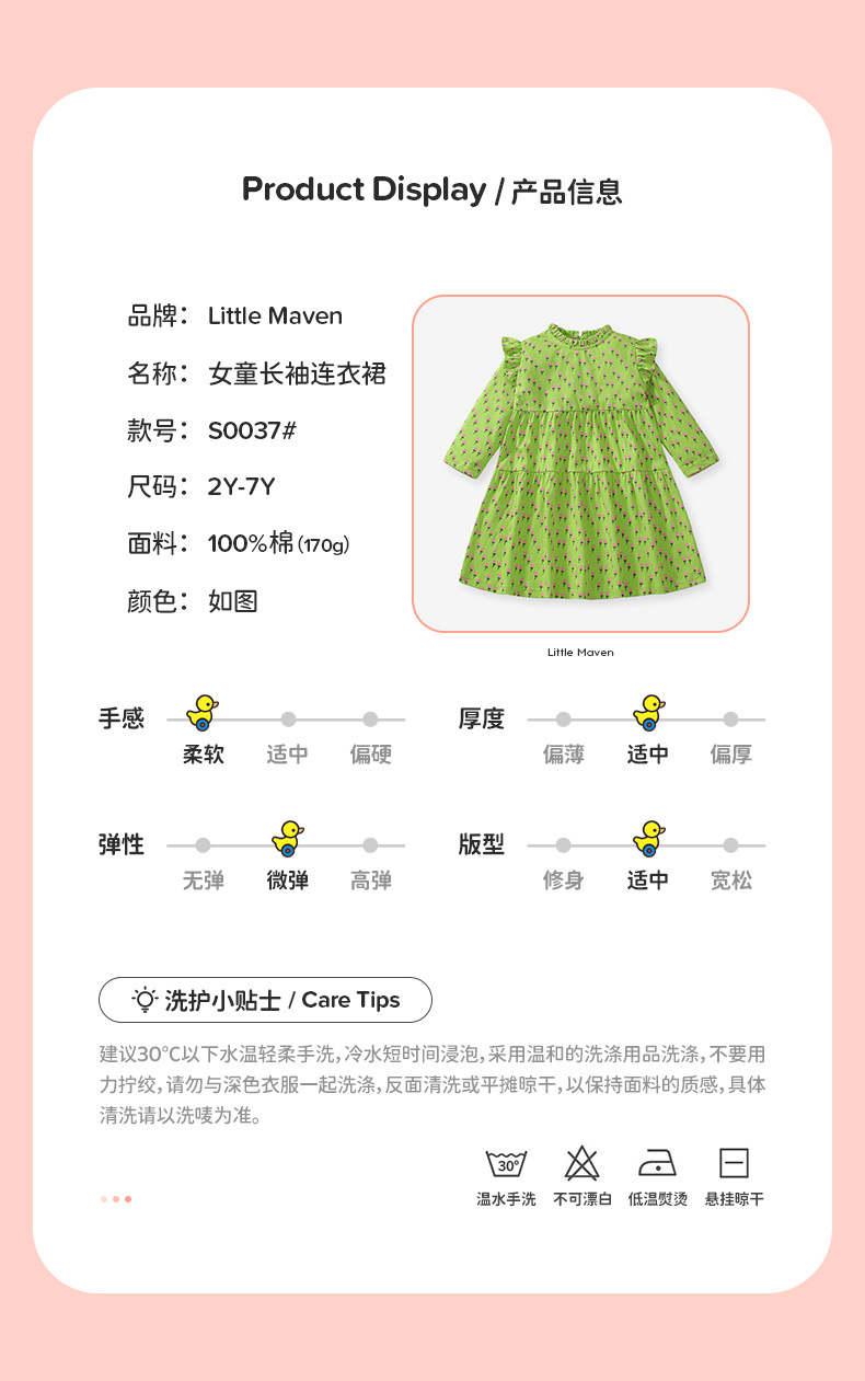 S0037DS-Autumn pure cotton long-sleeved cute layered children's dress